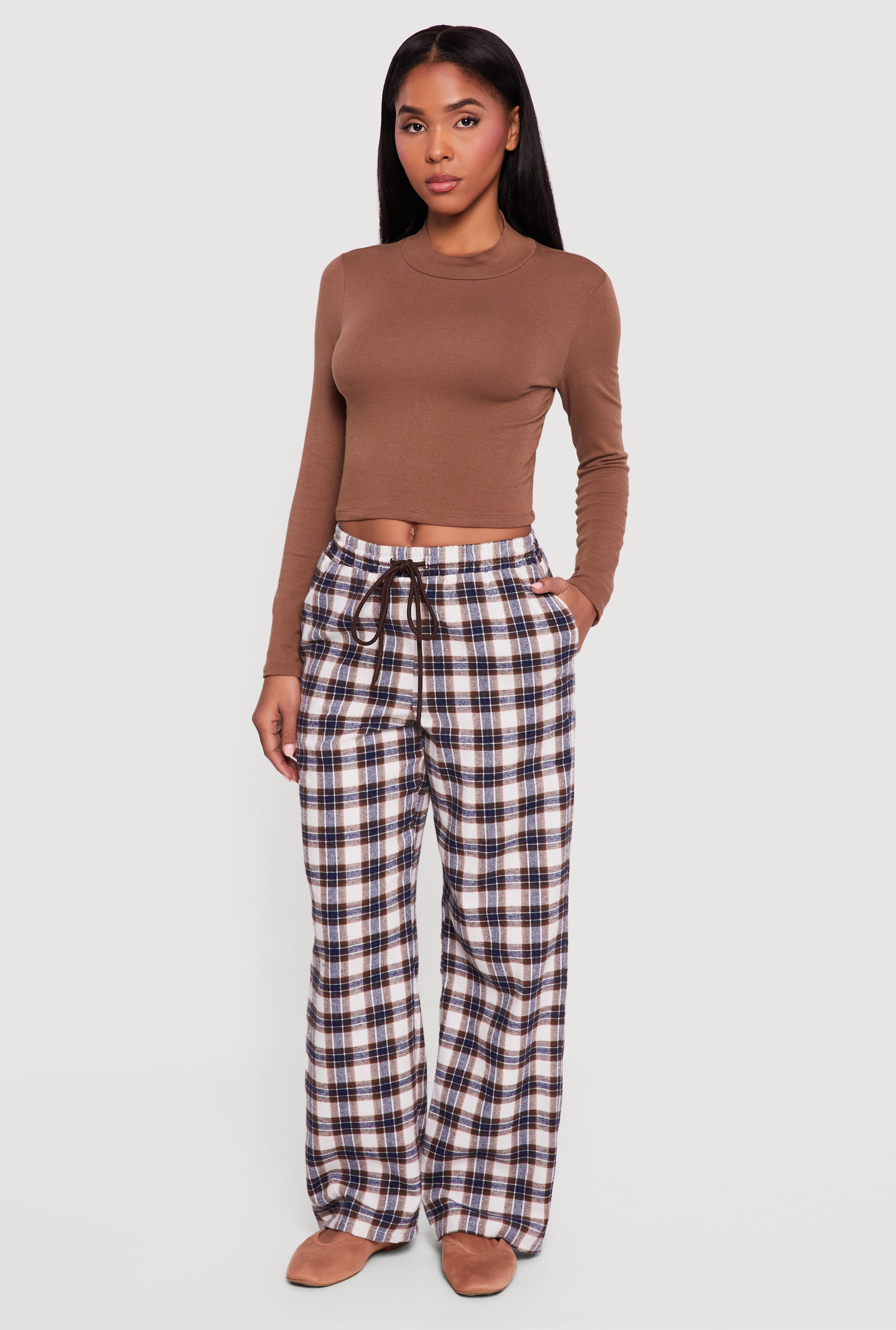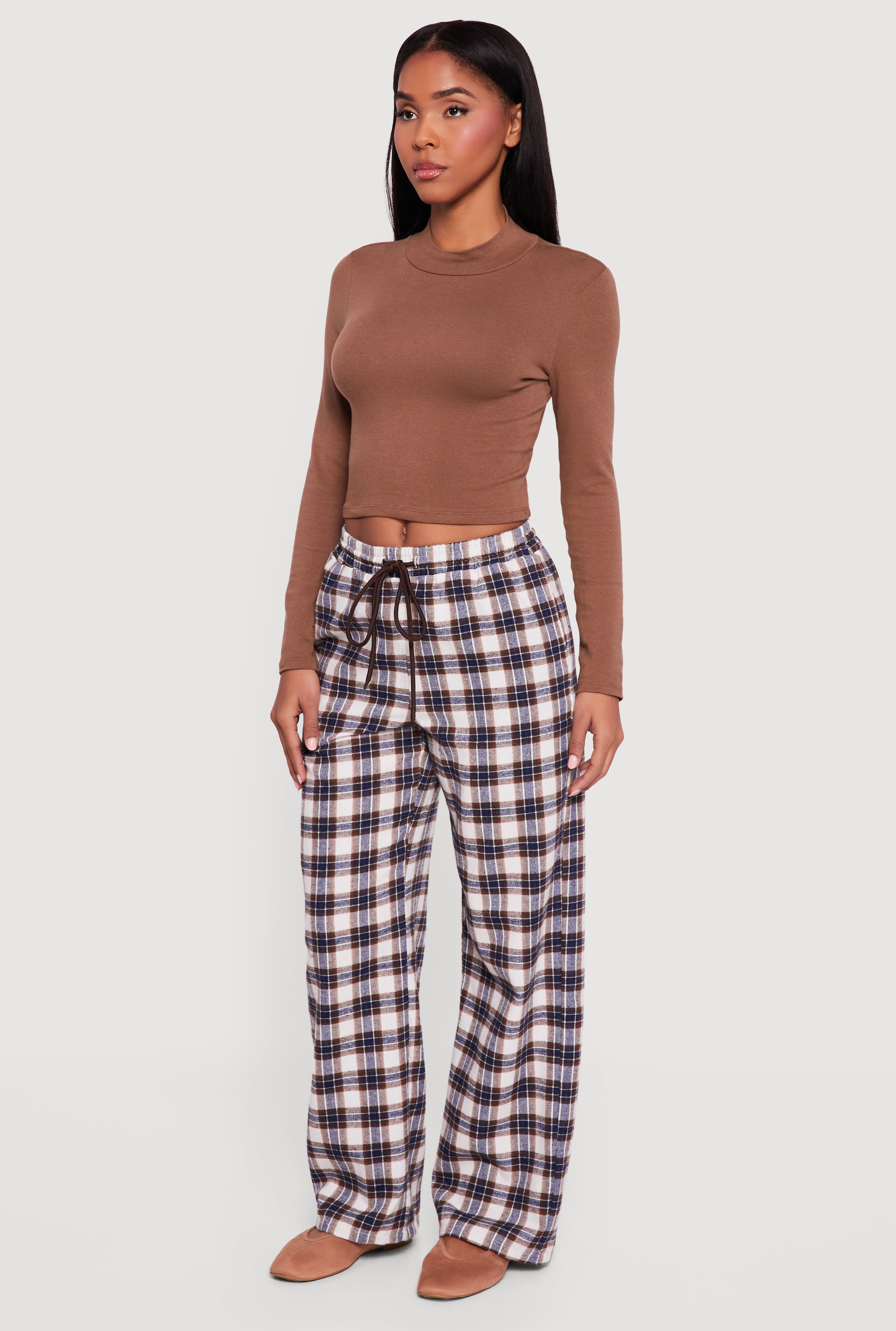 Plaid Flannel Drawstring Waist Wide Leg Pants