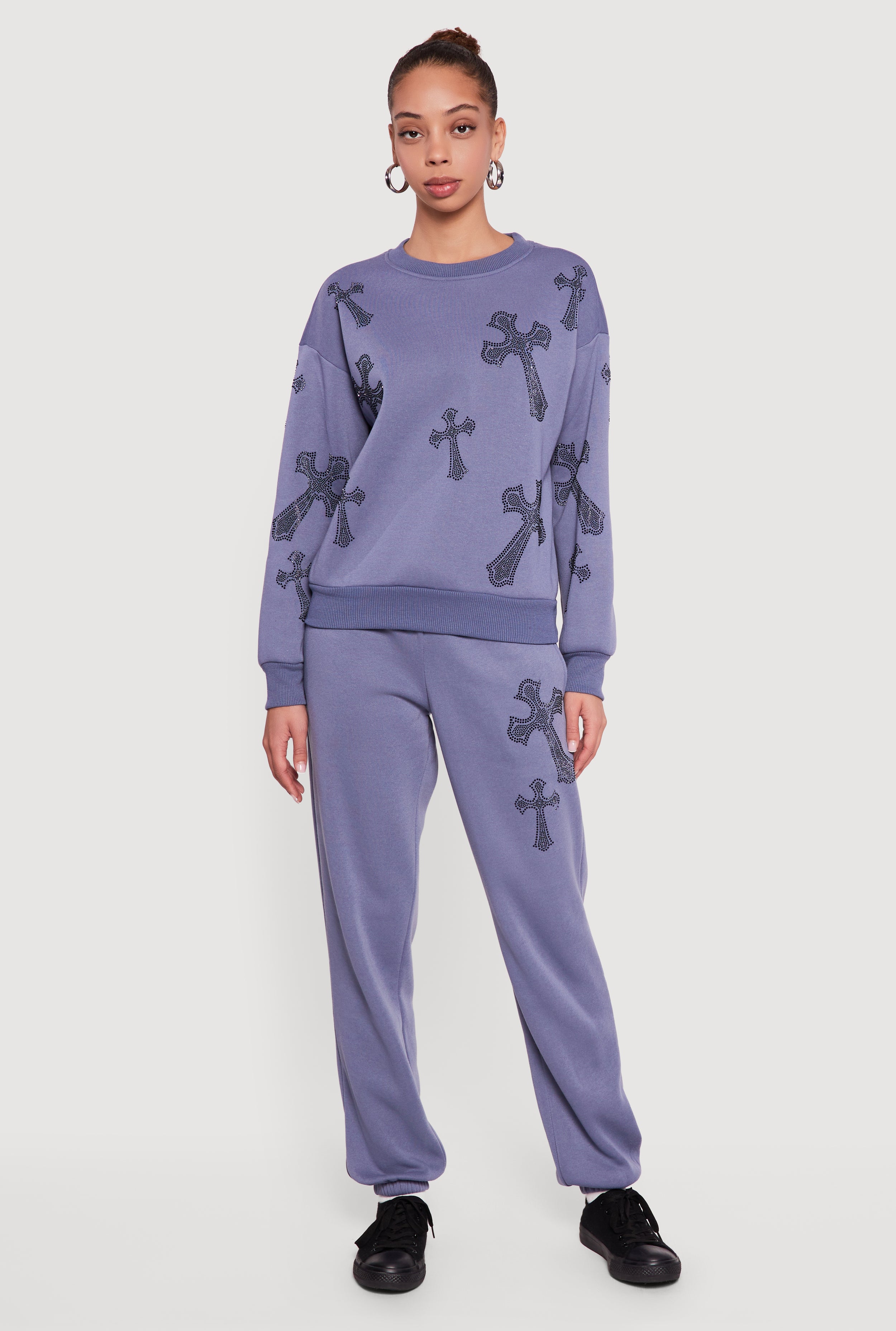 Almost Famous Pullover Sweatshirt with Rhinestone Graphic