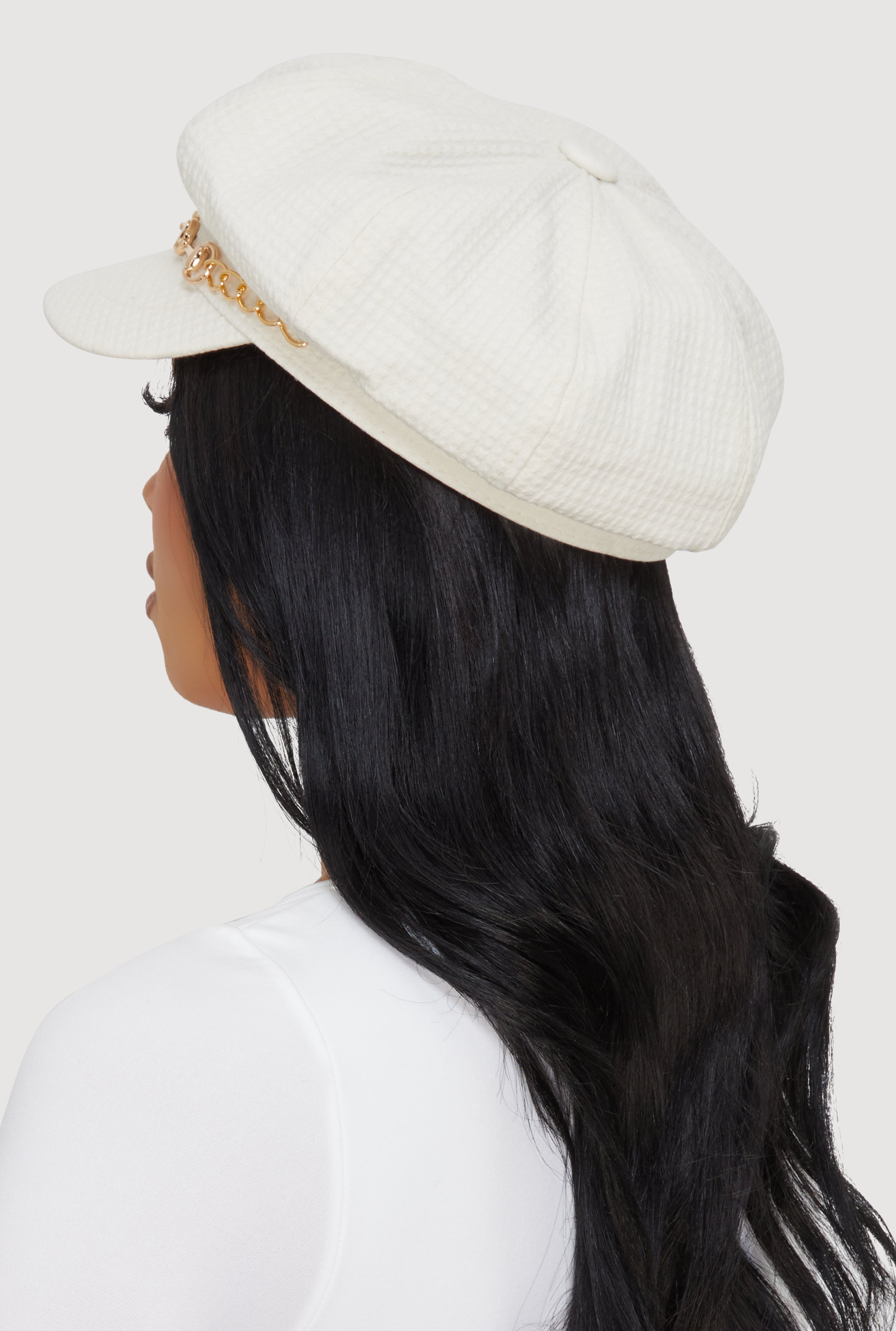 - Decorative chain detail offers a luxe metallic accent