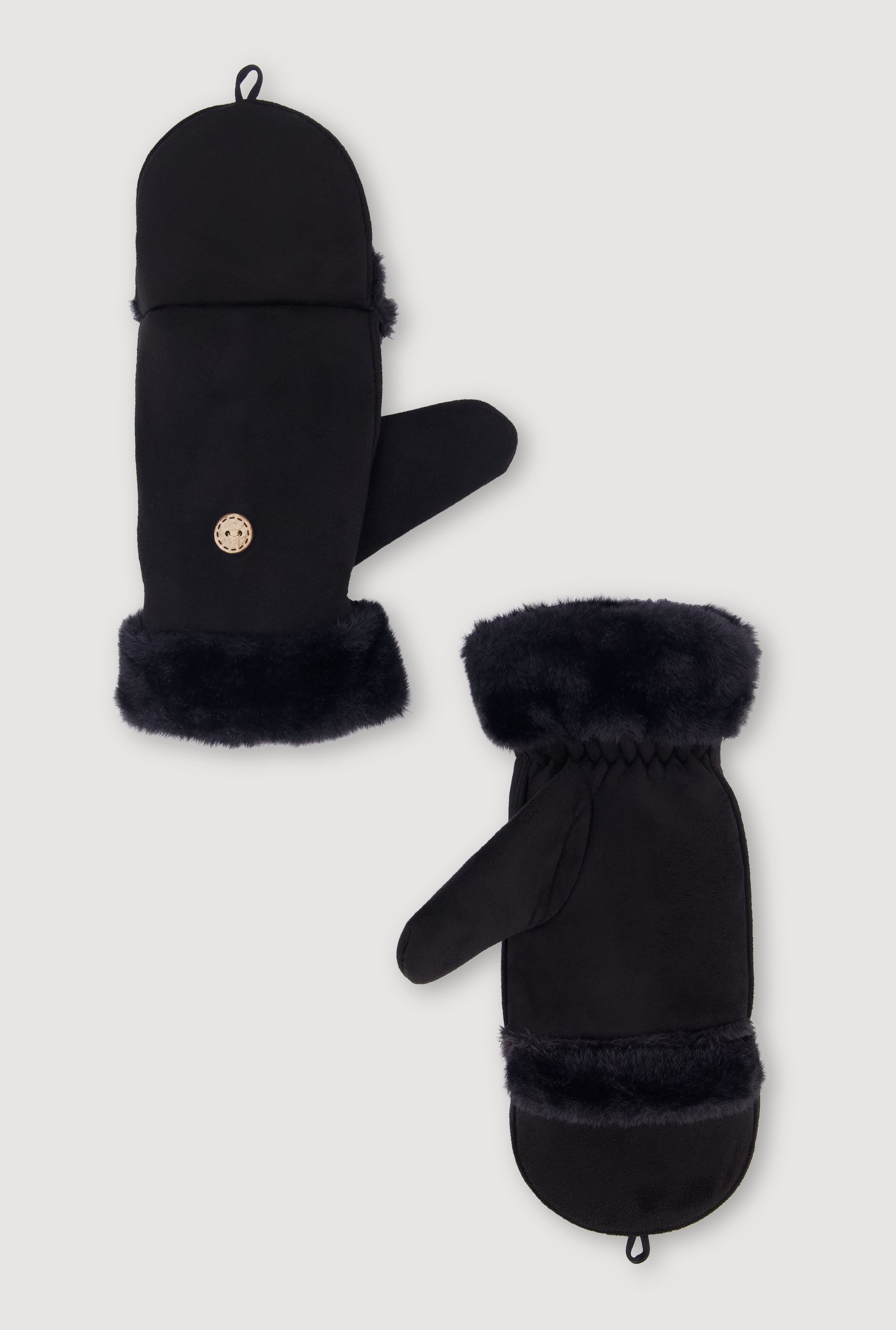 Stay cozy and stylish with these Faux Fur Trim Fold Over Mittens, the perfect accessory to keep your hands warm during chilly days. Crafted with soft faux suede and topped with plush faux fur trim, these mittens add a touch of casual cool to any cold weather look. The fold-over design lets you switch up your style and warmth level effortlessly, making them a must-have for your winter wardrobe.