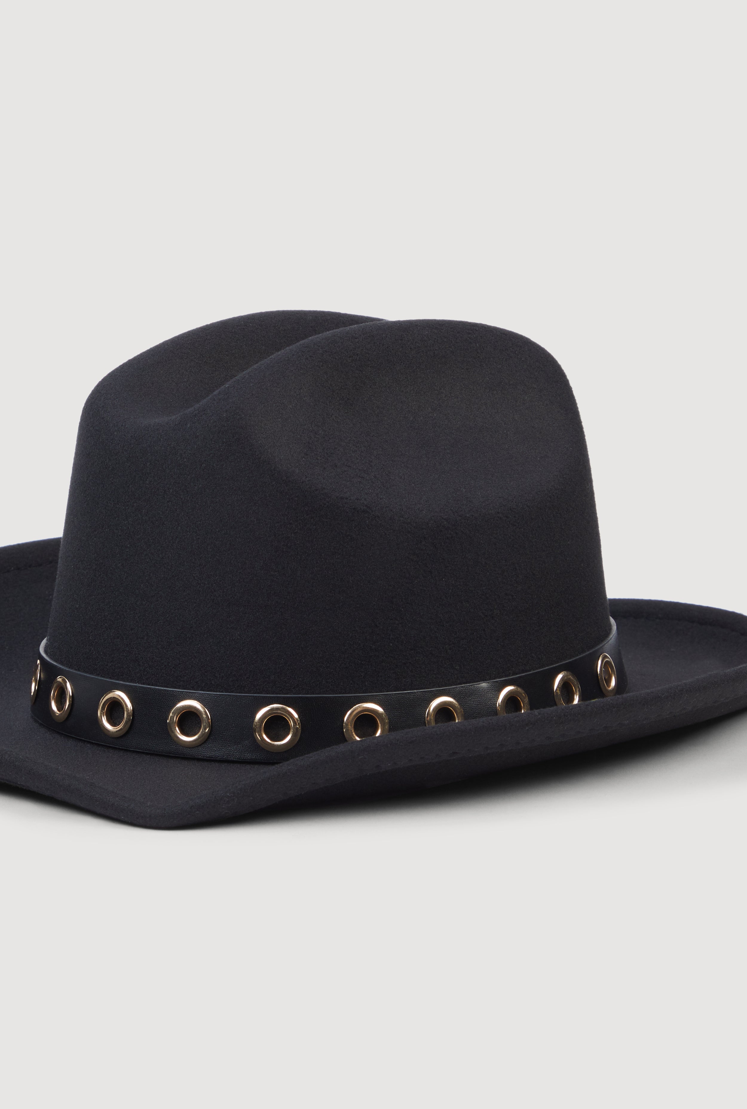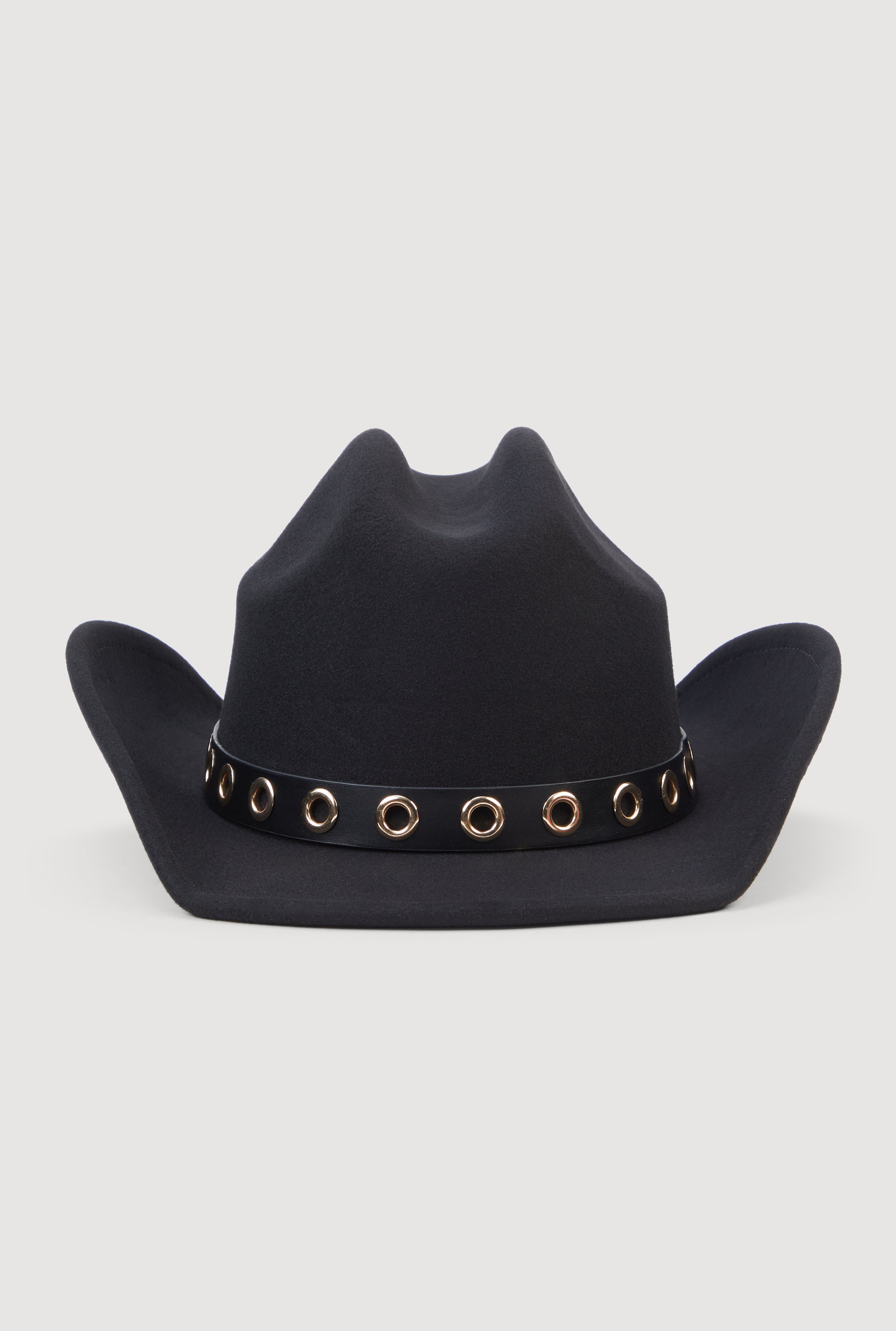 Grommet Belt Detail Brushed Felt Cowboy Hat