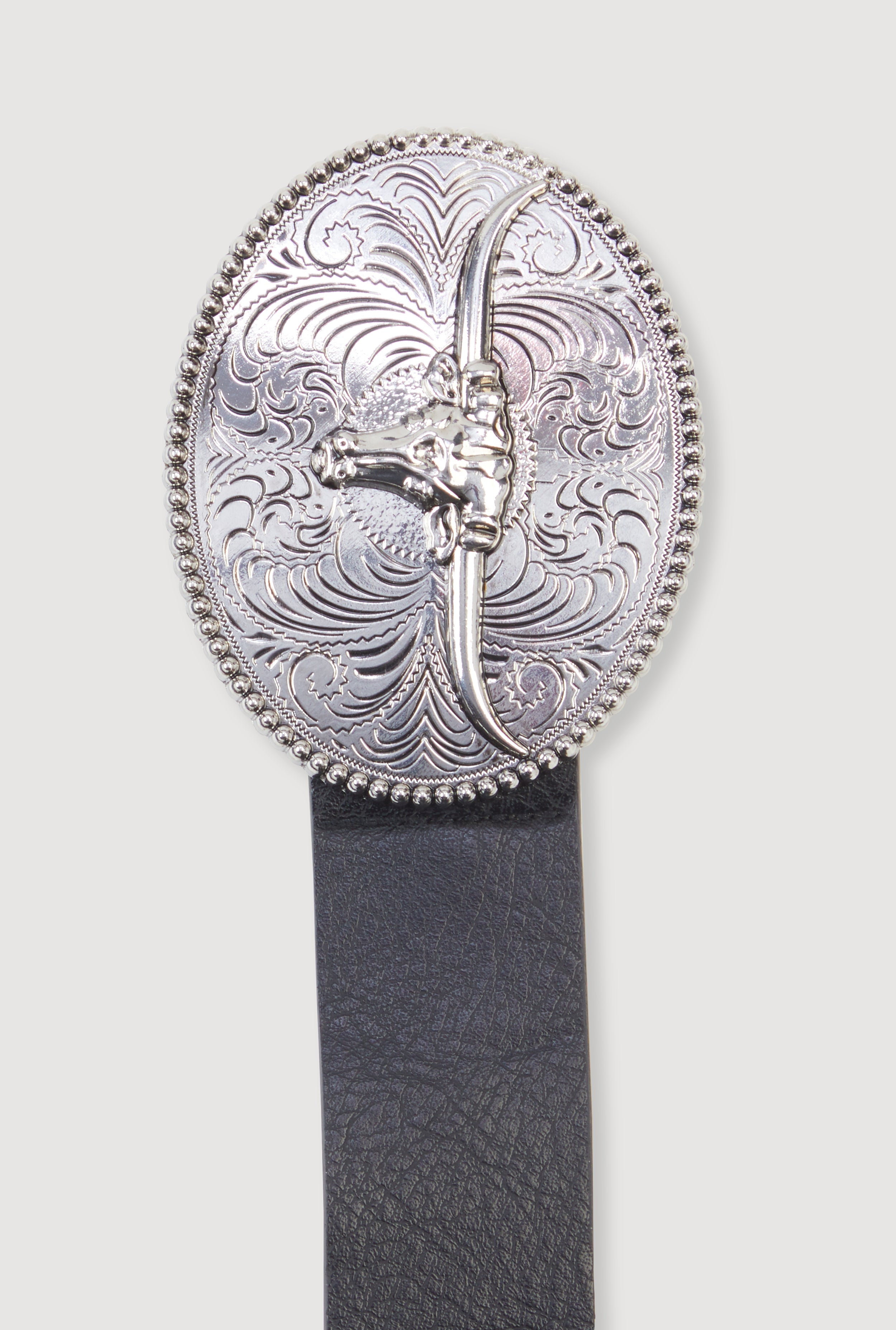 Plus Size Metallic Bull Buckle Faux Leather Belt
