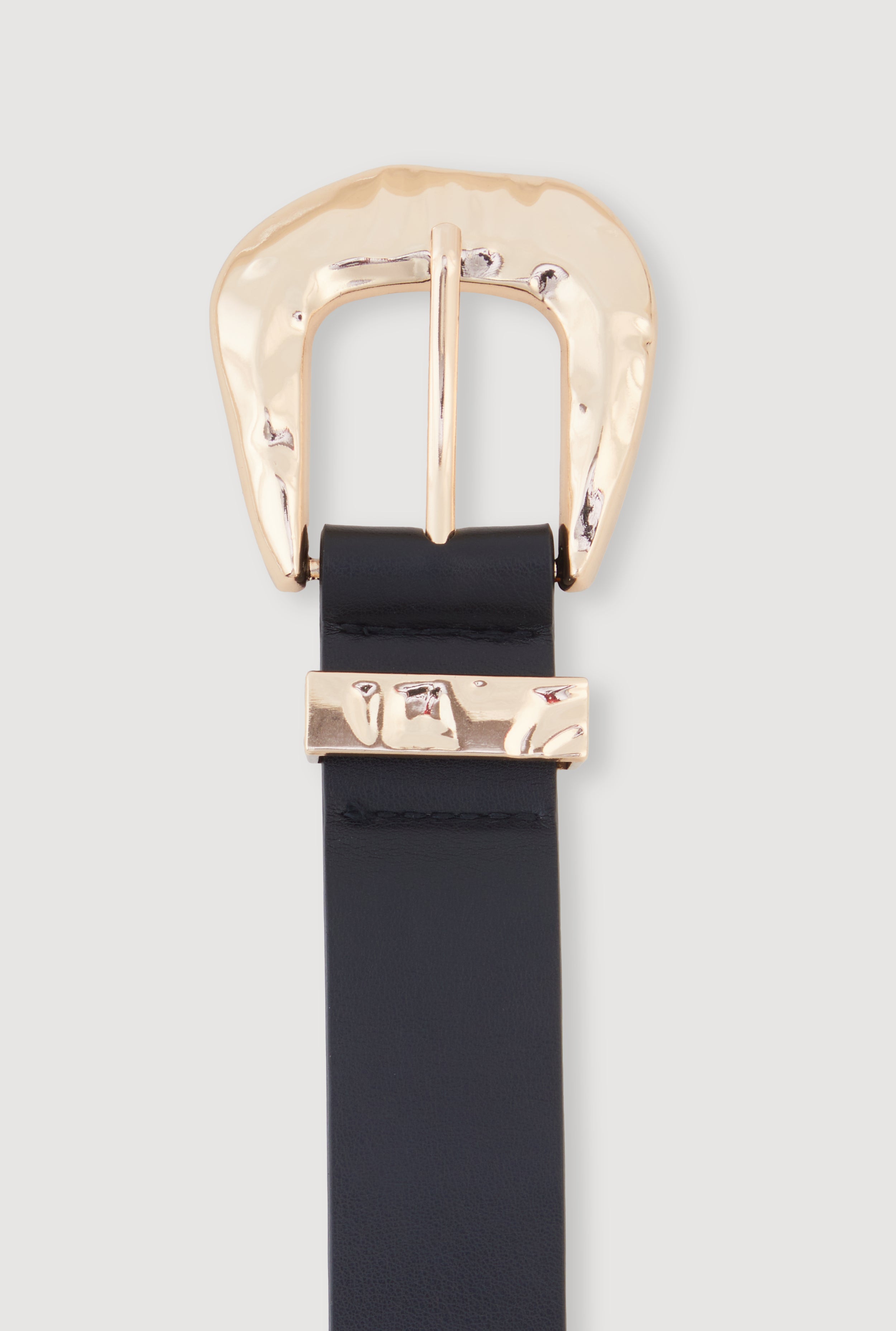 Plus Size Metallic Hammered Detail Buckle Faux Leather Belt