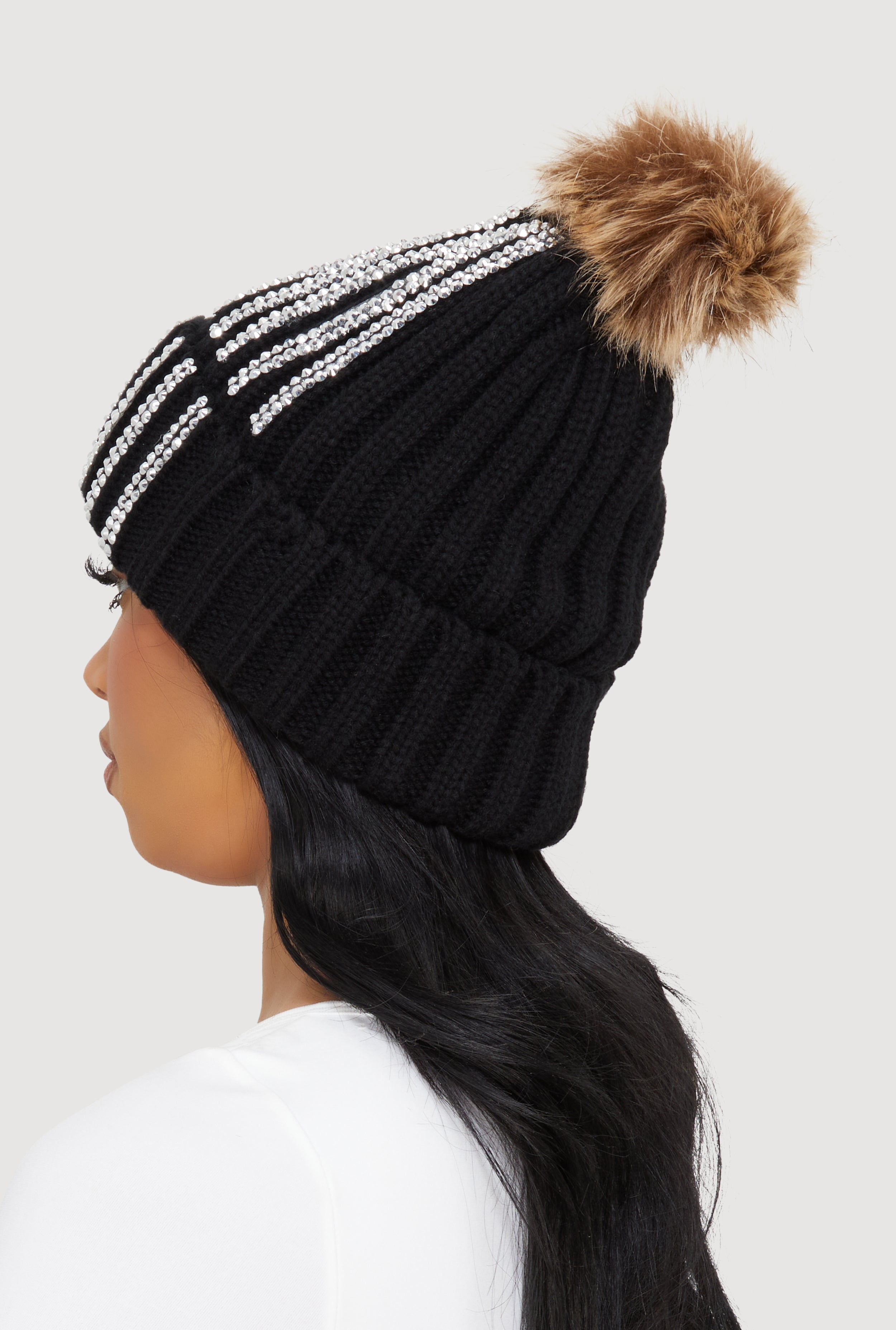 Stay cozy and shine bright with this Rhinestone Beanie featuring a playful faux fur pom pom. Perfect for chilly days when you want to add a little sparkle to your look without sacrificing warmth. This beanie effortlessly blends cute and cool vibes, making it a must-have accessory for your cold-weather wardrobe.