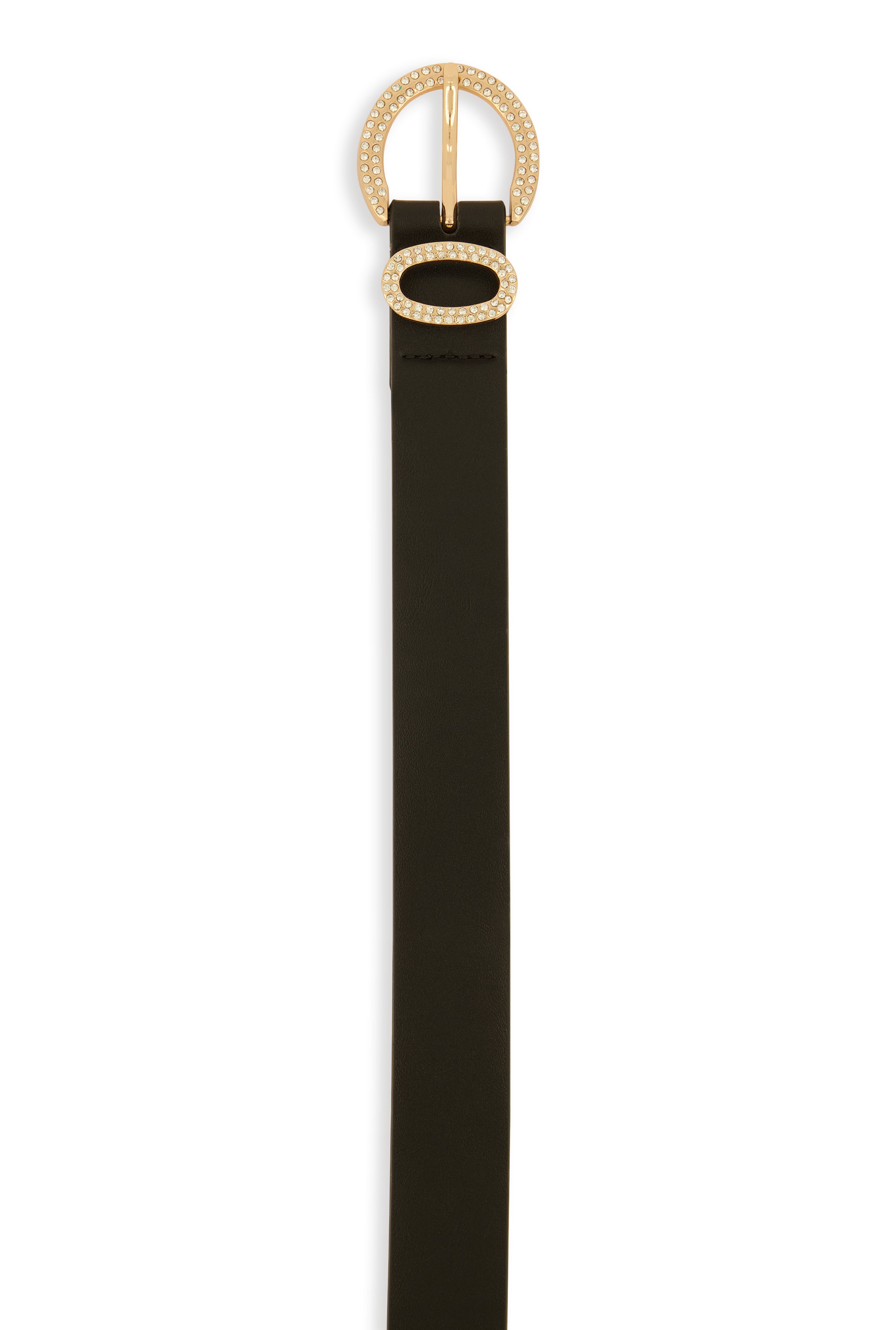 Rhinestone Studded Buckle Faux Leather Belt