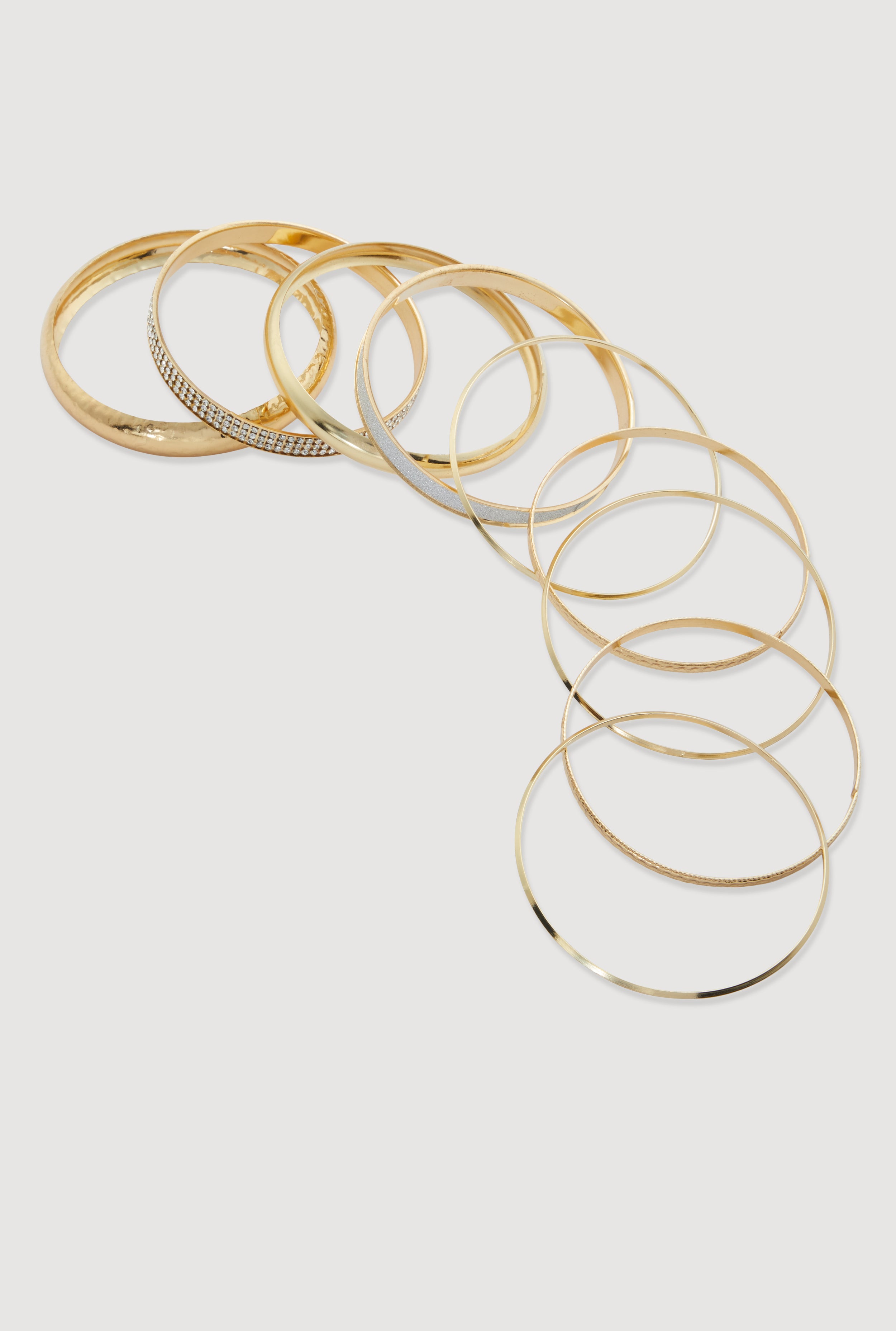 Plus Size Assorted Cubic Zirconia Metallic Bangles Set of 9