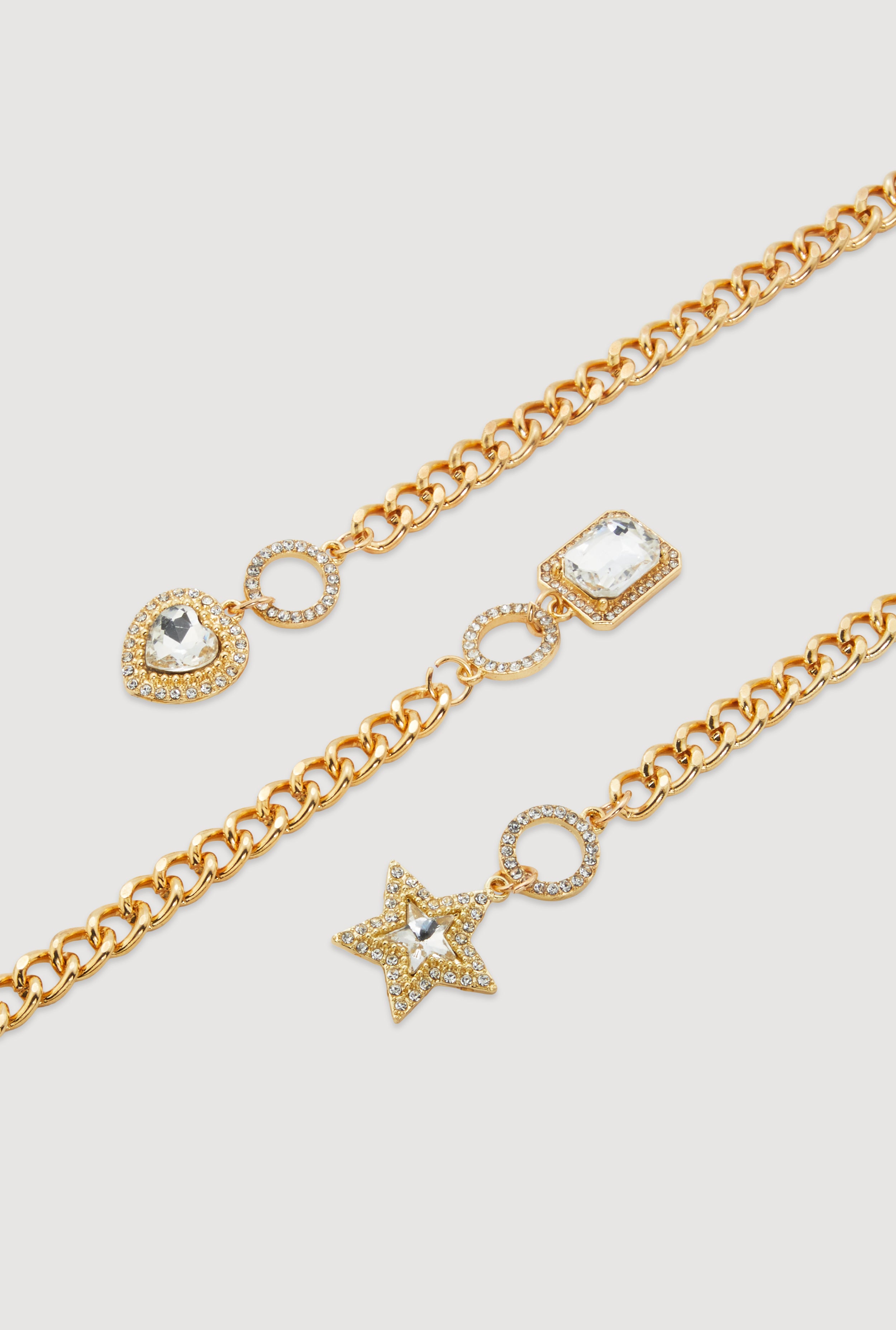 Rhinestone Assorted Charm Chain Bracelet Trio