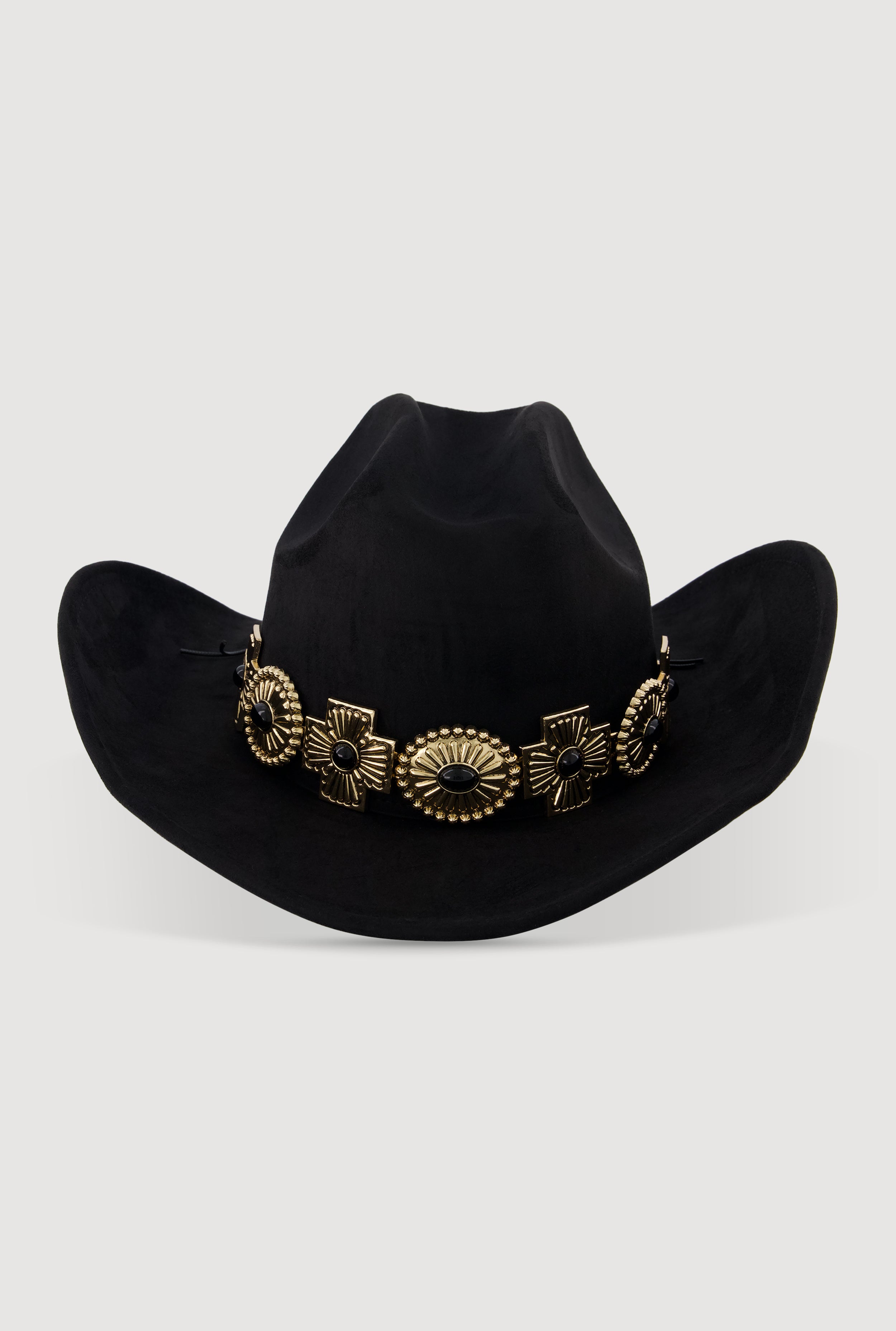 Trendy Faux Suede Metallic Cross Trim Cowboy Hat