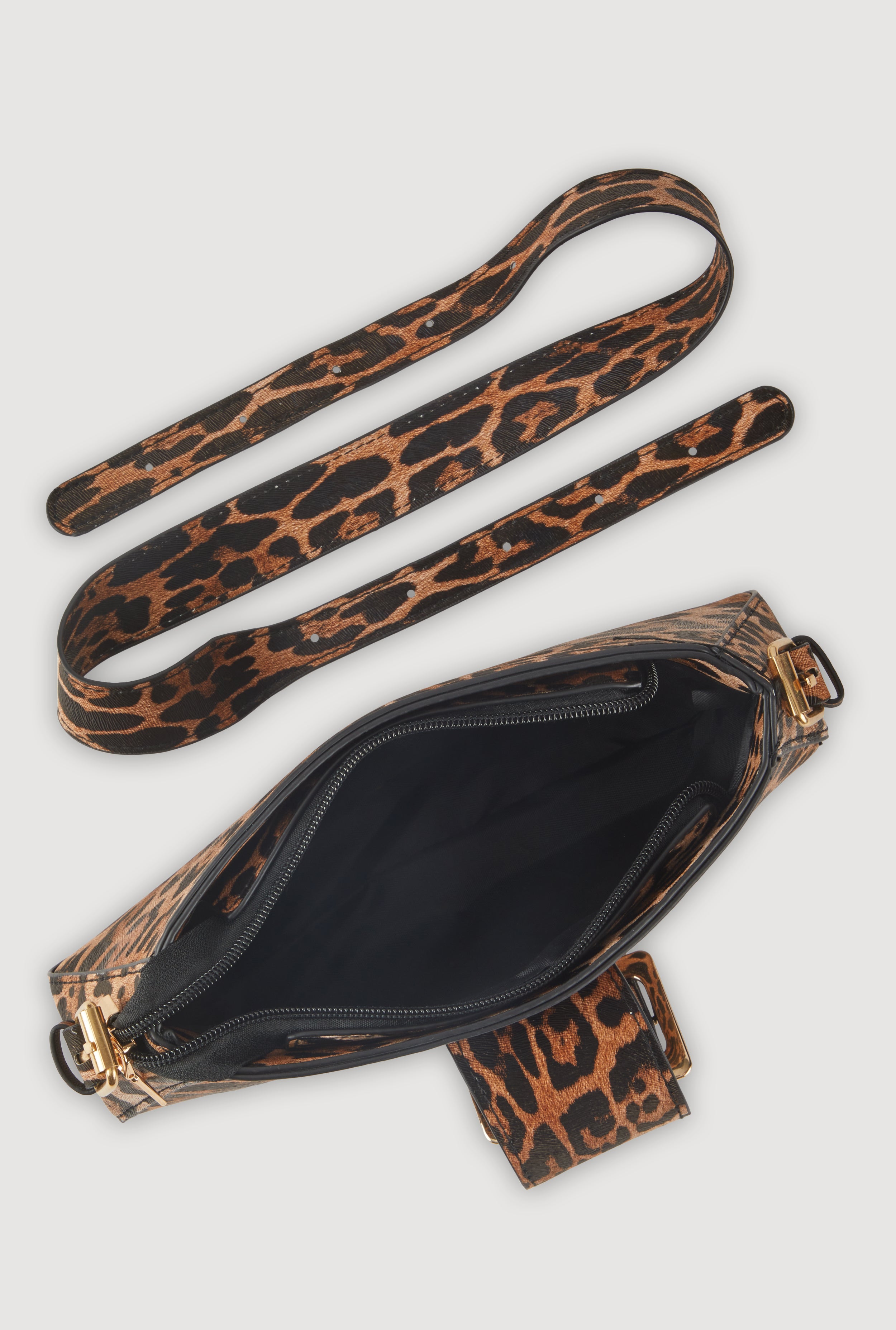 Turn heads everywhere you go with this Leopard Print Buckle Detail Shoulder Bag. Crafted from sleek faux leather, it adds a fierce touch to your casual or night out looks. The adjustable 32 inch strap lets you style it crossbody or on the shoulder for hands-free convenience. With a secure zipper closure and chic metallic buckles, this bag combines edgy vibes with everyday practicality.