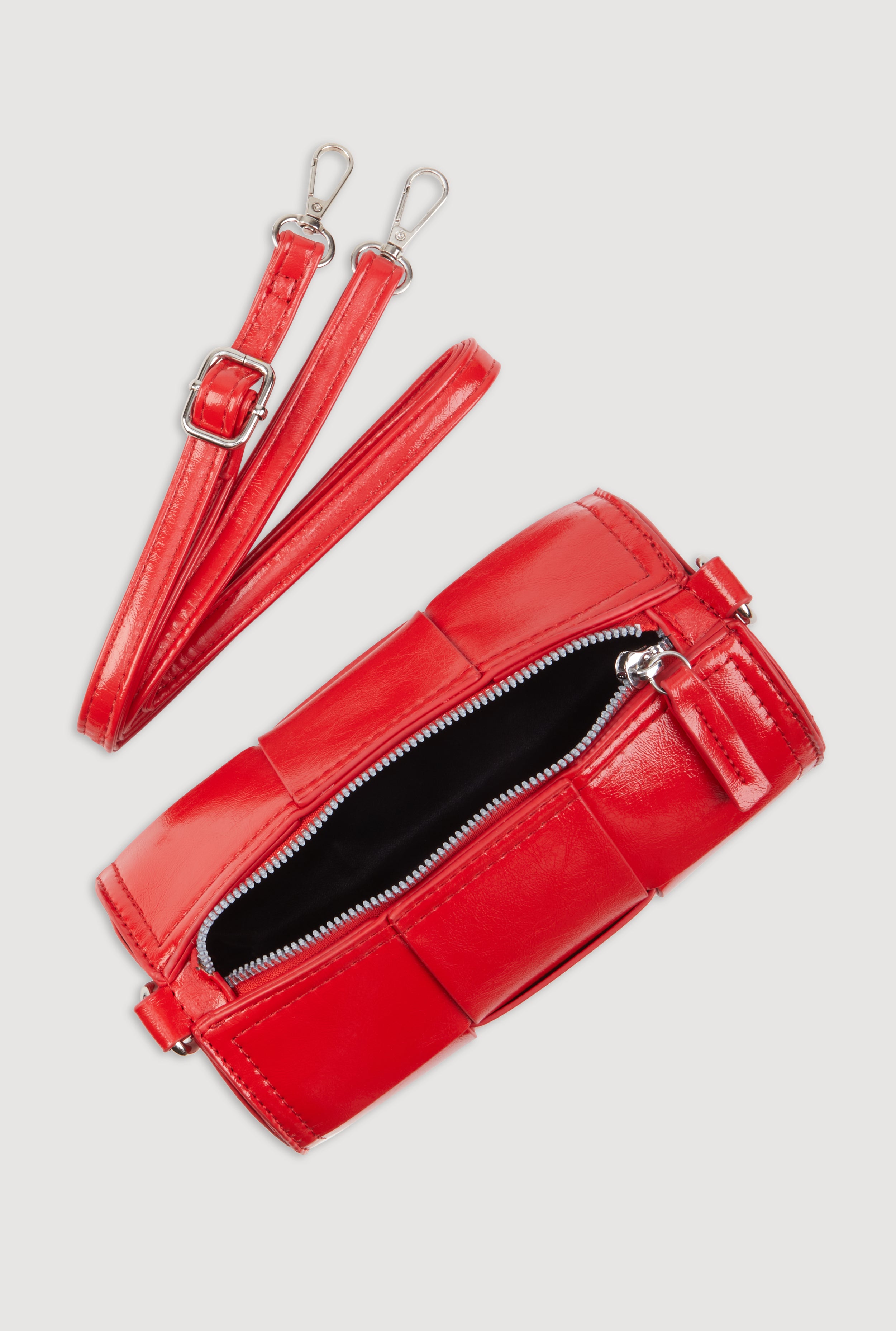 Faux Leather Woven Cylinder Crossbody Bag