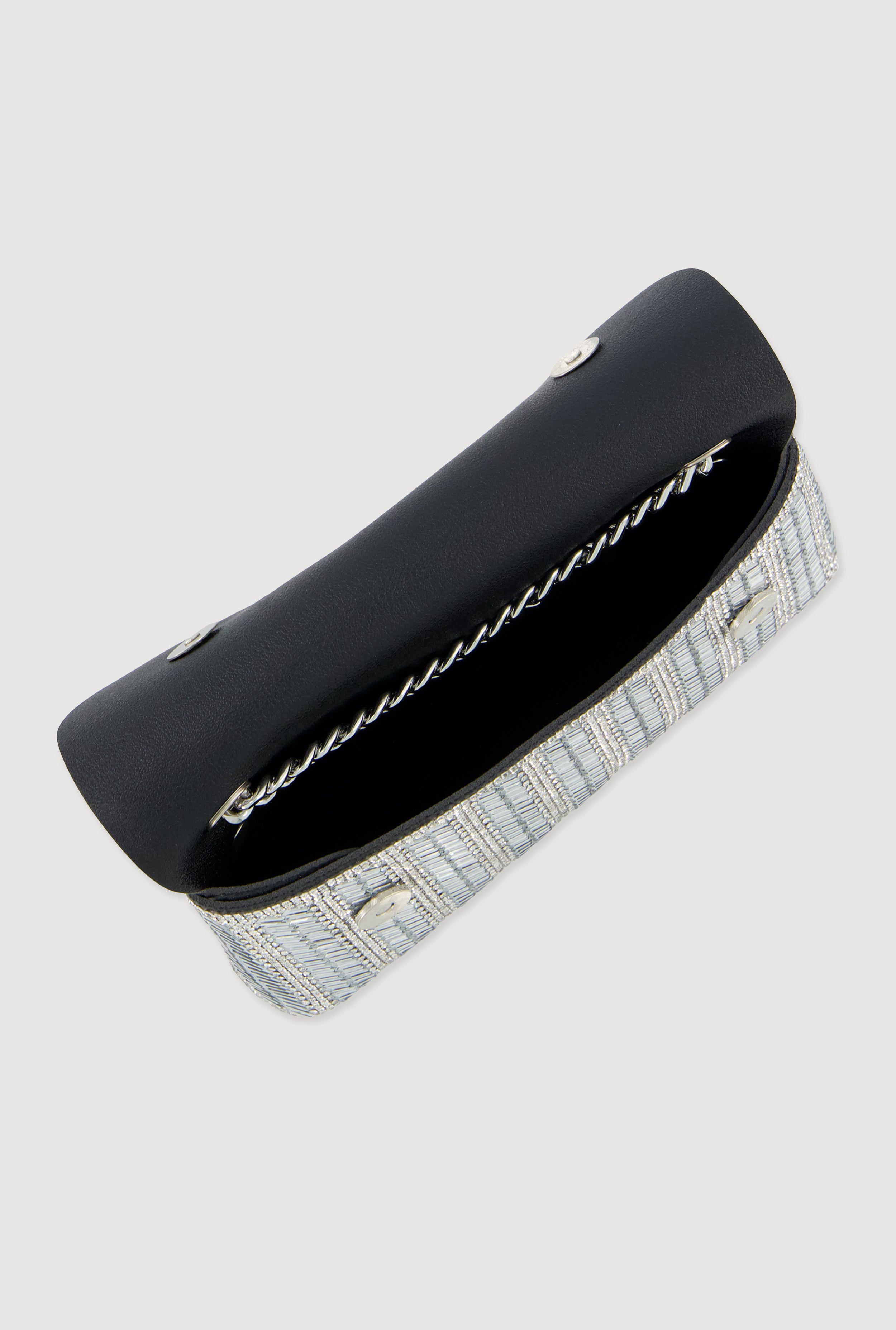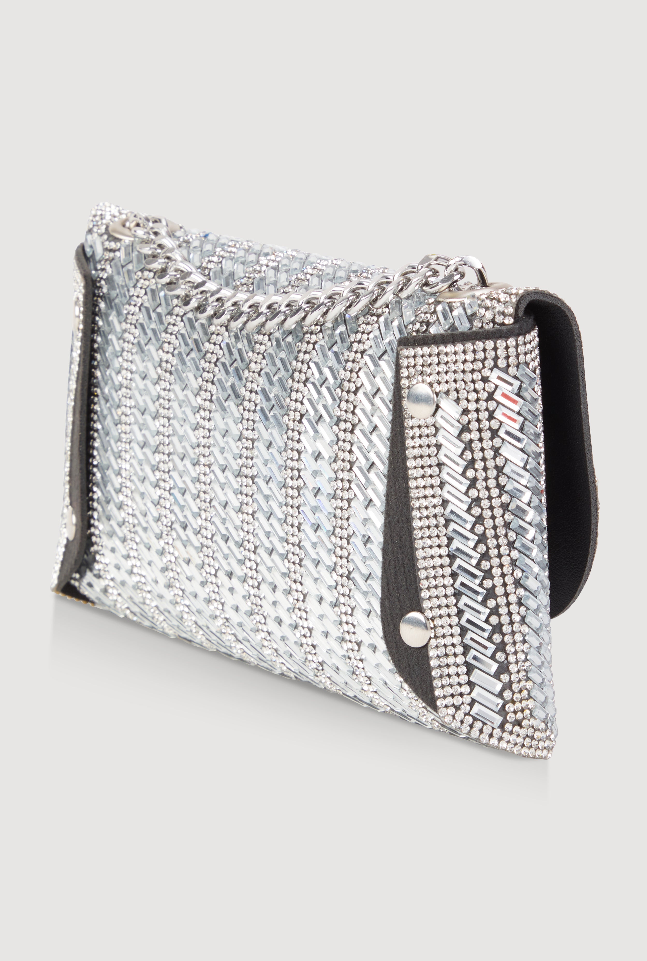 Metallic Chain Rhinestone Crossbody Clutch Bag