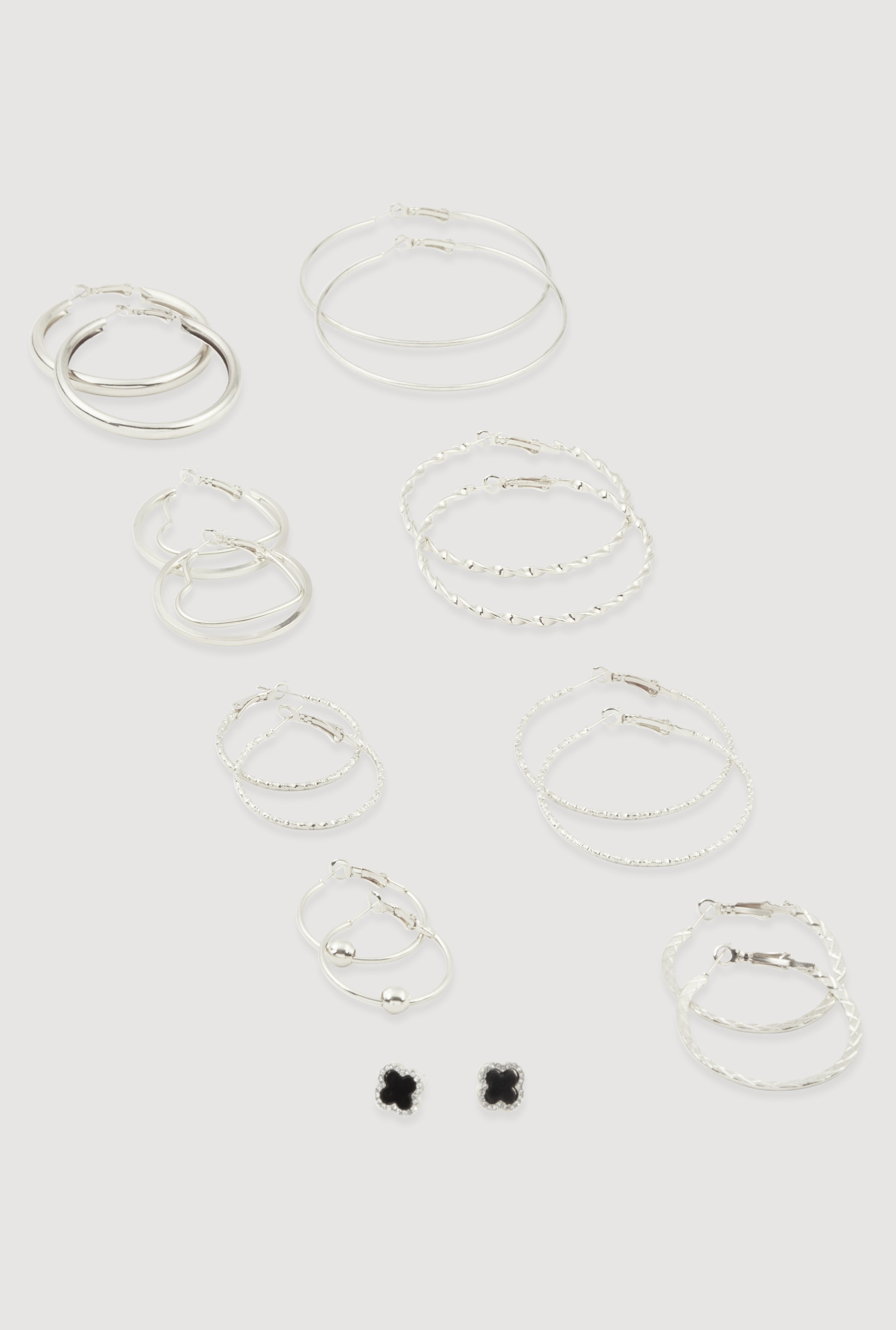 Metallic Assorted Hoop and Rhinestone Stud Earrings Set of 9