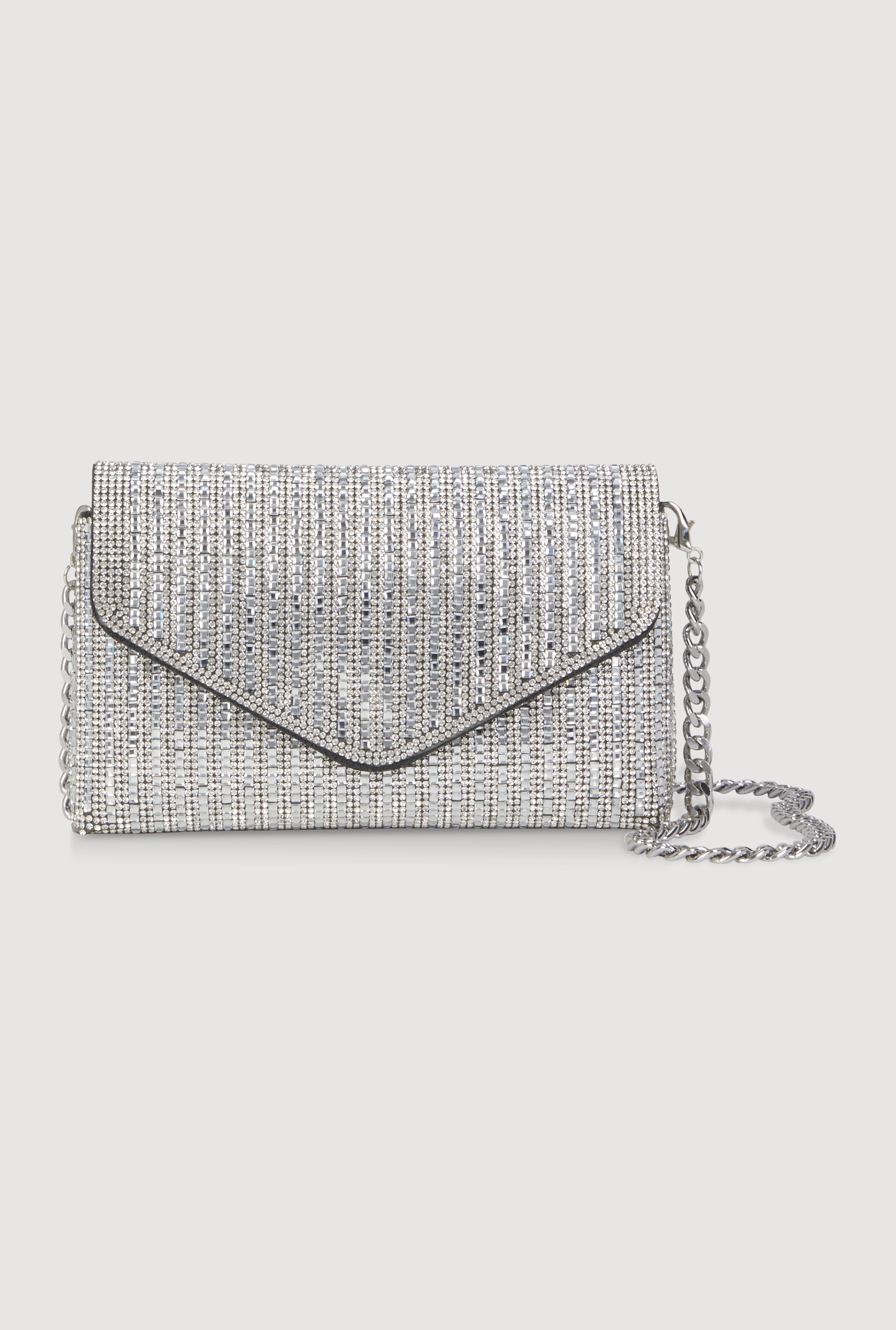 Rhinestone Envelope Clutch Bag with Removable Chain Strap