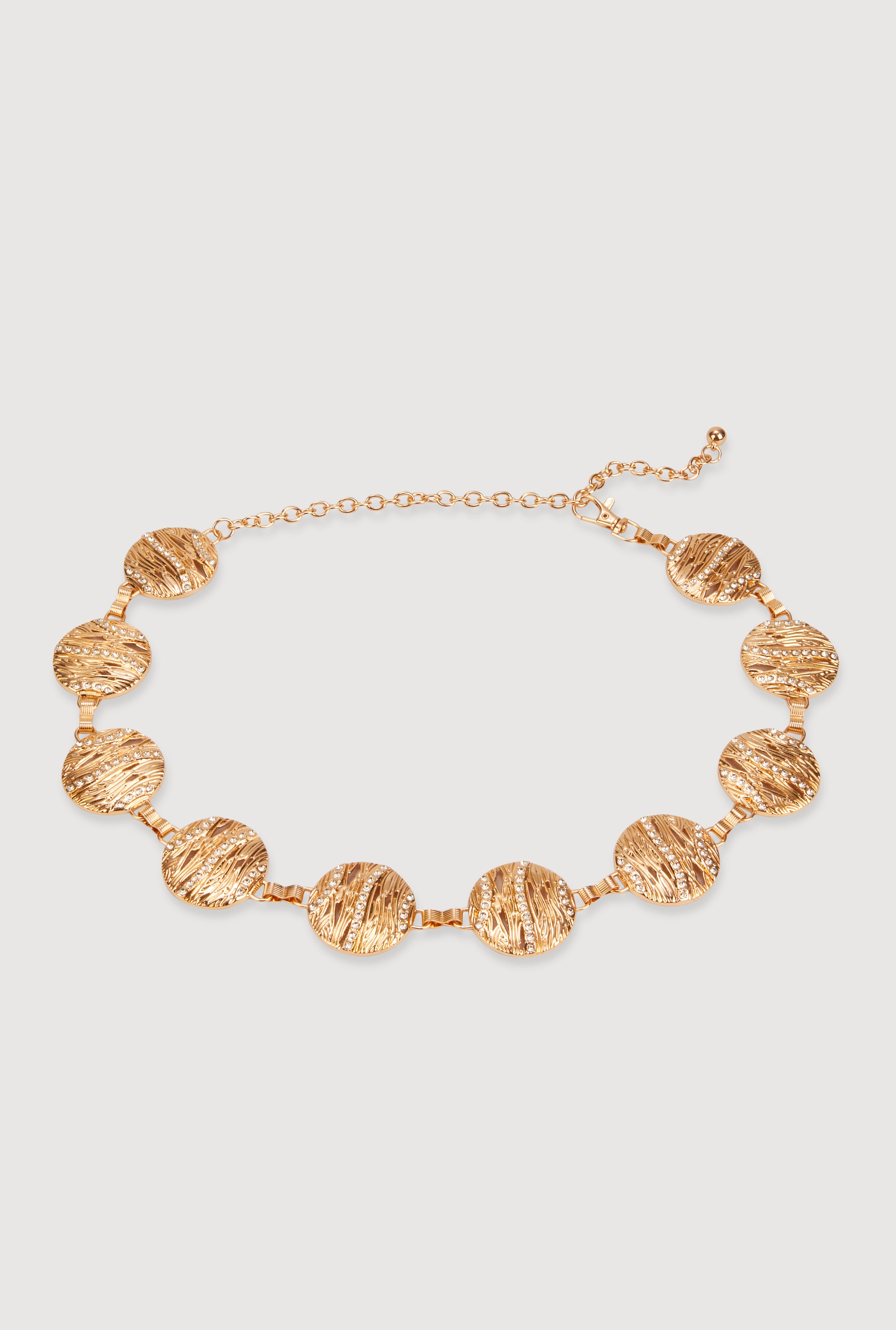 Textured Medallion Chain Belt with Rhinestones