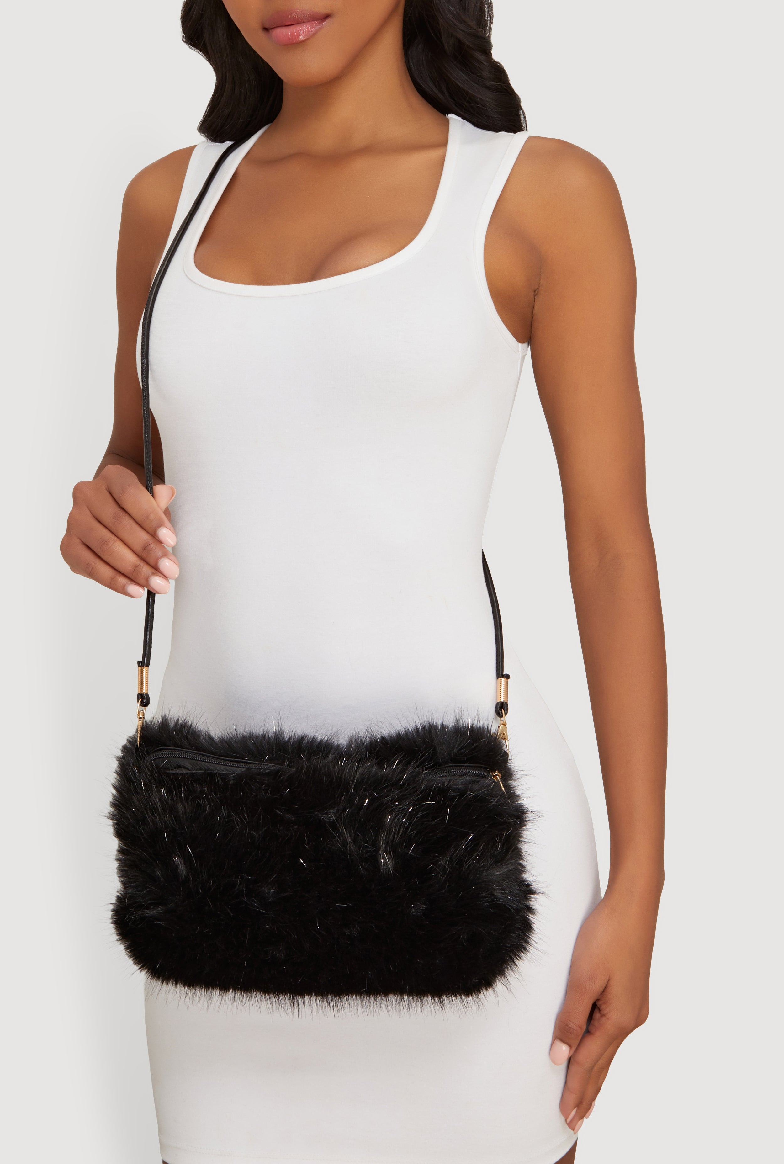 Lurex Faux Fur Convertible Muffler Clutch Bag