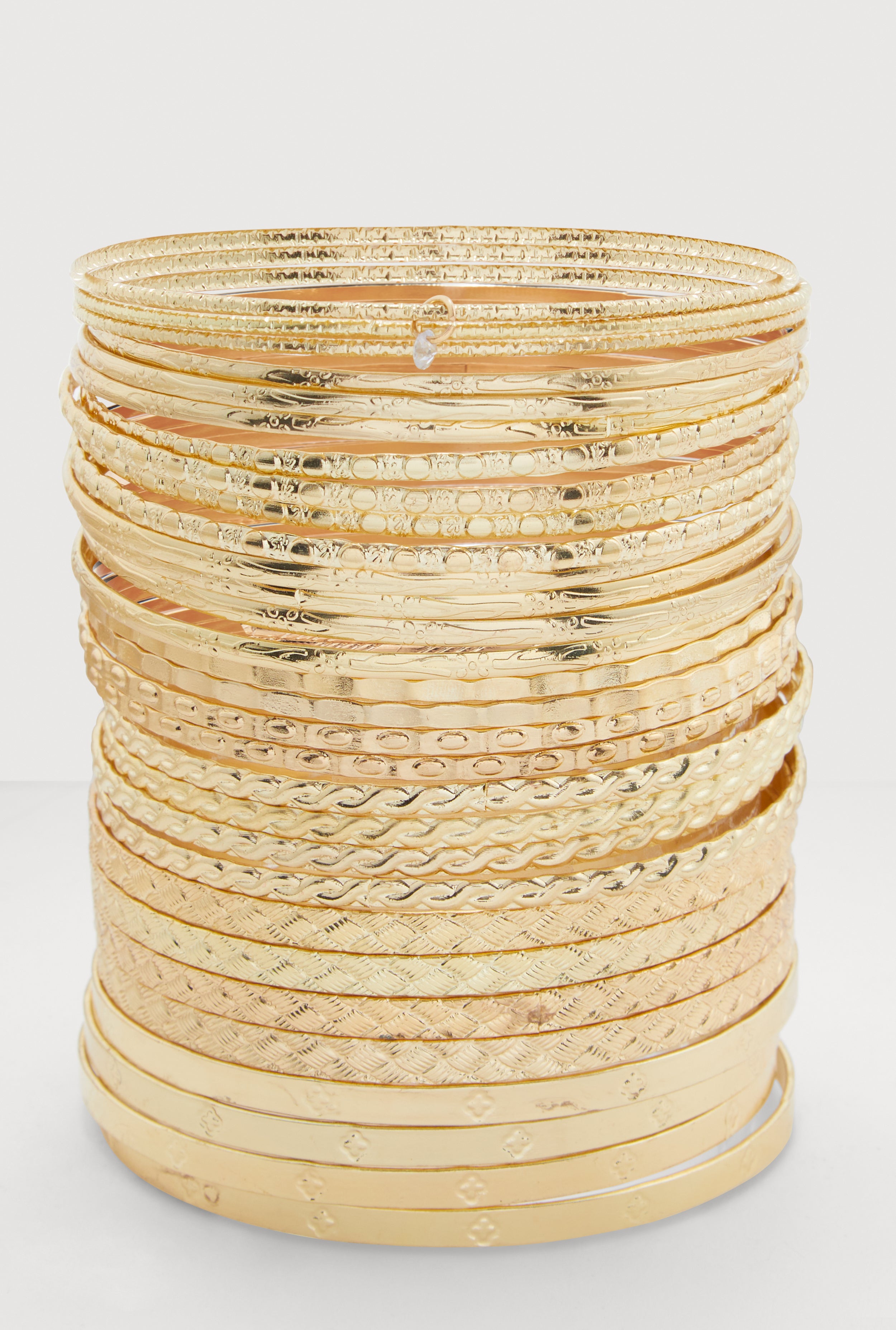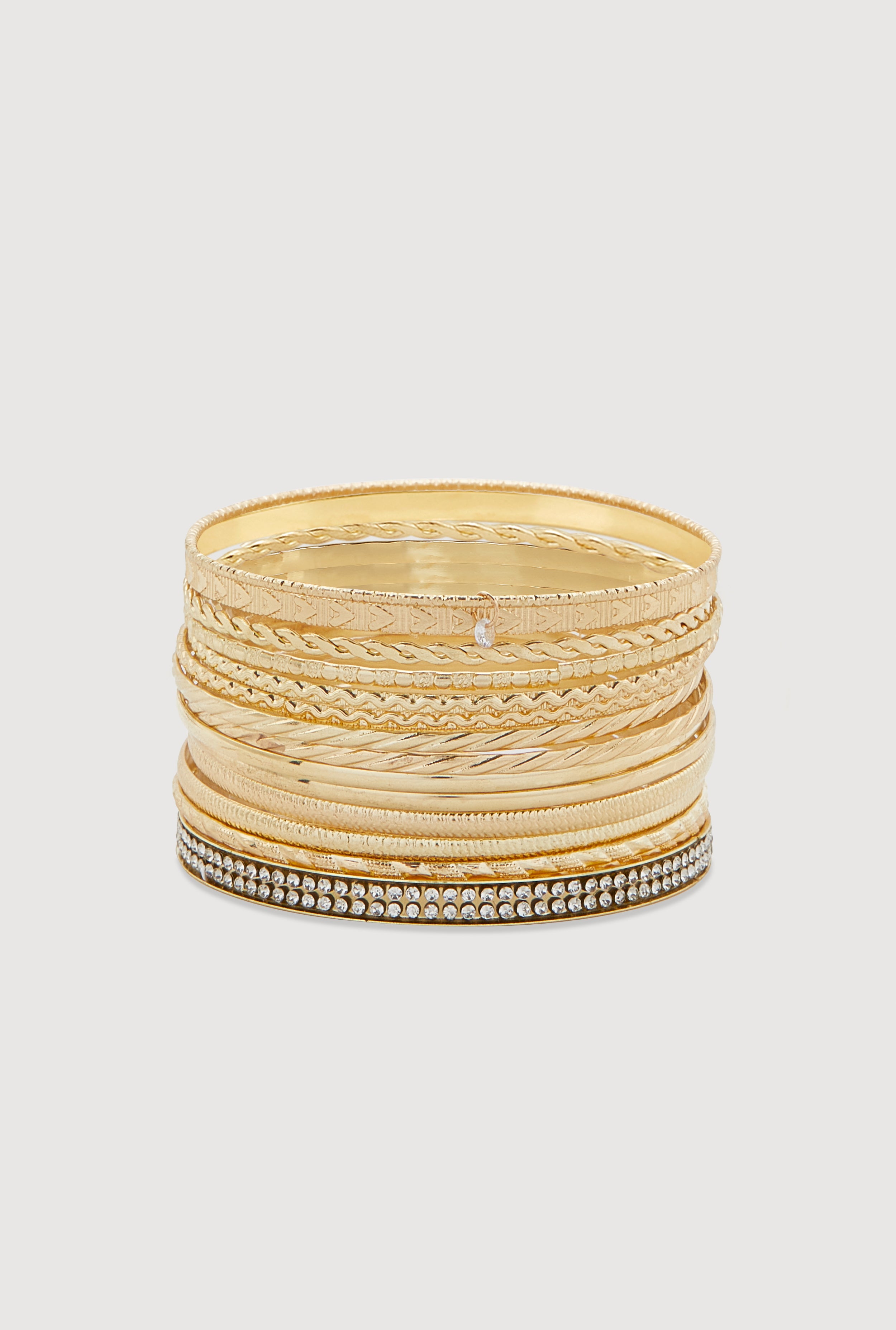 Plus Size Cubic Zirconia Metallic Textured Bangles Set of 15