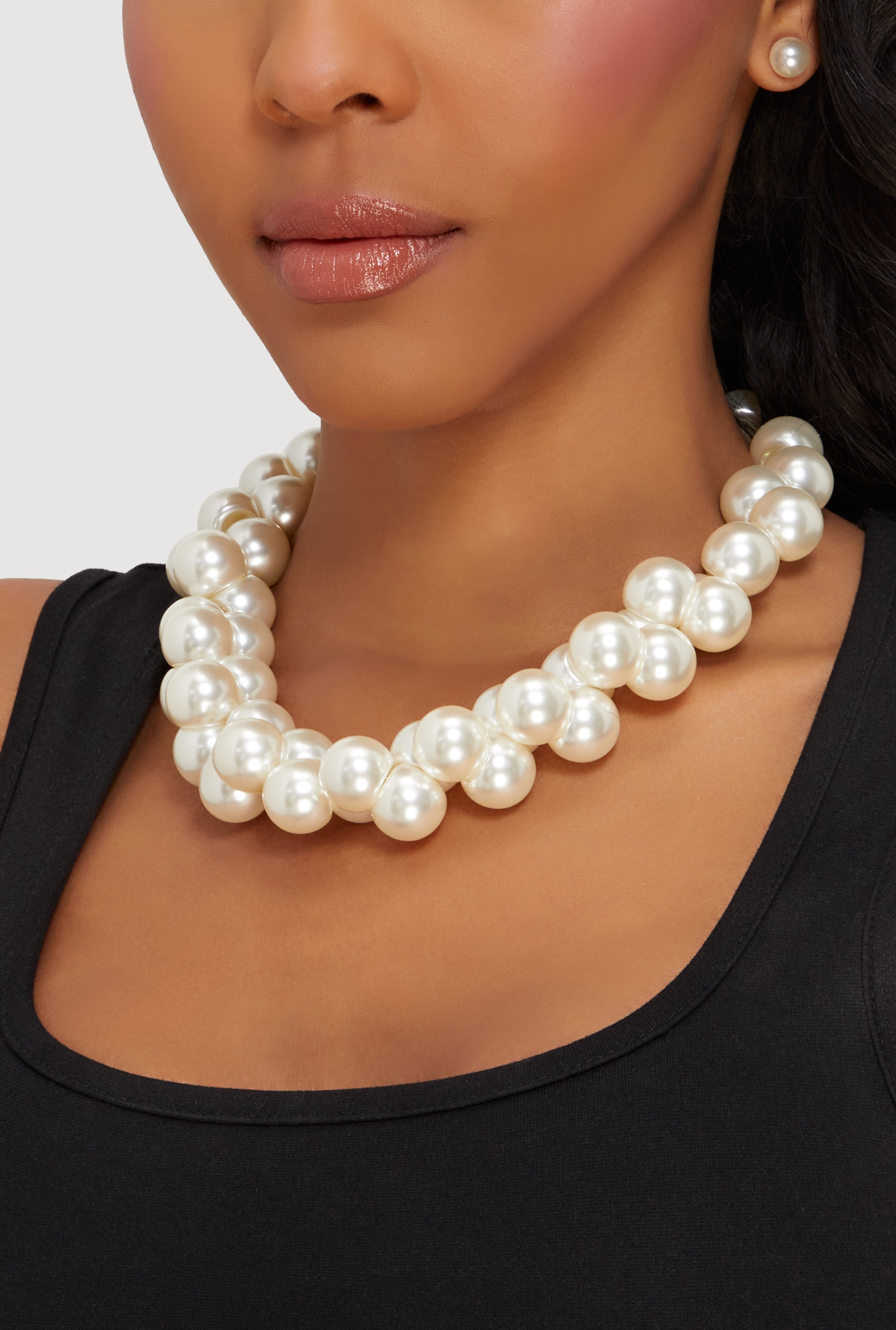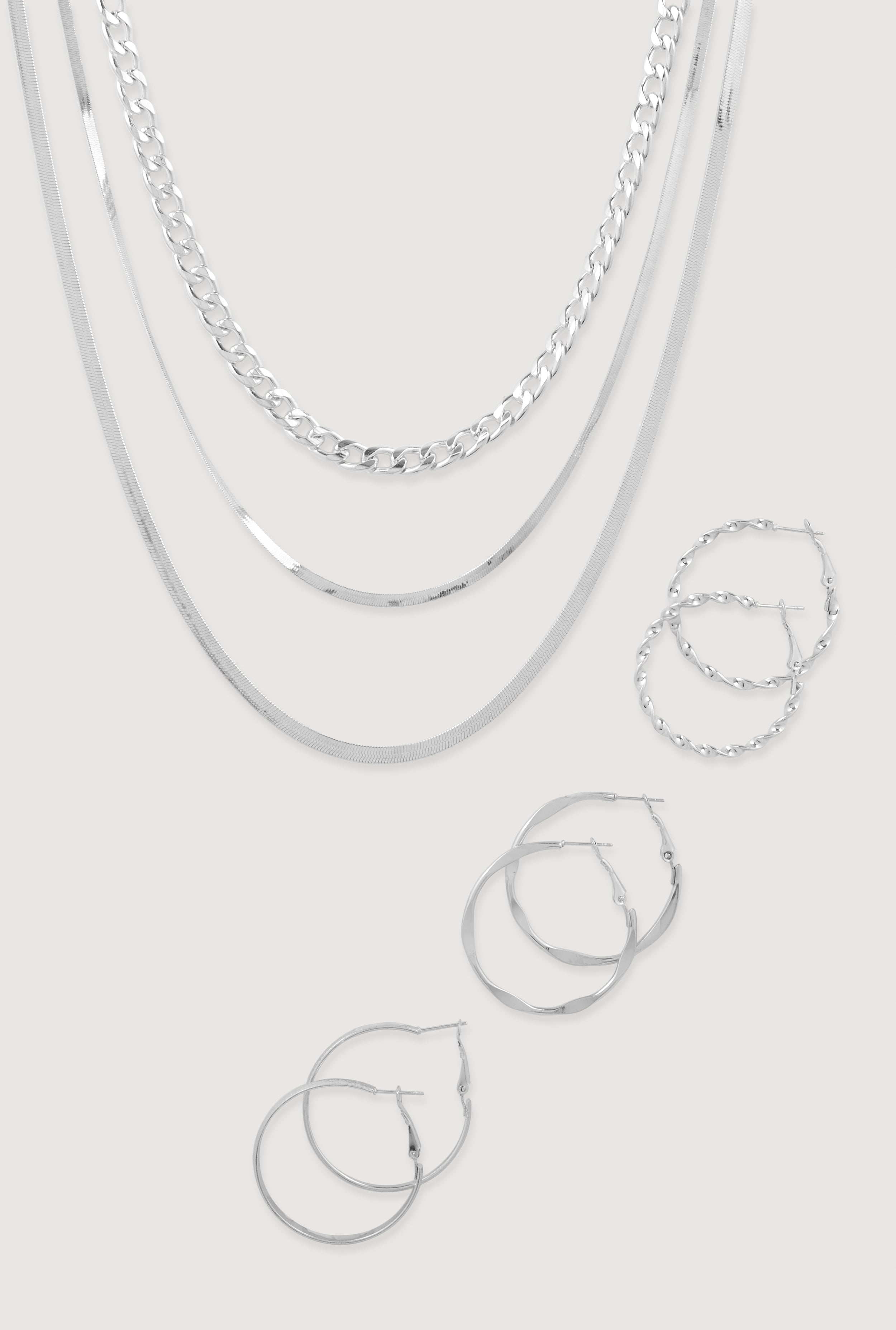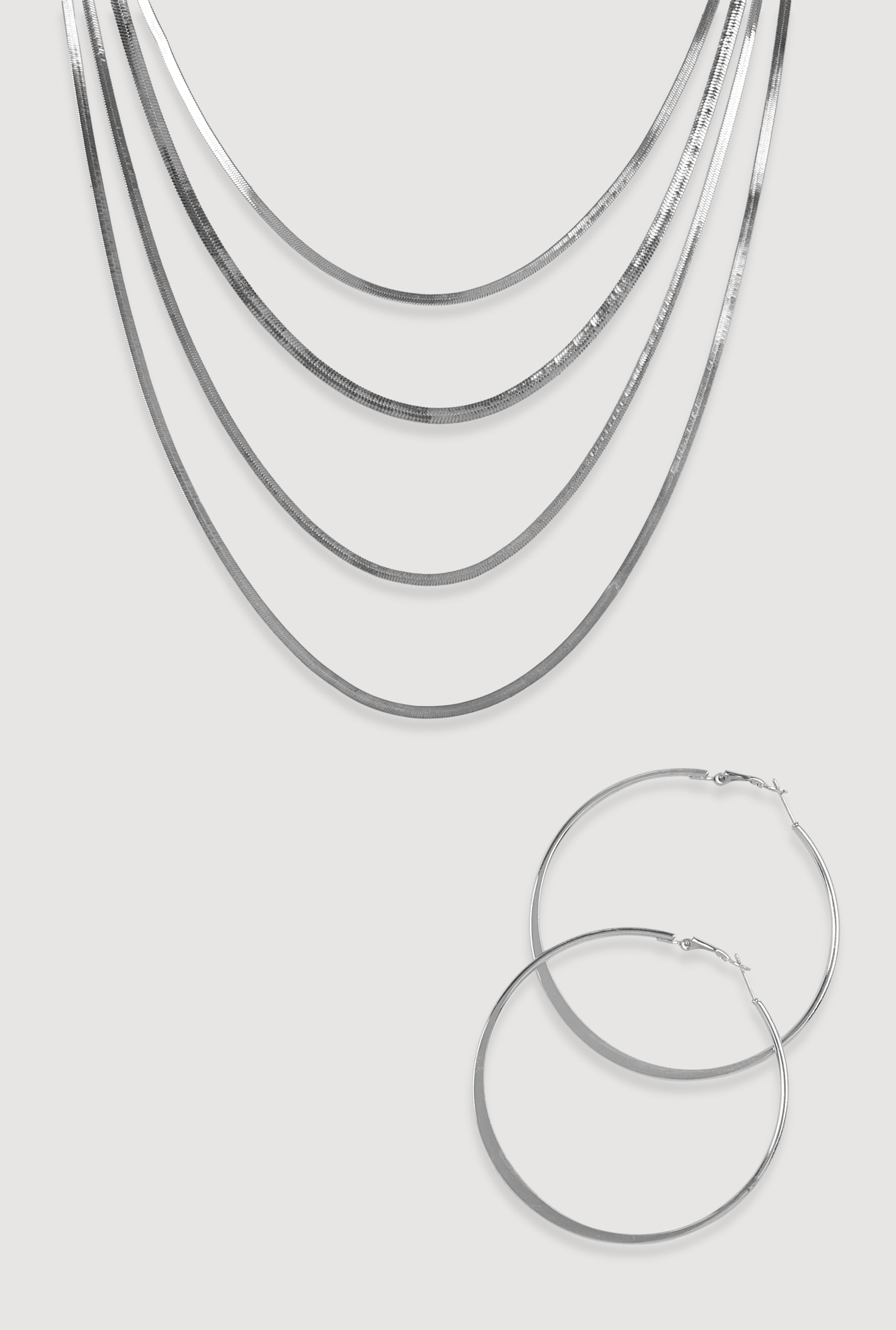 Herringbone Layered Necklace and Hoop Earrings Trio