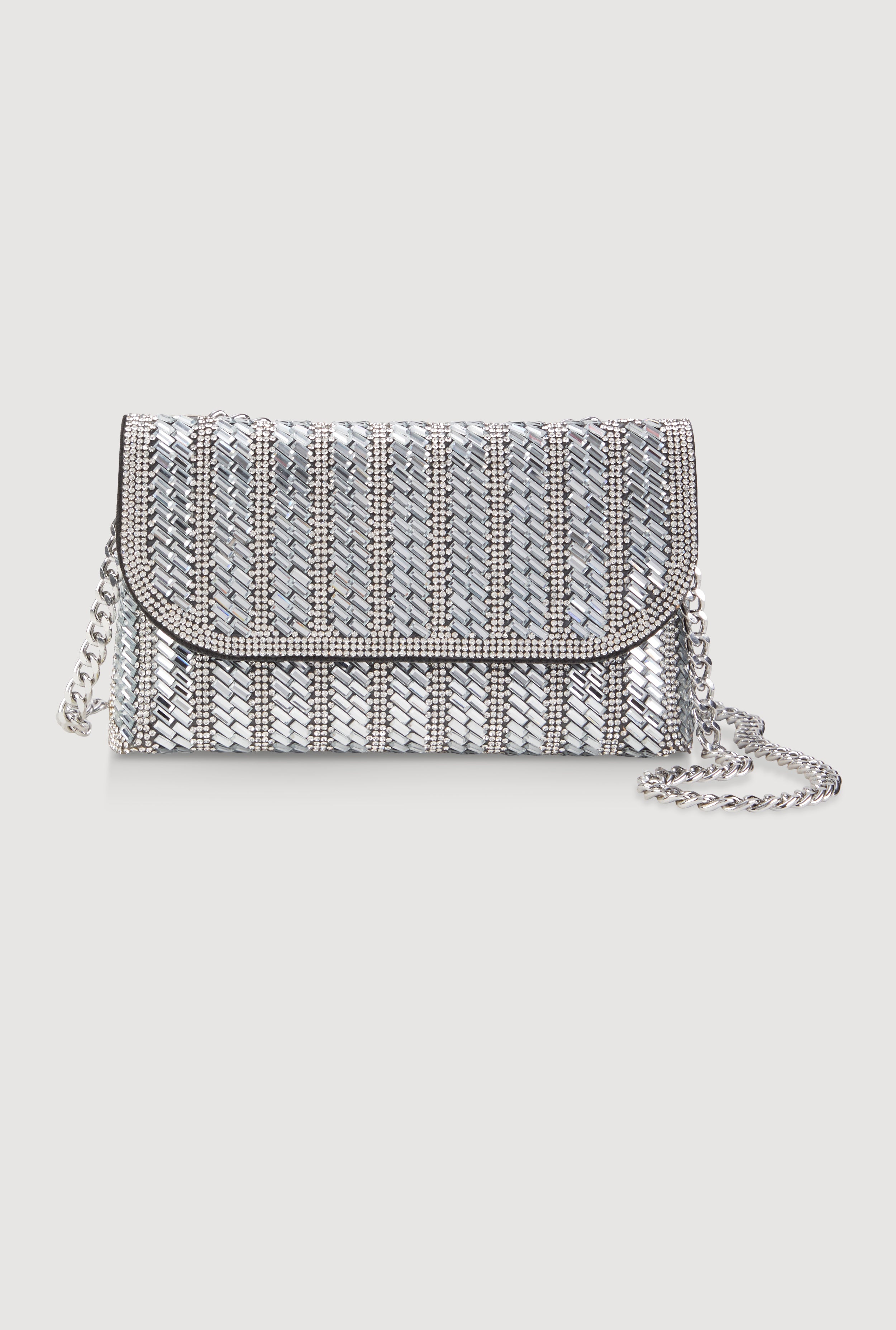 Metallic Chain Rhinestone Crossbody Clutch Bag