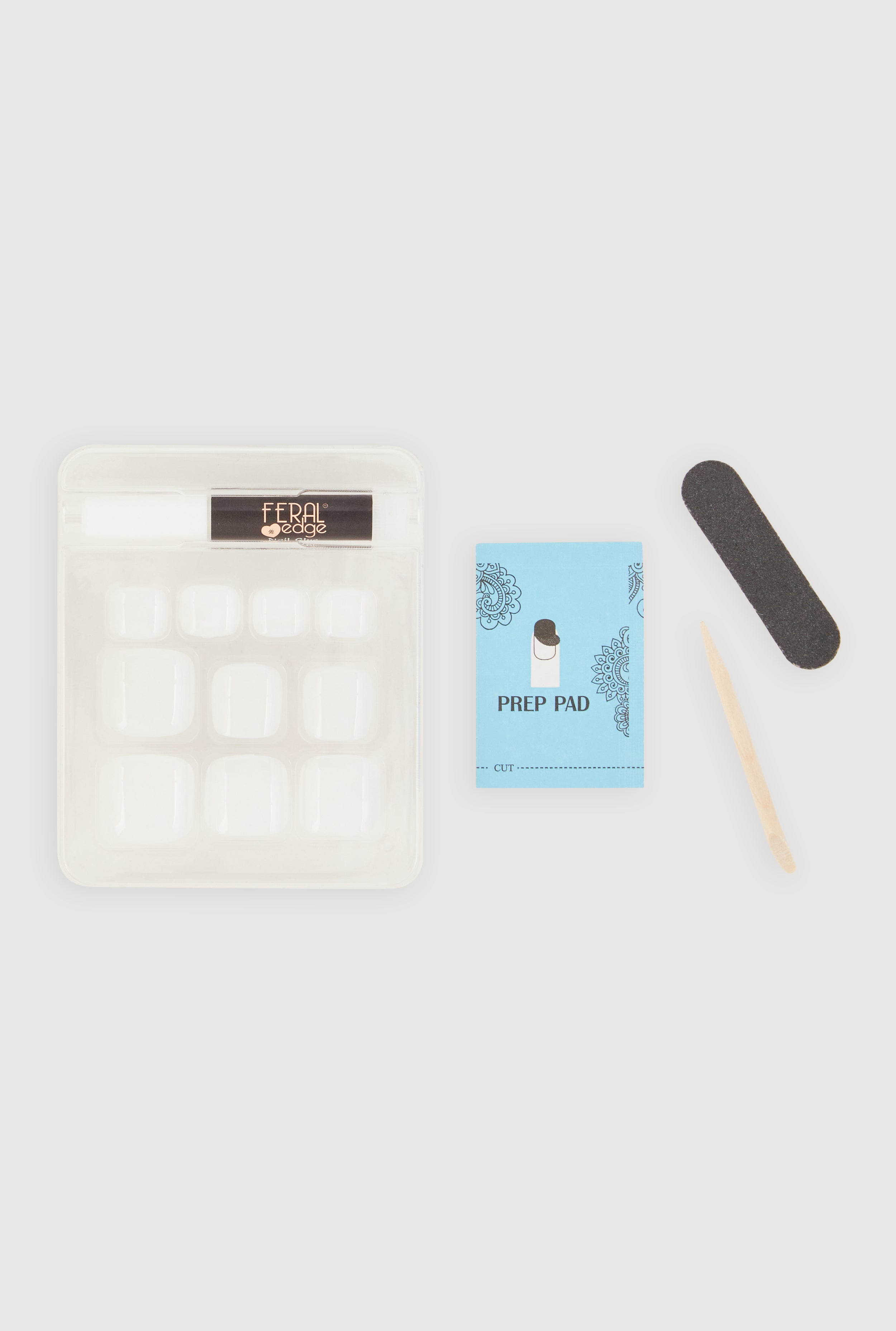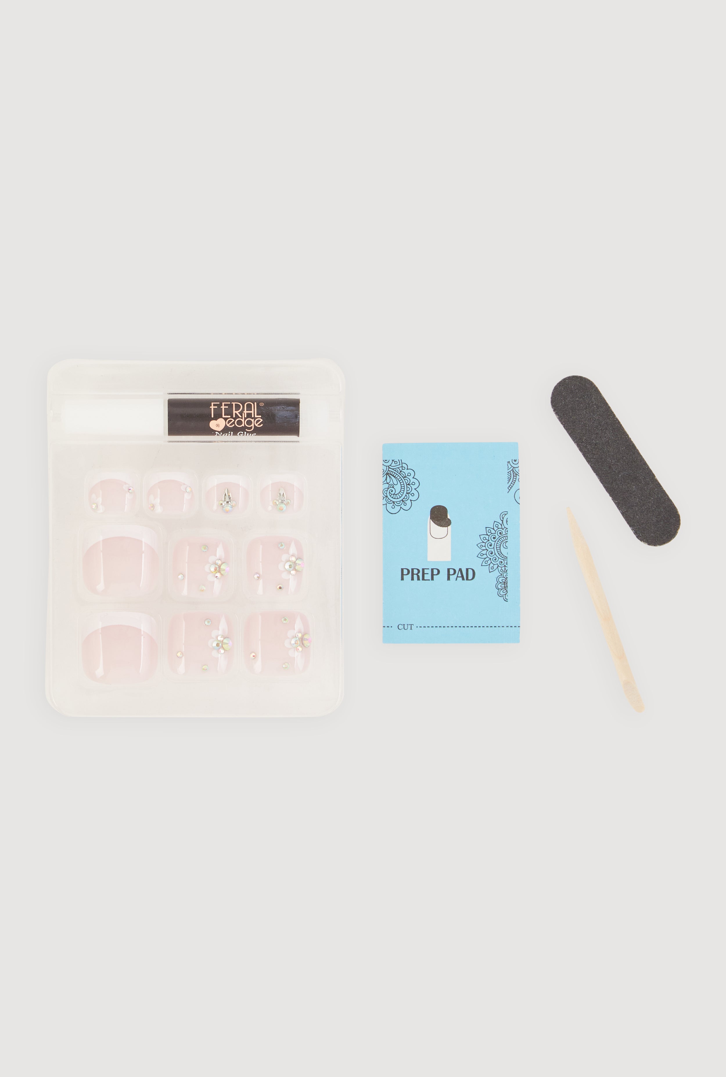 Rhinestone Floral Design French Tip Press On Pedicure Toenails