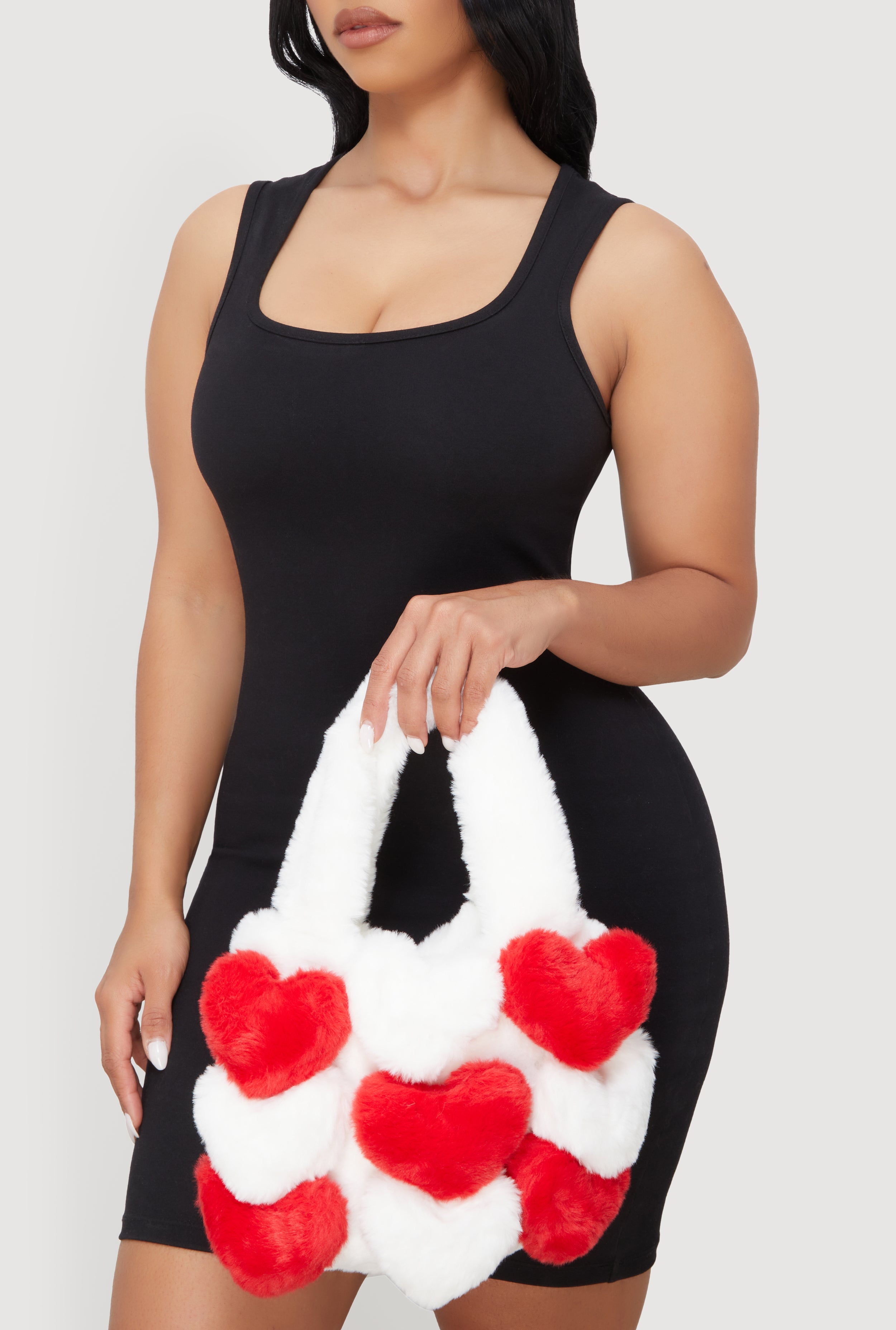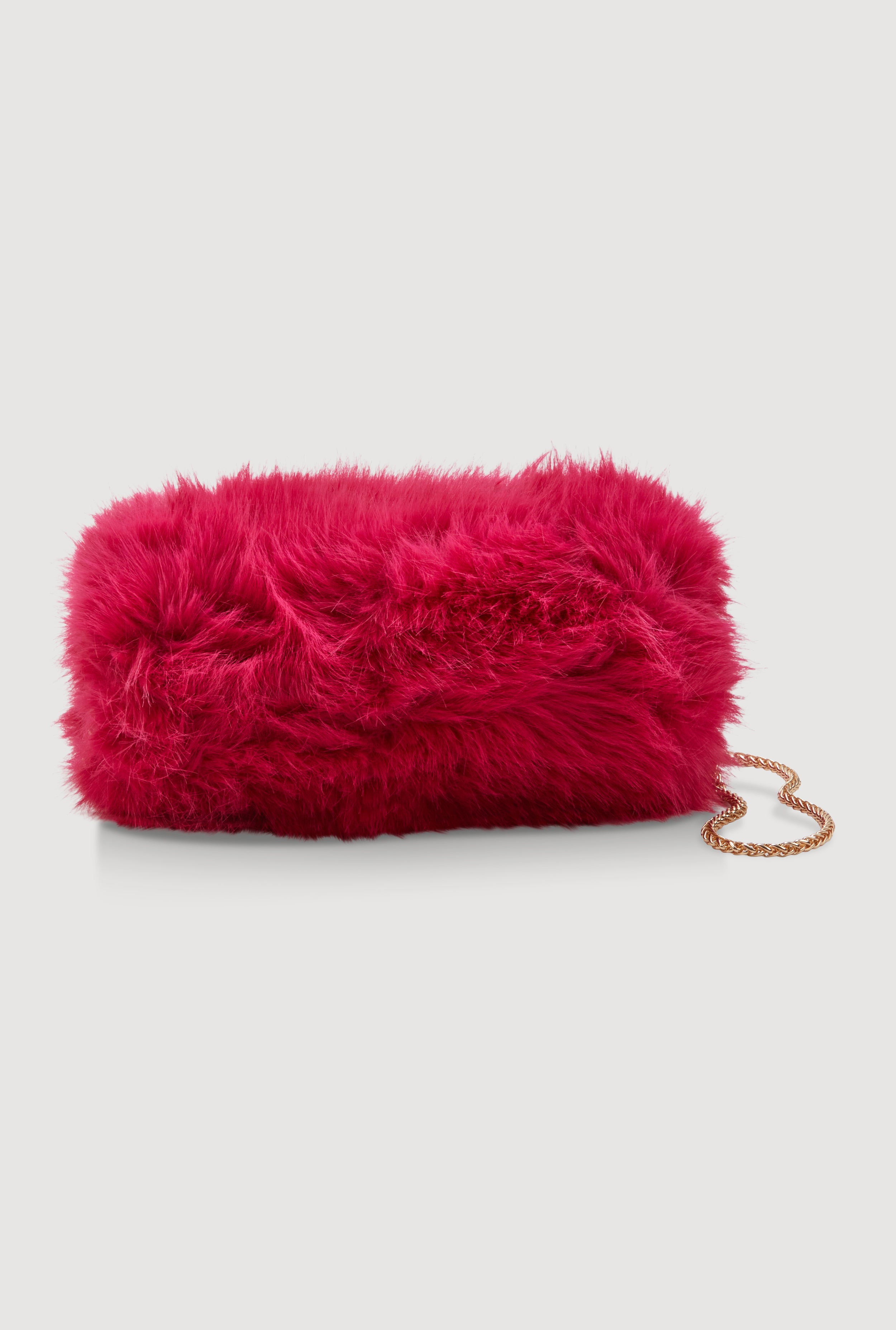 Faux Pearl Chain Detail Faux Fur Hobo Bag