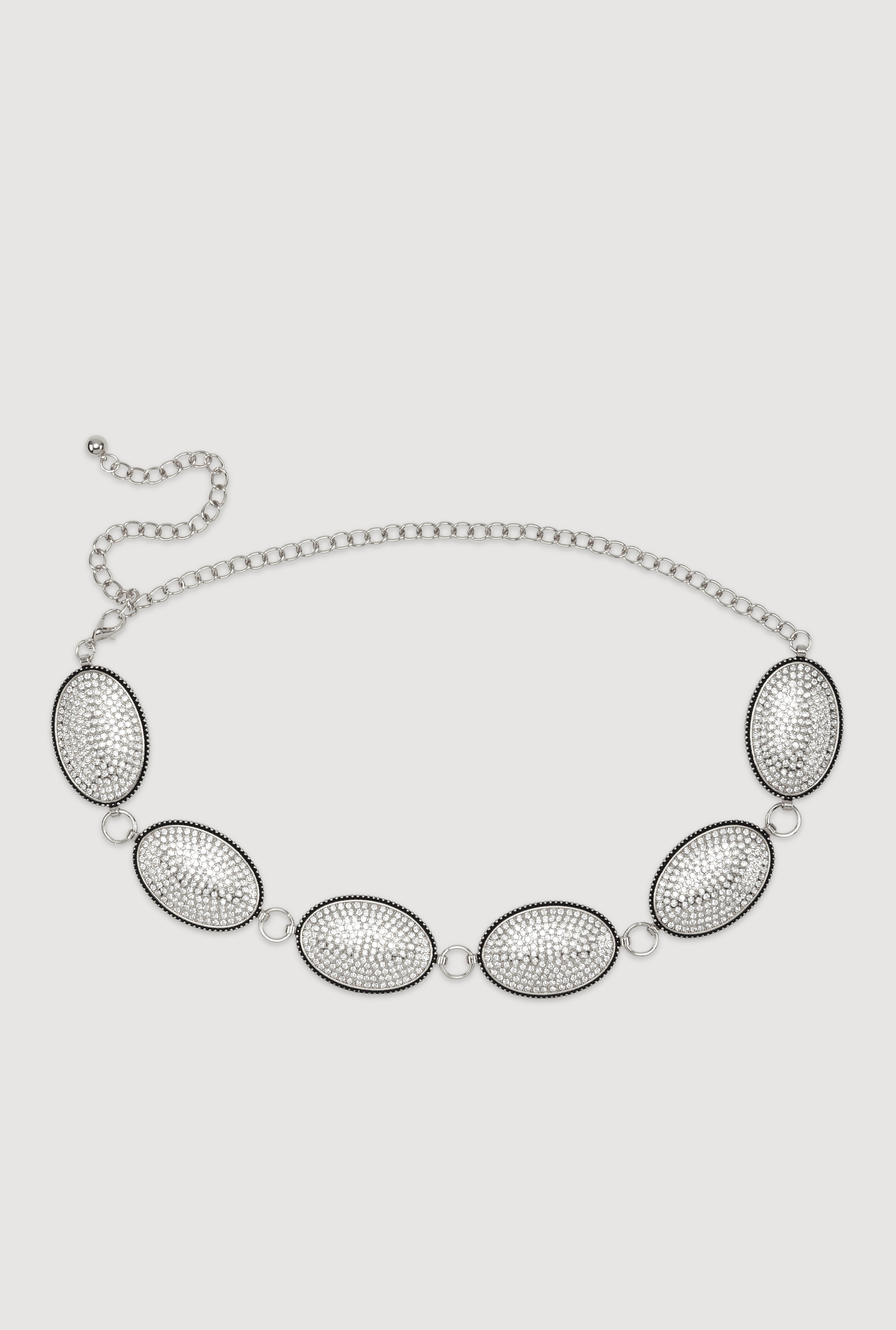 Plus Size Metallic Oval Rhinestone Medallion Chain Belt