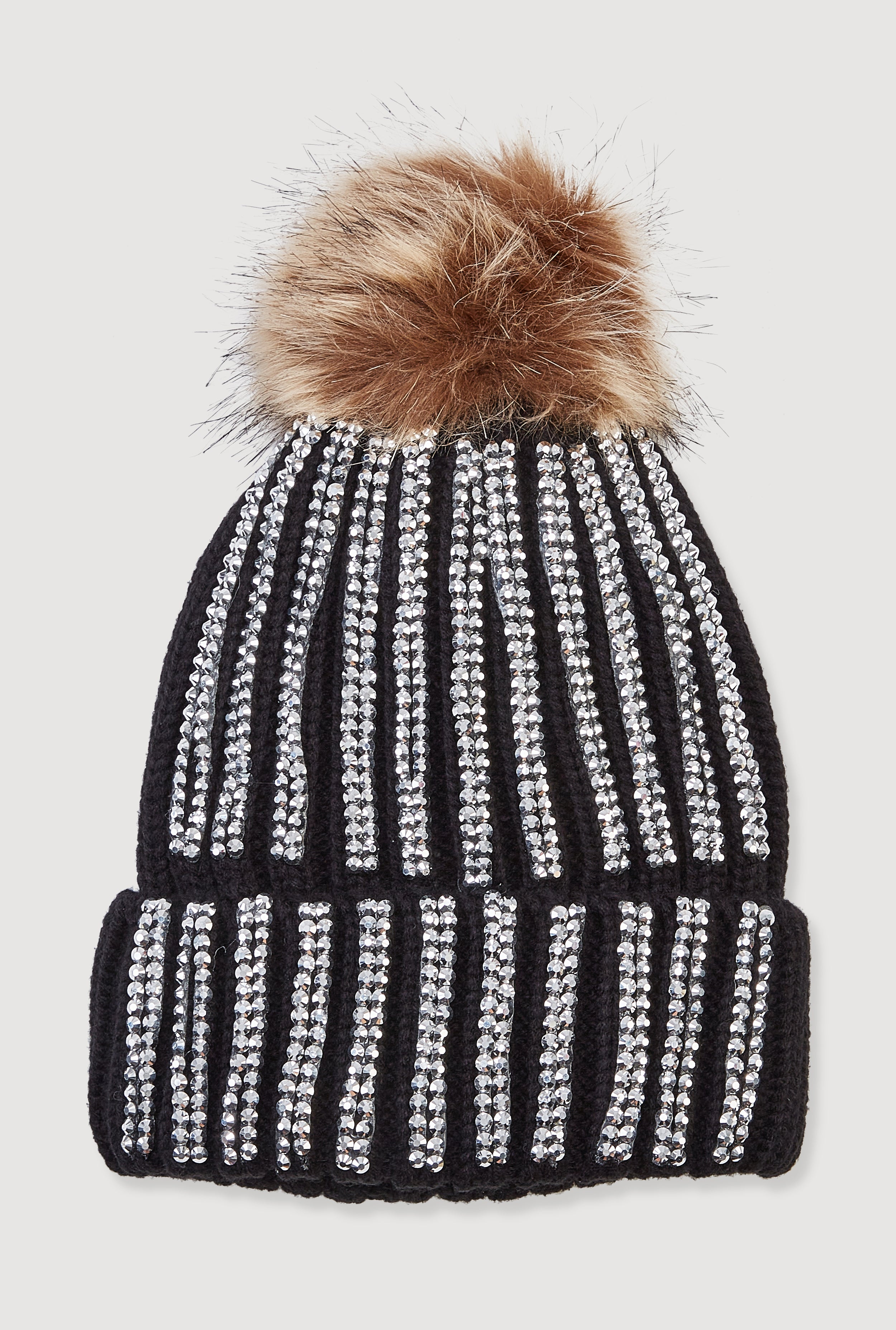 Rhinestone Detail Beanie with Long Scarf and Texting Gloves