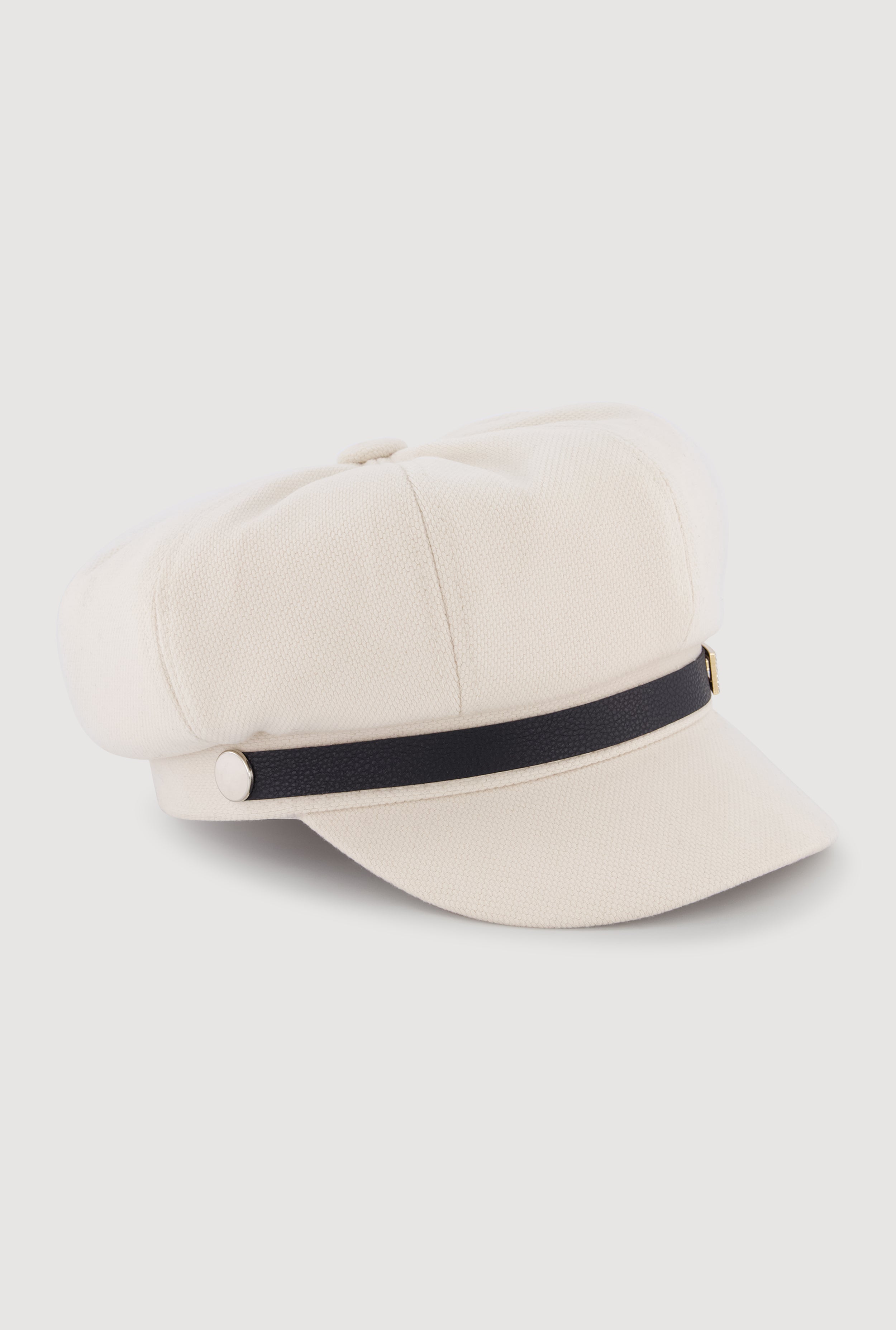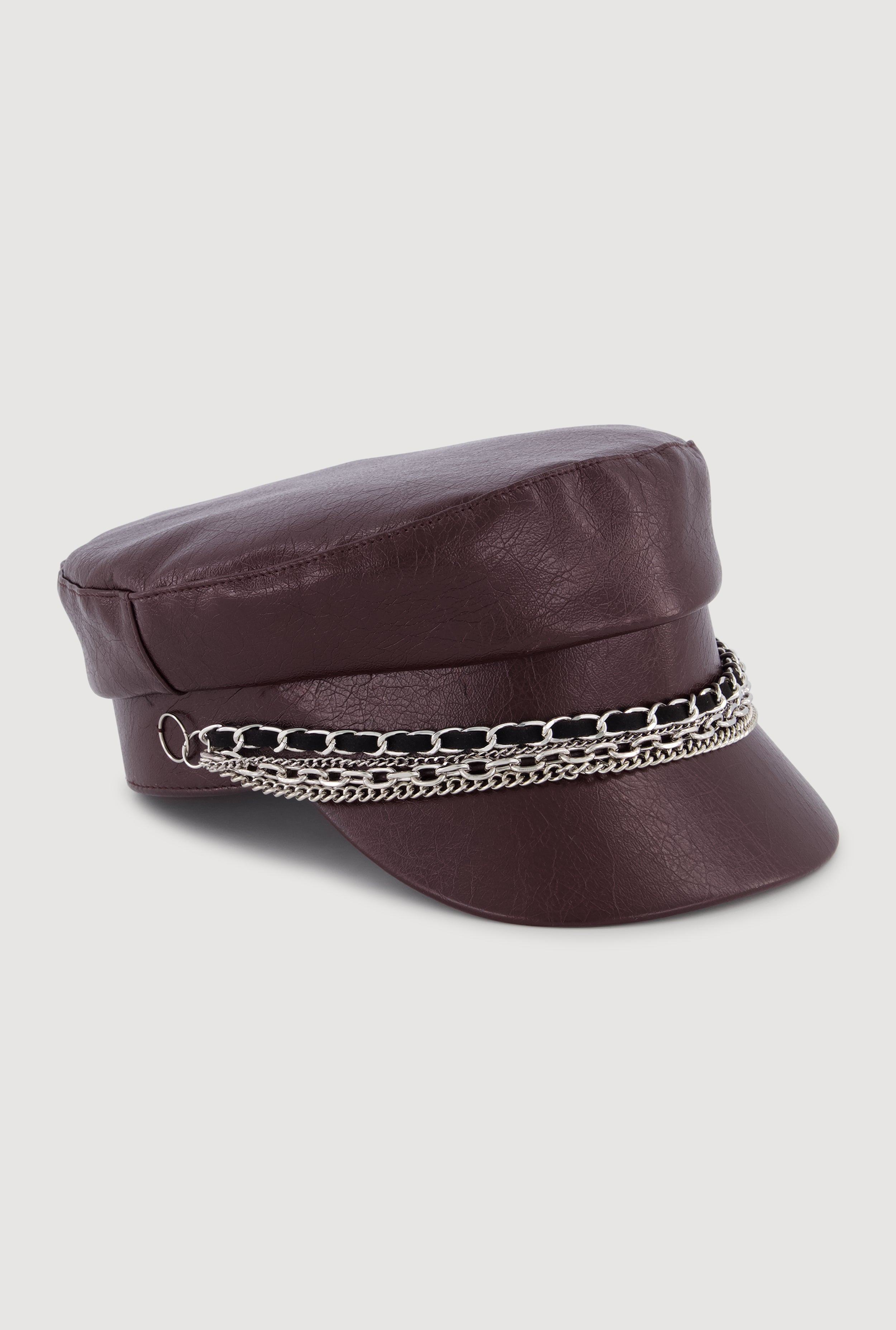 Rhinestone Pendant Faux Leather Trim Cabbie Hat