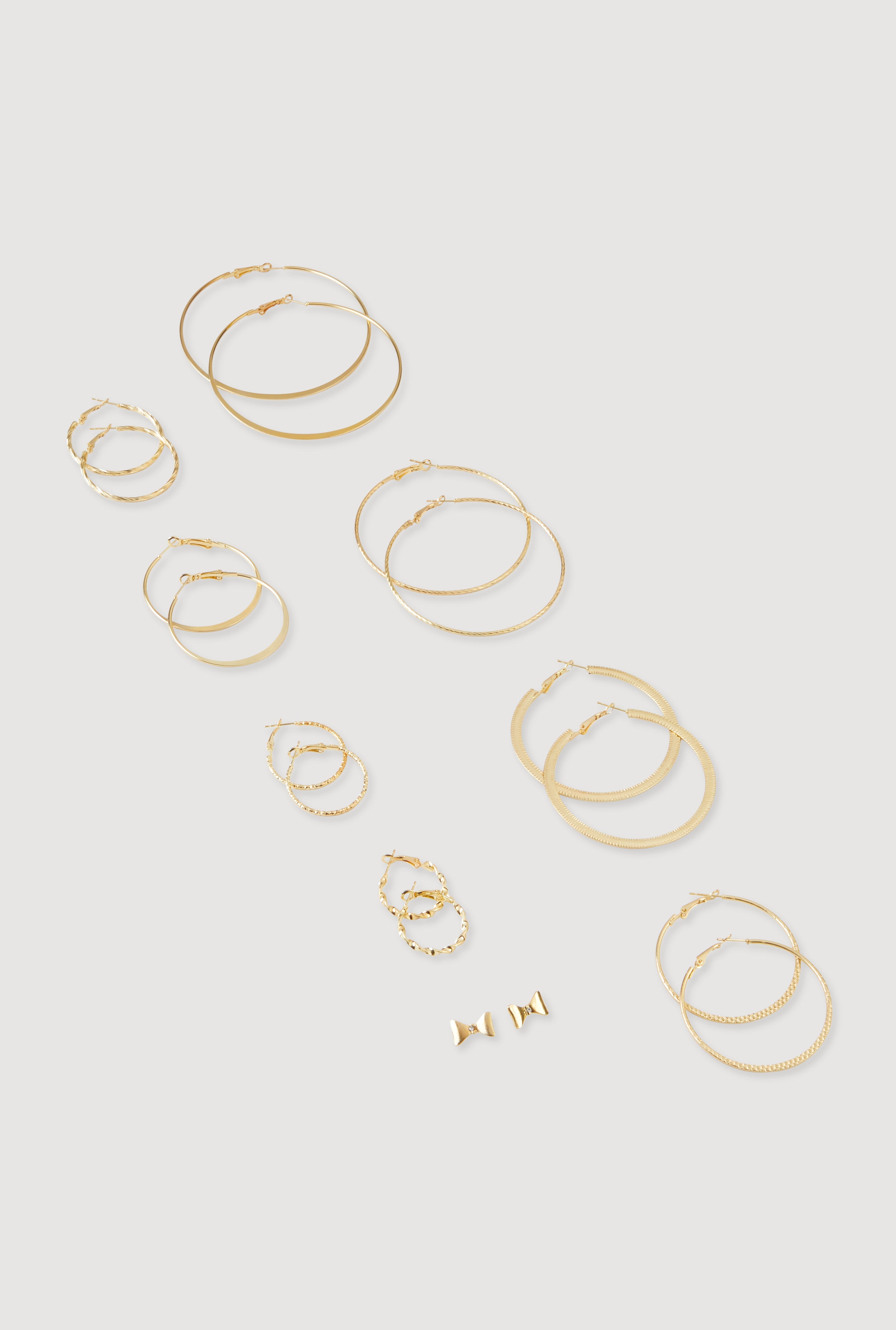 Assorted Hoop and Bow Tie Stud Earrings Set of 9