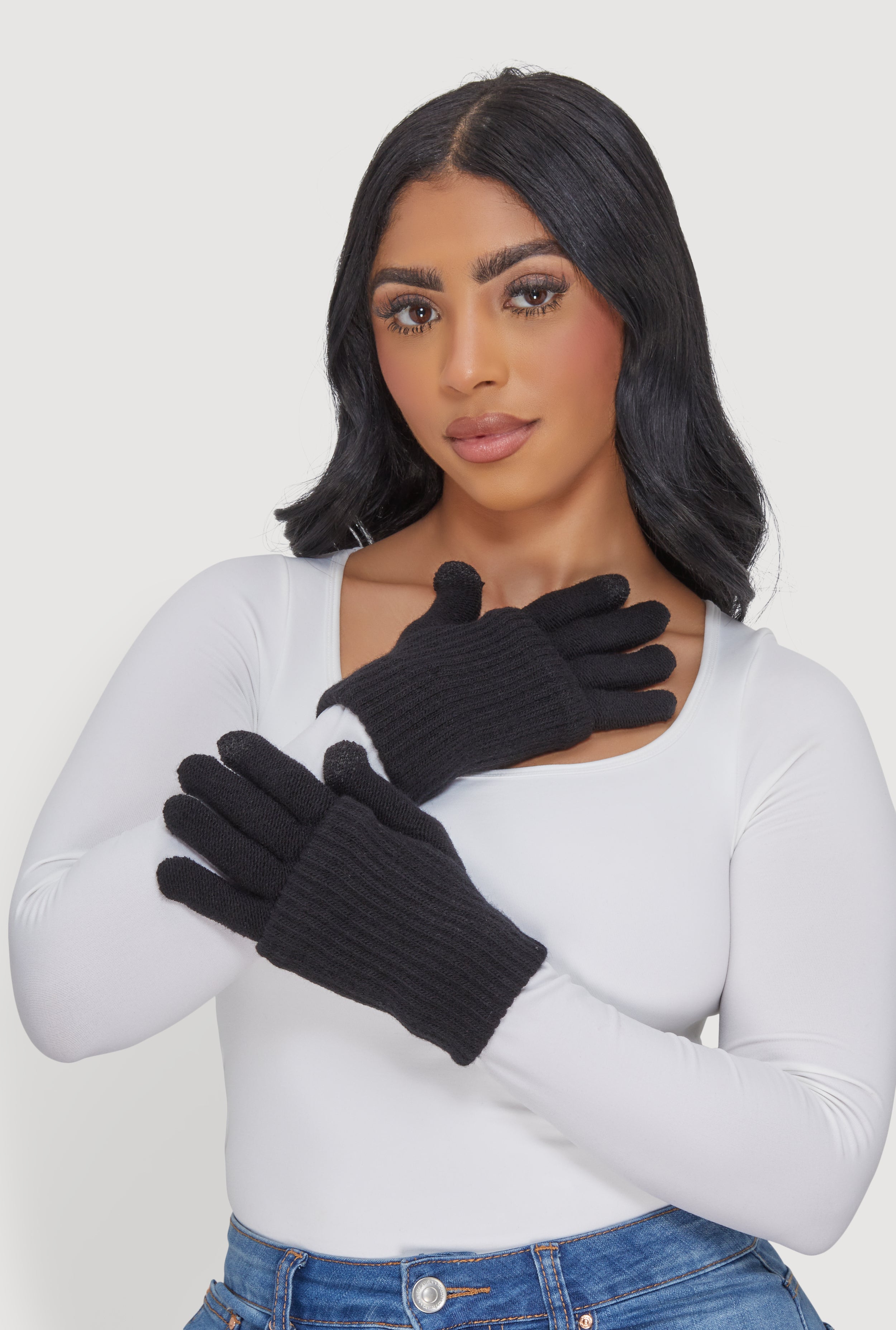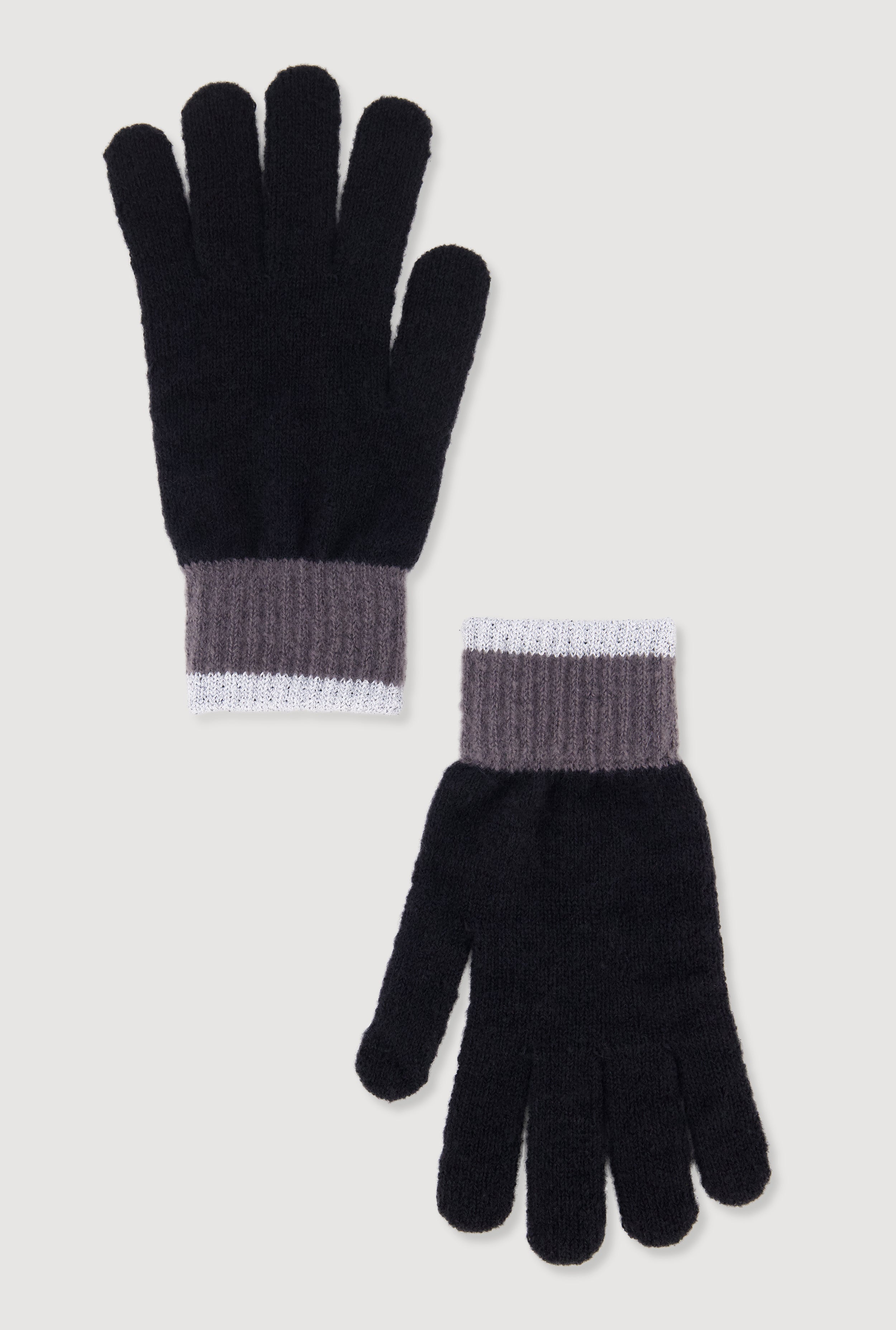 Color Blocked Lurex Trim Brushed Knit Gloves