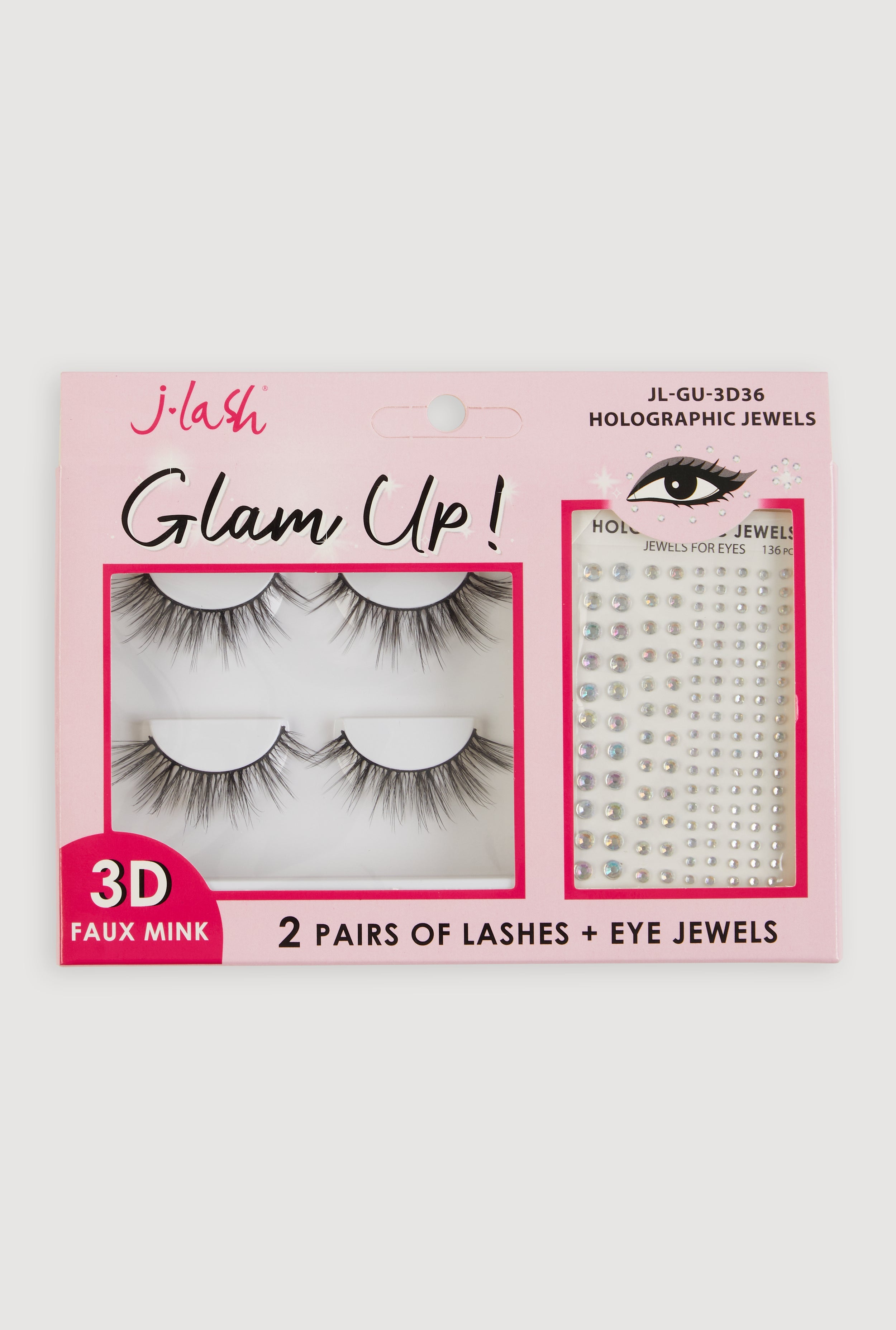 Elegant False Eyelashes with Holographic Jewels for Glam Makeup
