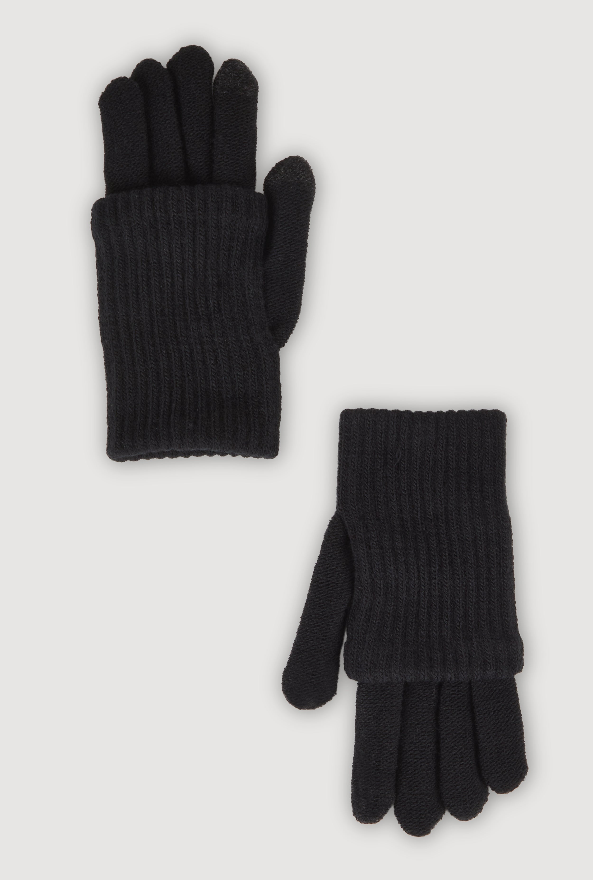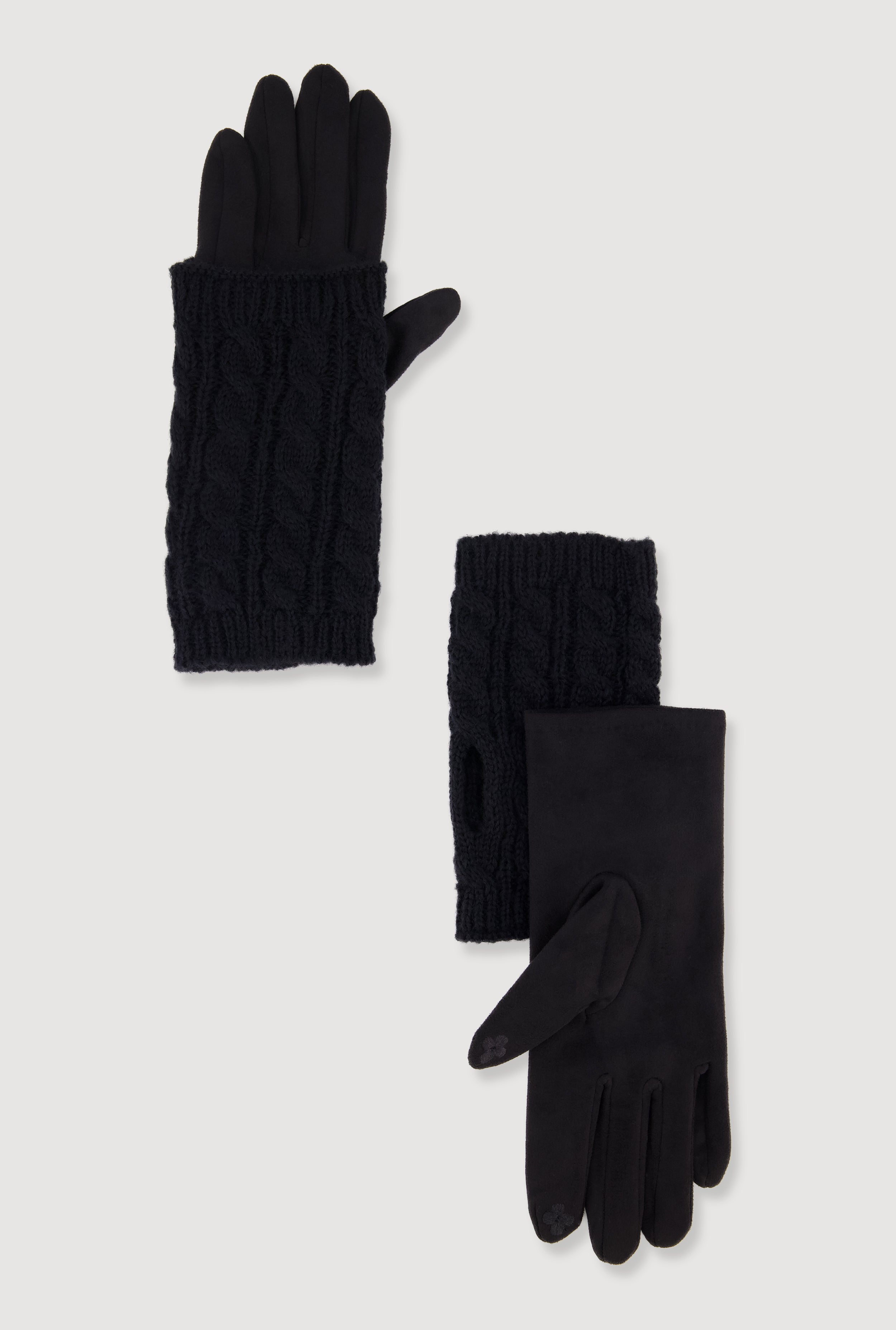 Faux Suede Texting Gloves with Cable Knit Hand Warmers