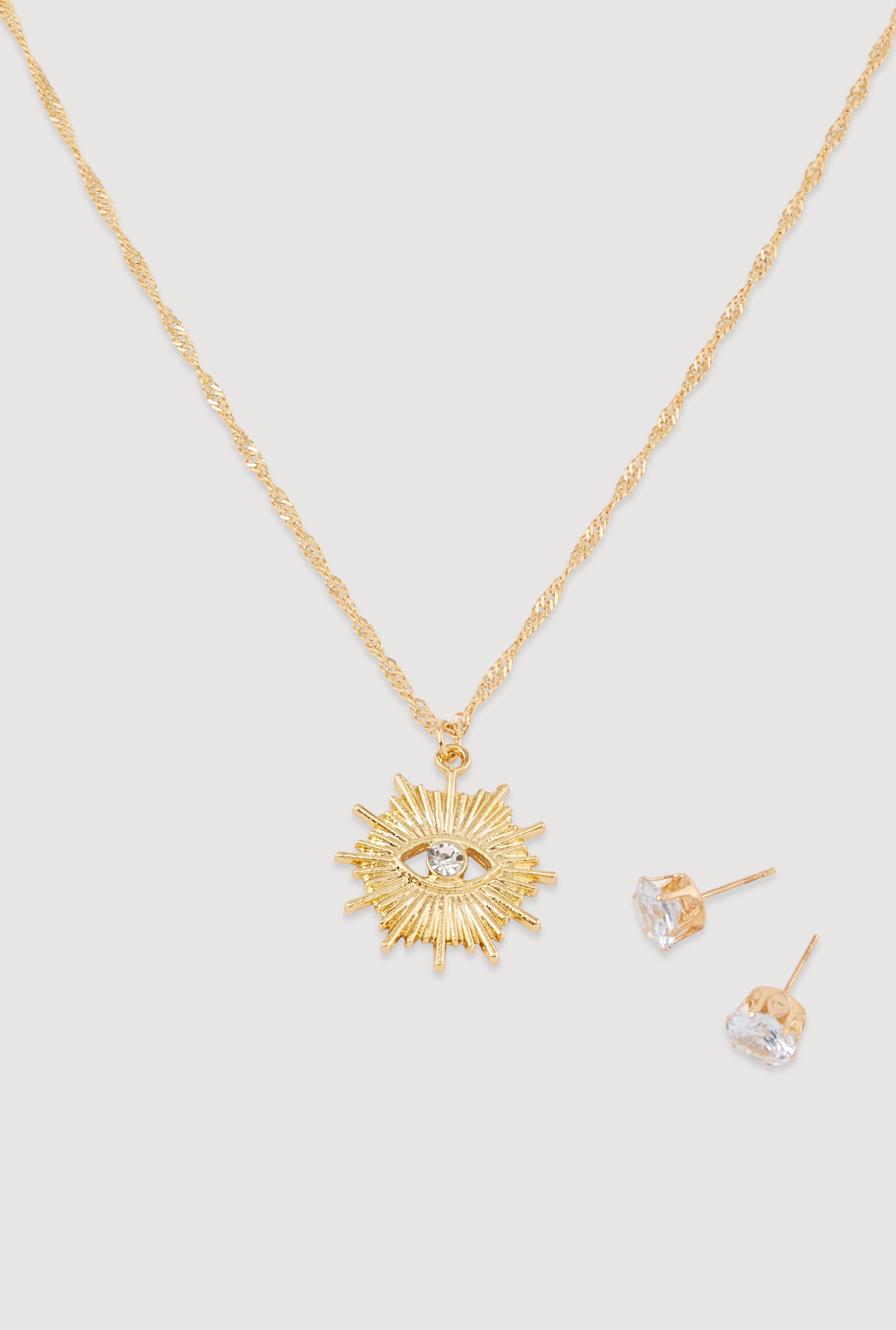 Cubic Zirconia Charm Necklace and Stud Earrings