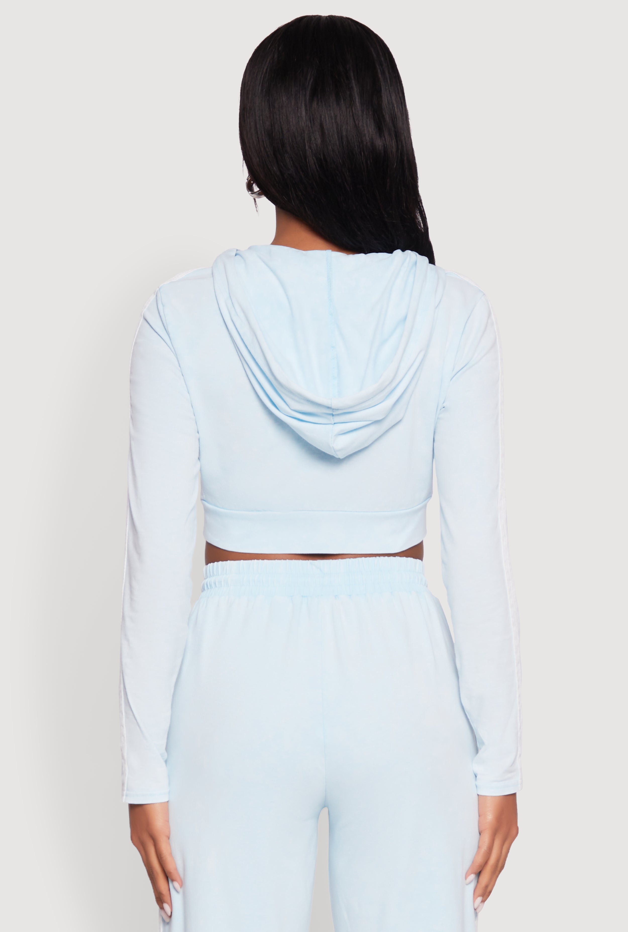 Daisy Mineral Wash Zip Front Cropped Hoodie