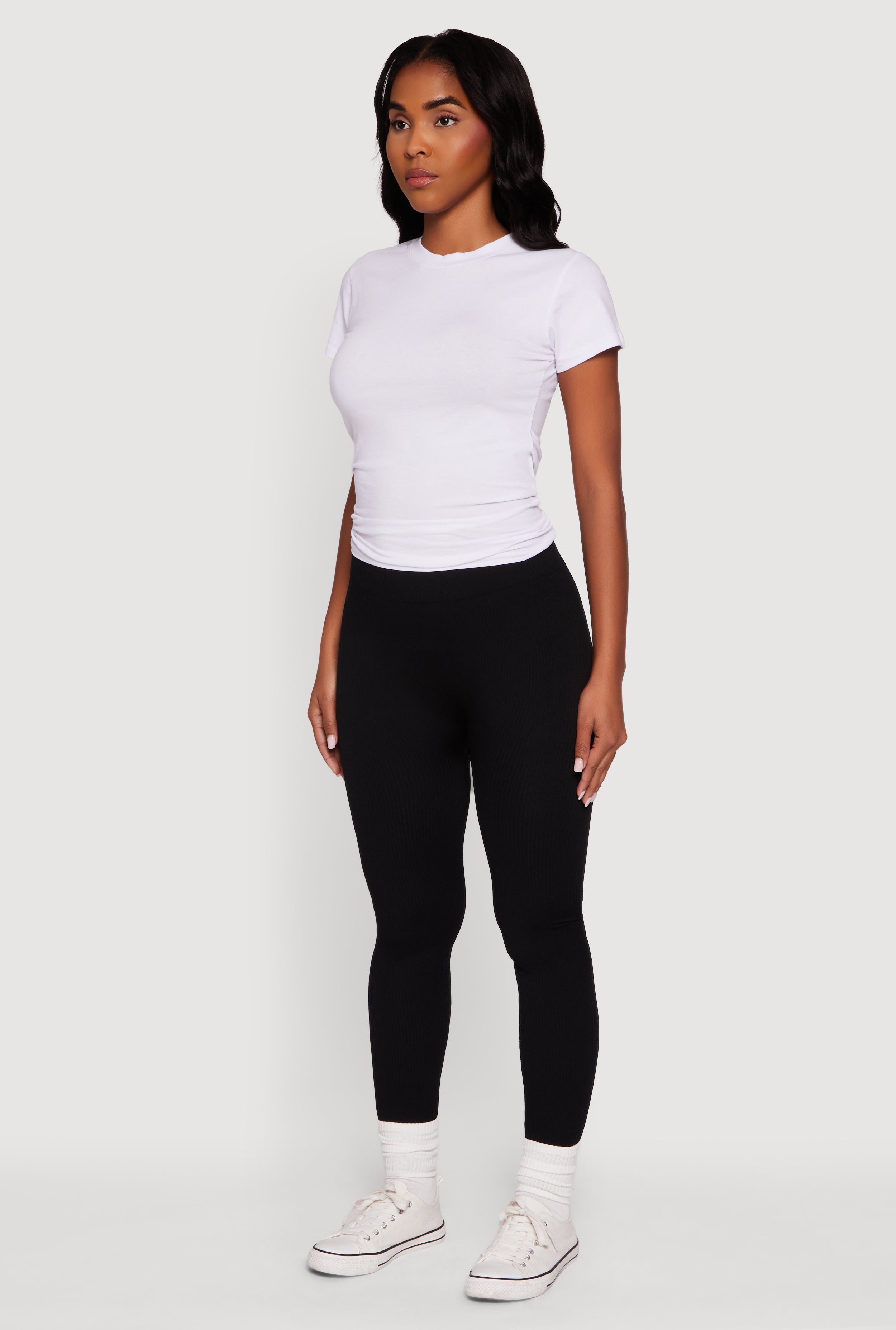 Step up your cozy game with these Fleece Lined Ribbed Knit Basic Mid Rise Leggings. Perfect for chilly days when you want to stay snug without sacrificing style, these leggings hug your curves with a sleek skinny fit and a comfy mid-rise. The ribbed knit texture adds a subtle edge, making them your go-to for casual hangouts or athleisure vibes. Slip into warmth and effortless cool all day long.