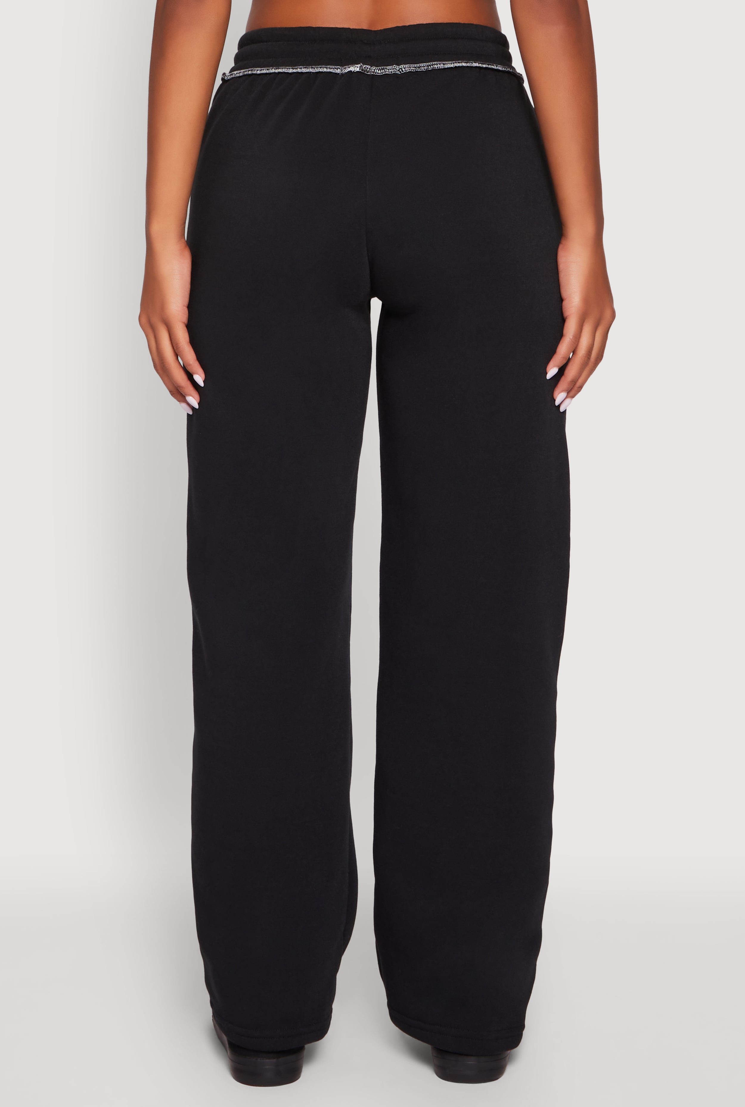 Slip into ultimate comfort with these Mid Rise Fleece Straight Leg Sweatpants that effortlessly blend cozy vibes and cool style. Perfect for lounging at home, running errands, or casual hangouts, these sweatpants feature a relaxed fit and a flattering mid rise that moves with you. The straight-leg cut and soft fleece fabric keep you comfy without sacrificing style, while the drawstring waist lets you customize your fit. Add a touch of laid-back flair to your everyday wardrobe and embrace the chill with these must-have sweatpants.