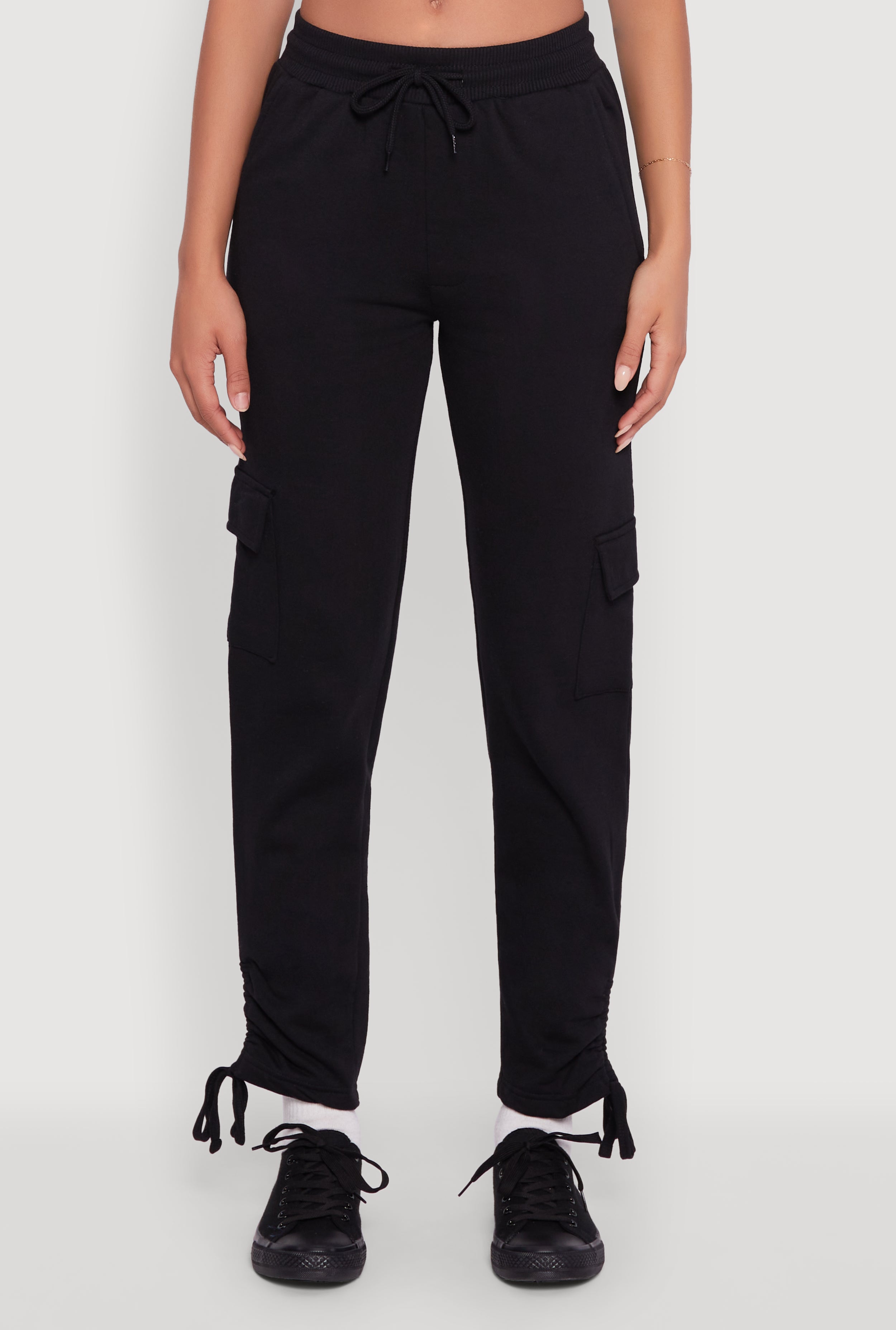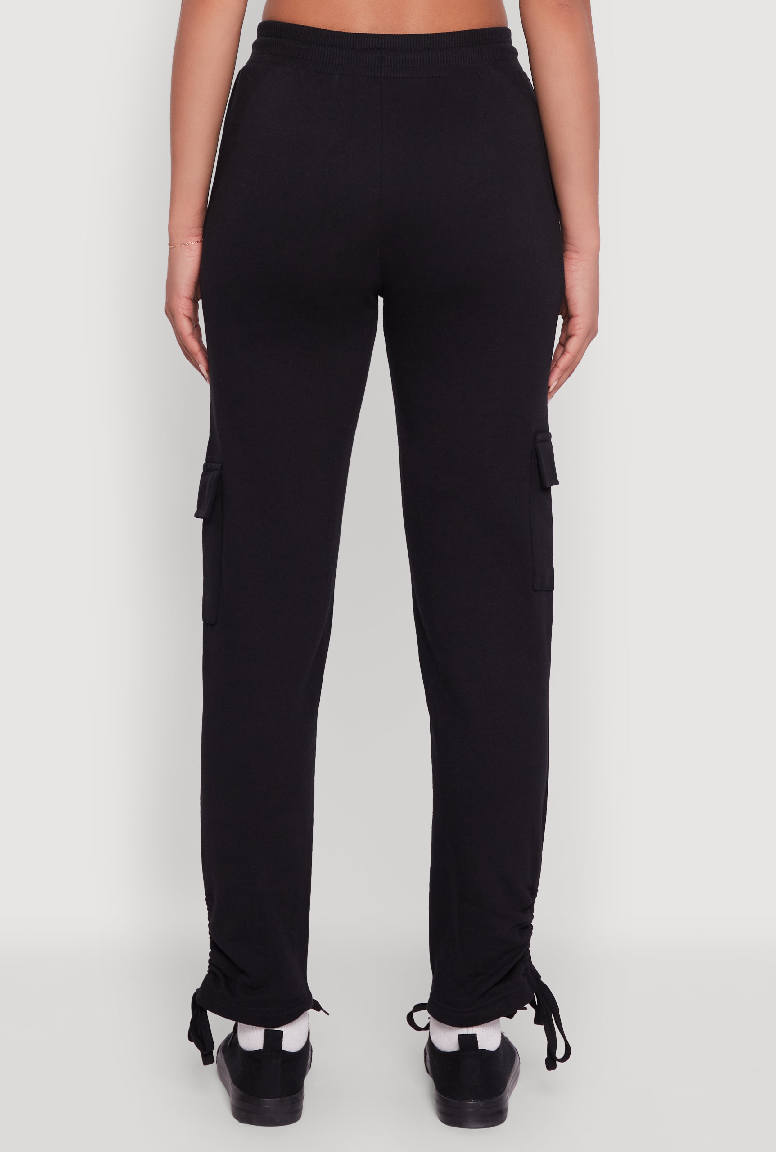 Upgrade your chill game with these Ruched Side Tie Cargo Sweatpants. Designed for those who love comfort without sacrificing style, these sweatpants feature a flattering mid-rise and a sleek straight leg fit that hugs just right. The ruching and side tie details add a playful twist, while the cargo pockets bring a cool, functional edge. Made from cozy fleece, they are perfect for lounging, running errands, or casual hangouts. Get ready to own your athleisure look effortlessly.