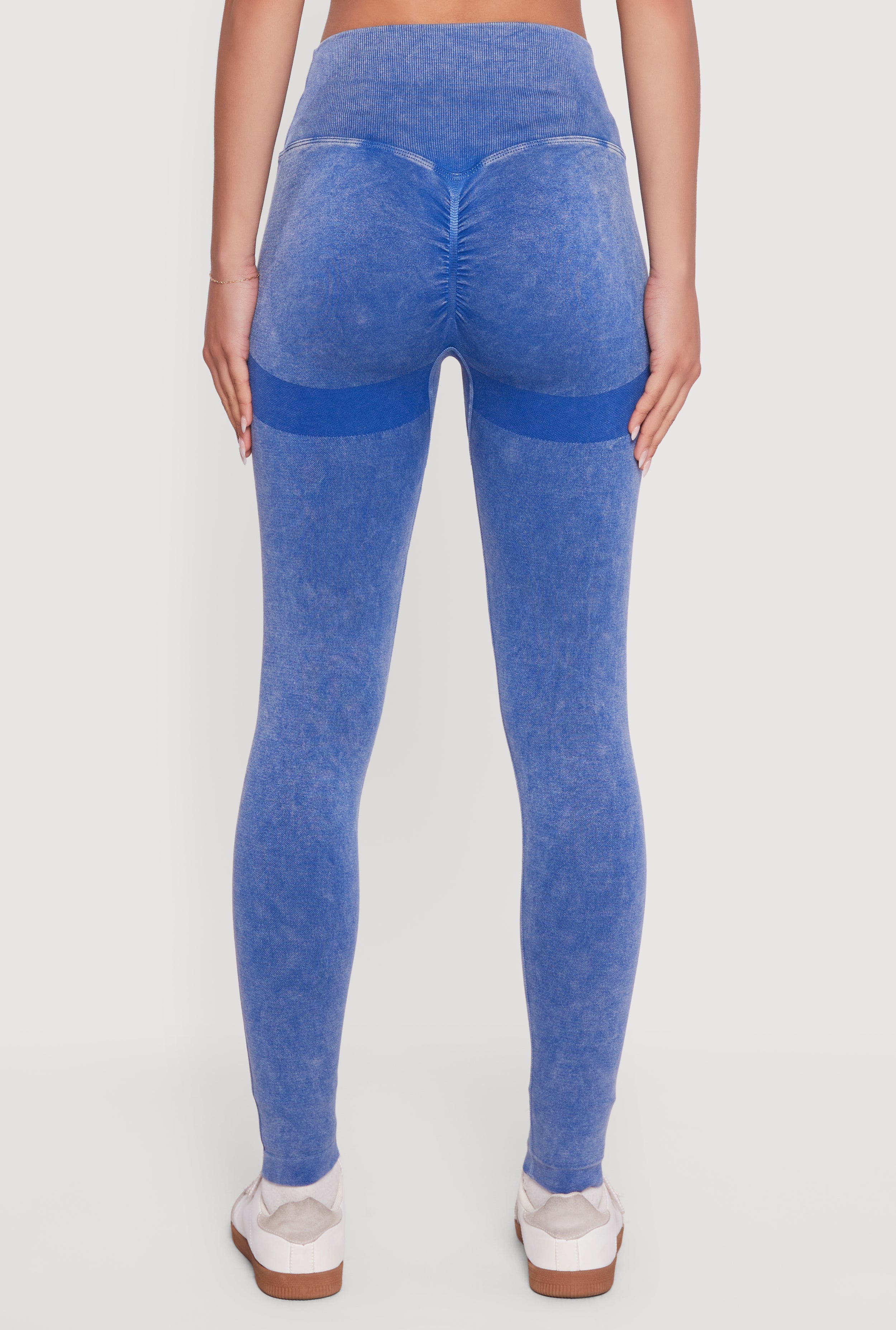 Step up your athleisure game with these Seamless Acid Wash V-Waist Leggings. Designed to hug your curves with a flattering mid-rise and skinny fit, they combine style and comfort effortlessly. The unique acid wash pattern adds a trendy edge, while the V-waist, ribbed knit detail, and scrunch details enhance your silhouette for a confident look, whether you're hitting the gym or running errands.