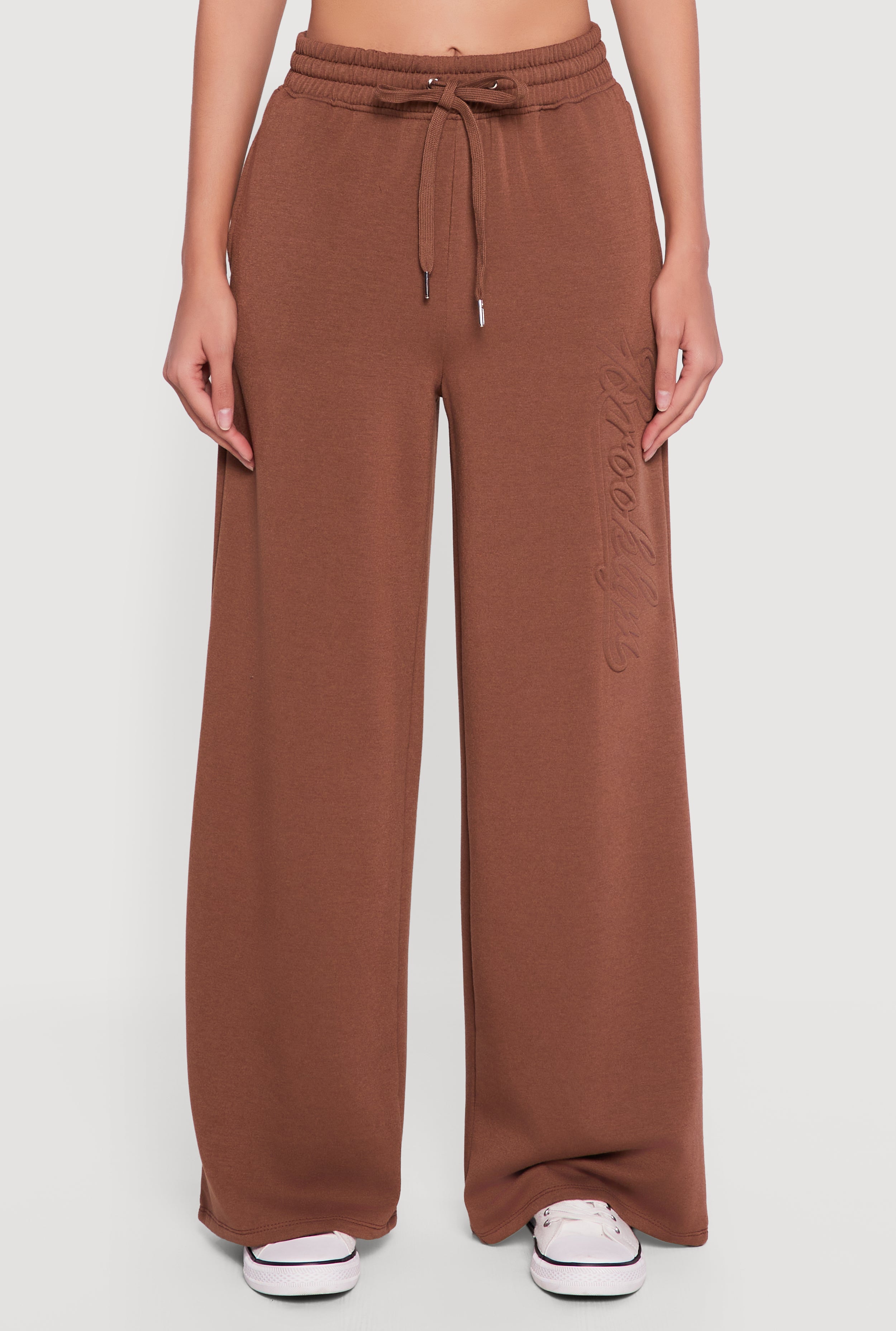 Step up your casual game with the Brooklyn Embosses Graphic High Waisted Sweatpants. These sweatpants bring the perfect blend of comfort and street style, featuring a bold Brooklyn graphic that makes a statement wherever you go. The high-waisted fit flatters your silhouette while the wide-leg cut keeps things relaxed and effortlessly cool. Made from cozy fleece, they are perfect for lounging or running errands with an easy drawstring waist for the perfect fit every time.