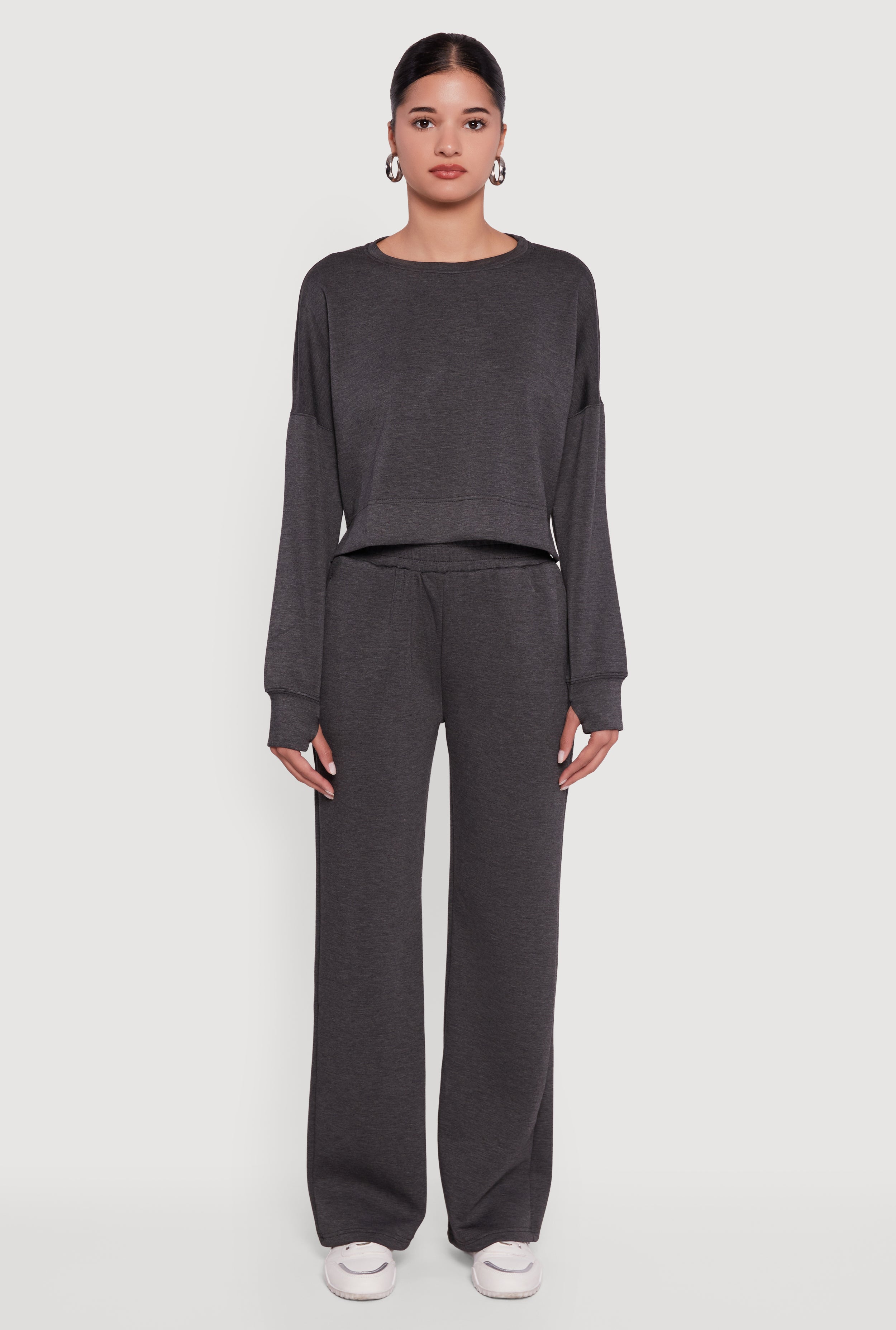 Step up your casual game with this Crew Neck Pullover Crop Top featuring thumb holes for that extra cozy vibe. Designed with a relaxed fit and drop shoulders, it brings effortless athleisure style to your everyday look. Side slits add a subtle edge while keeping comfort front and center. Perfect for lounging or running errands, this crop top is your new go-to for laid-back cool.