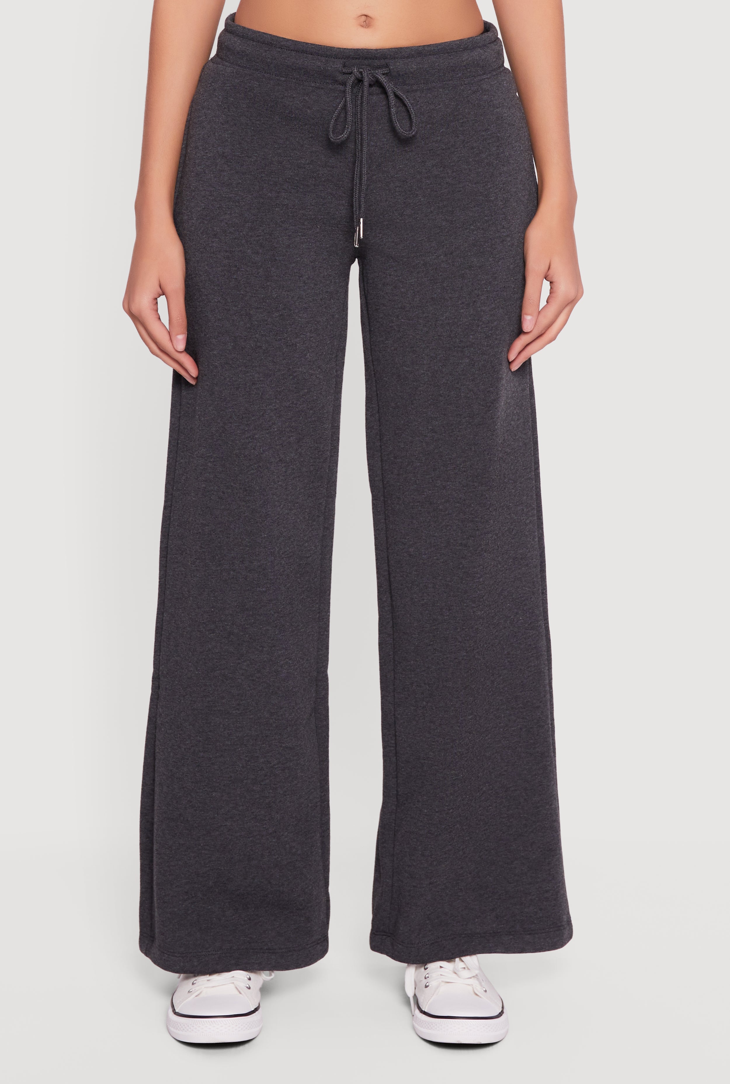 Step into effortless comfort and cool vibes with these Drawstring Waist Pull On Wide Leg Sweatpants. Perfect for chilling at home or running casual errands, these fleece sweatpants offer a relaxed fit that moves with you. The mid-rise waist with an adjustable drawstring keeps things cozy and secure, while the wide leg silhouette adds a trendy twist to your everyday lounge look. Whether you're pairing them with a crop top or oversized hoodie, these sweatpants are your new go-to for laid back style and all-day ease.