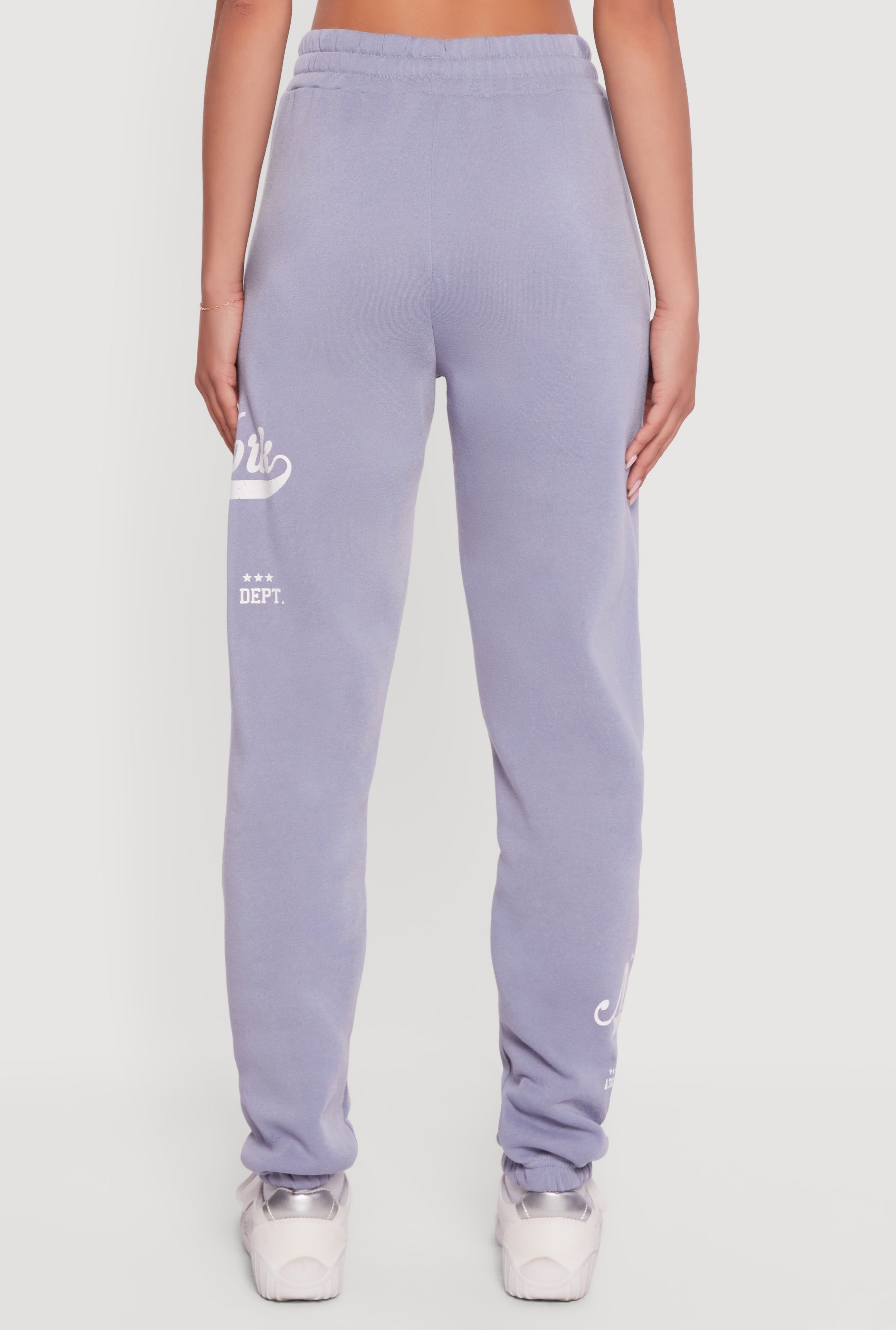 Step up your casual game with the New York 75 Graphic Drawstring Waist Sweatpants. Designed for those who want to stay comfy without sacrificing style, these sweatpants feature a cool New York 75 graphic that adds an instant streetwear vibe. The high-waisted, slim fit with a tapered leg gives you a flattering silhouette while the drawstring waist lets you customize your comfort. Made from cozy fleece, they are perfect for lounging, running errands, or casual hangouts. Easy to pull on and built for all-day wear, these sweatpants are your new go-to for effortless athleisure looks.