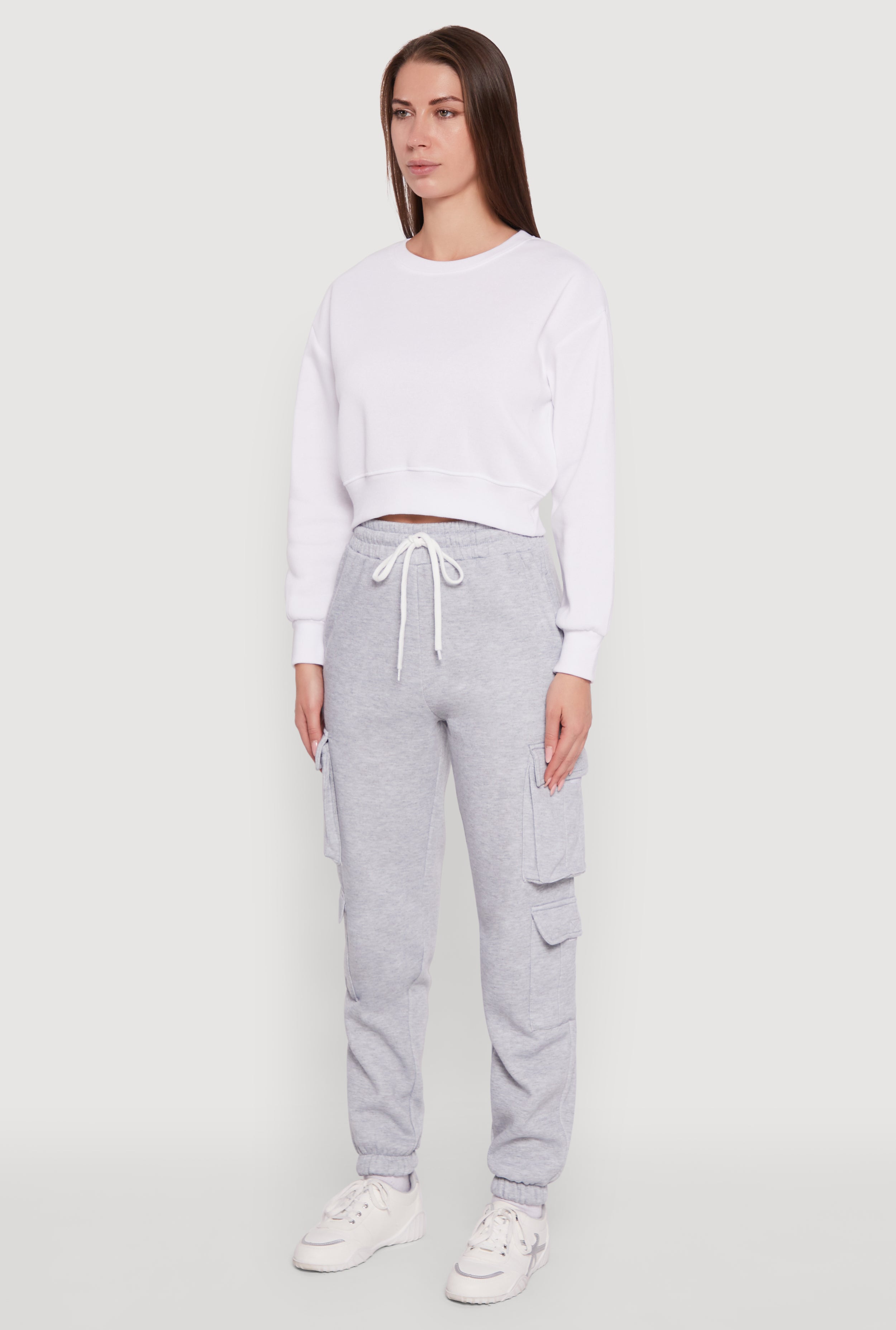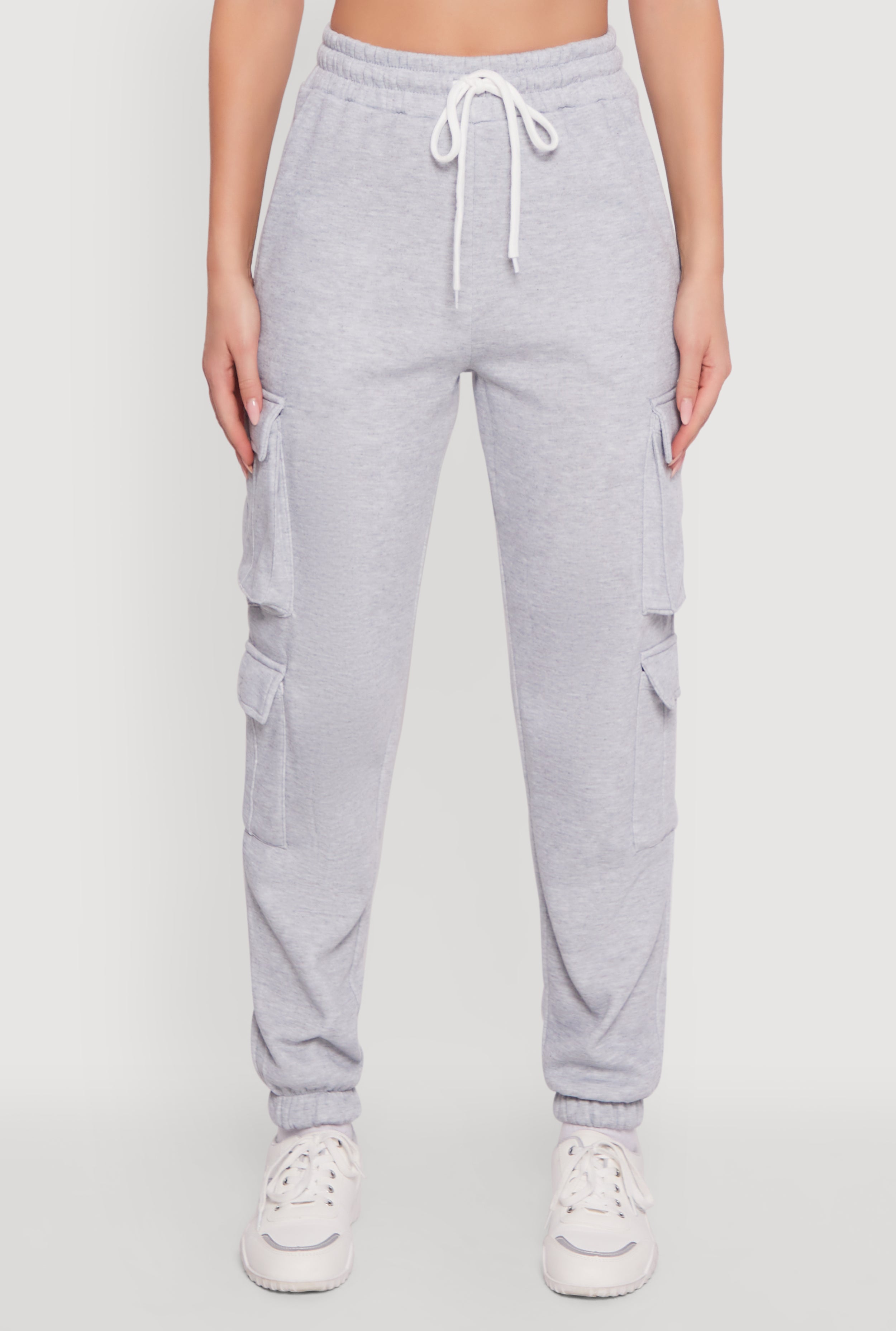 Step up your casual game with these Drawstring High Waisted Cargo Pocket Sweatpants. Perfectly cozy and effortlessly cool, they combine the comfort of fleece with trendy cargo pockets for that extra edge. Whether you're lounging at home, running errands, or meeting friends, these sweatpants keep you stylish and comfy all day long. The high waist and tapered ankle fit flatter your shape while the adjustable drawstring lets you customize your vibe. Your new go-to for chill days just arrived.