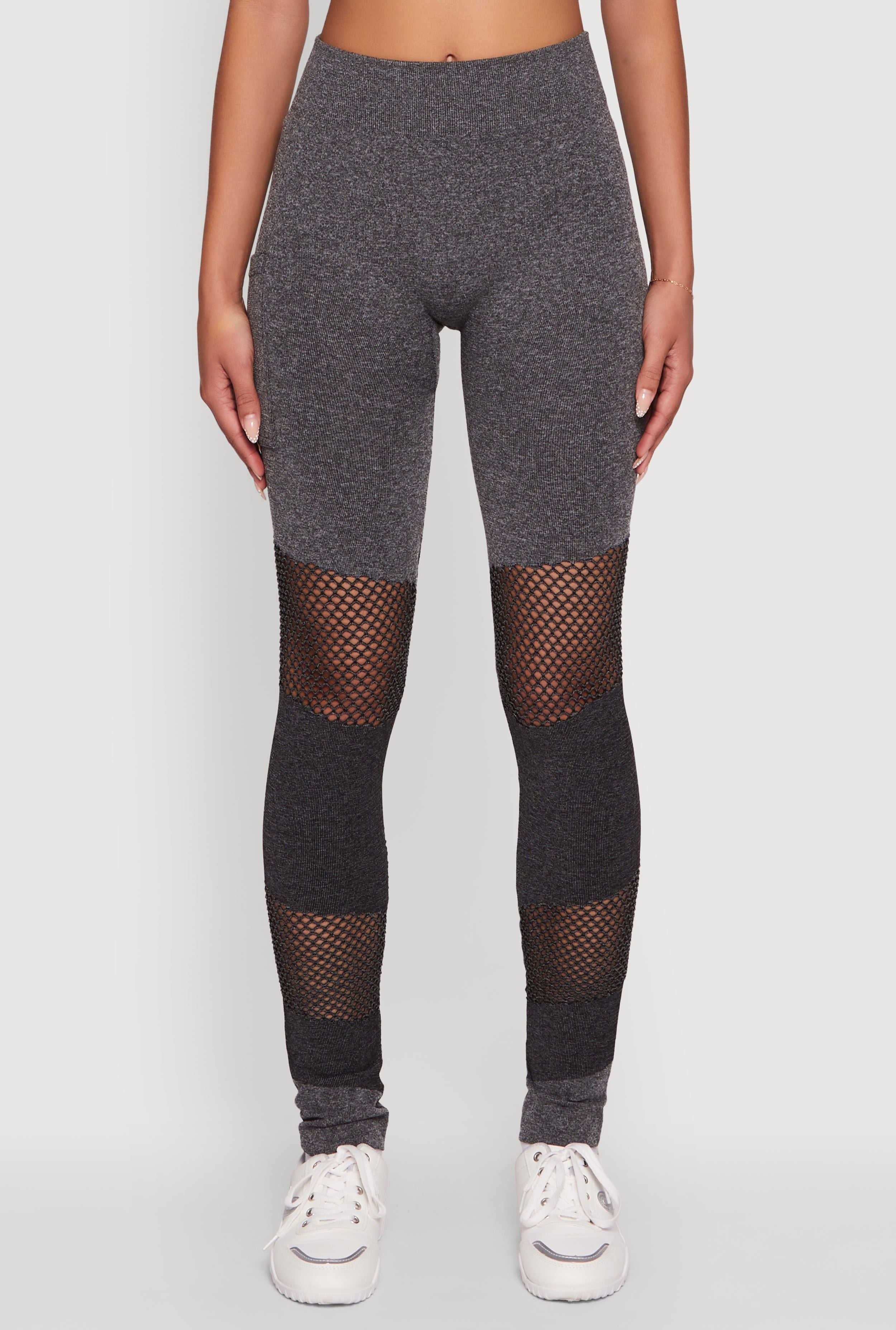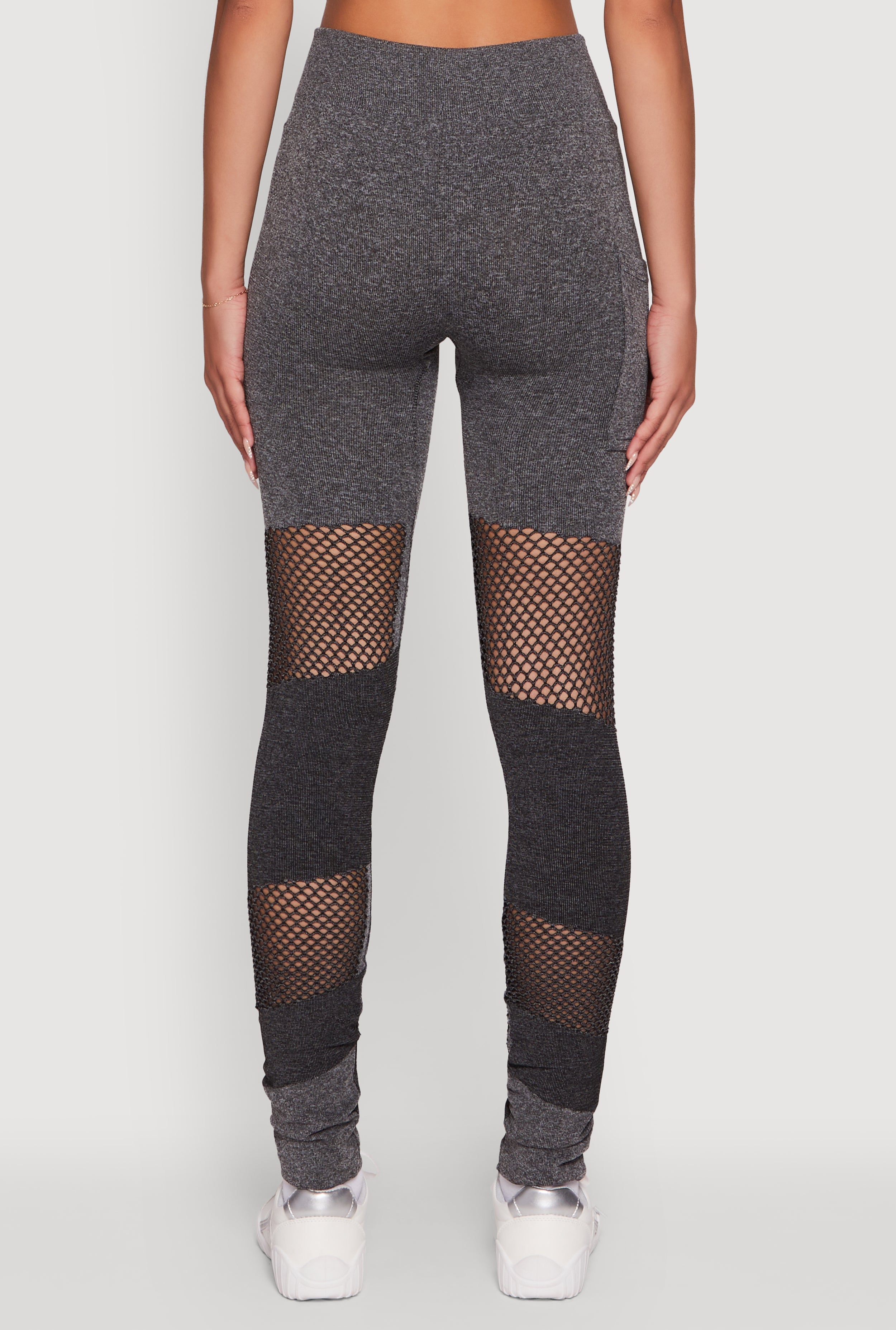 Laser Cut Color Block Leggings with Cell Phone Pocket