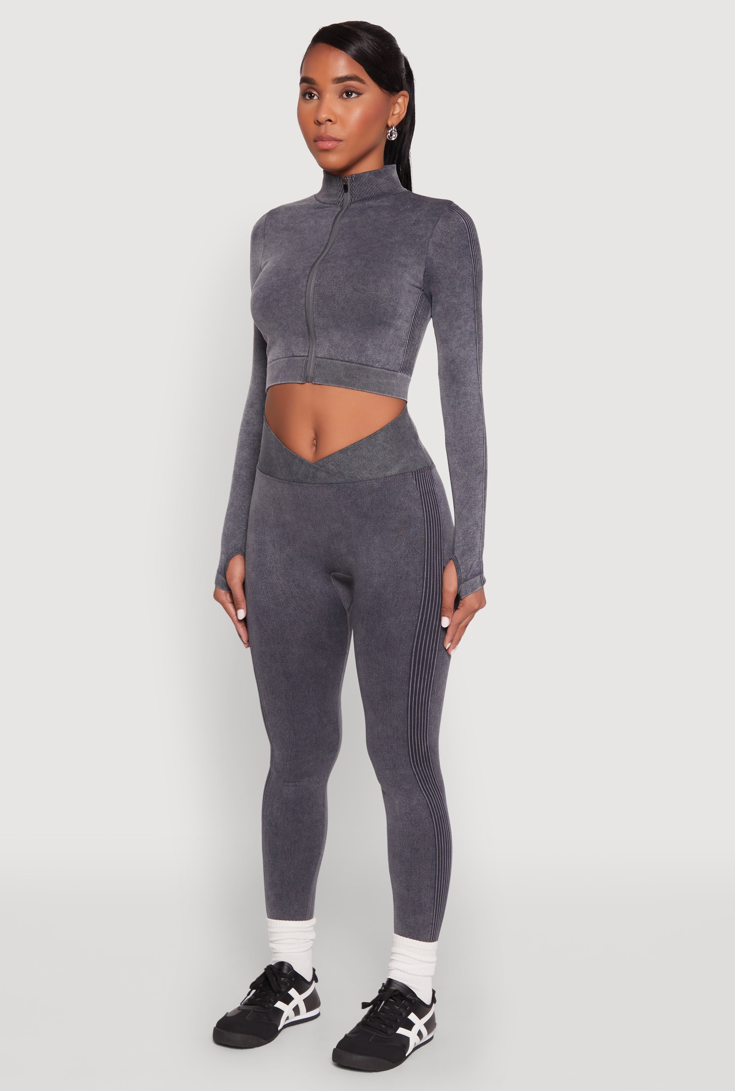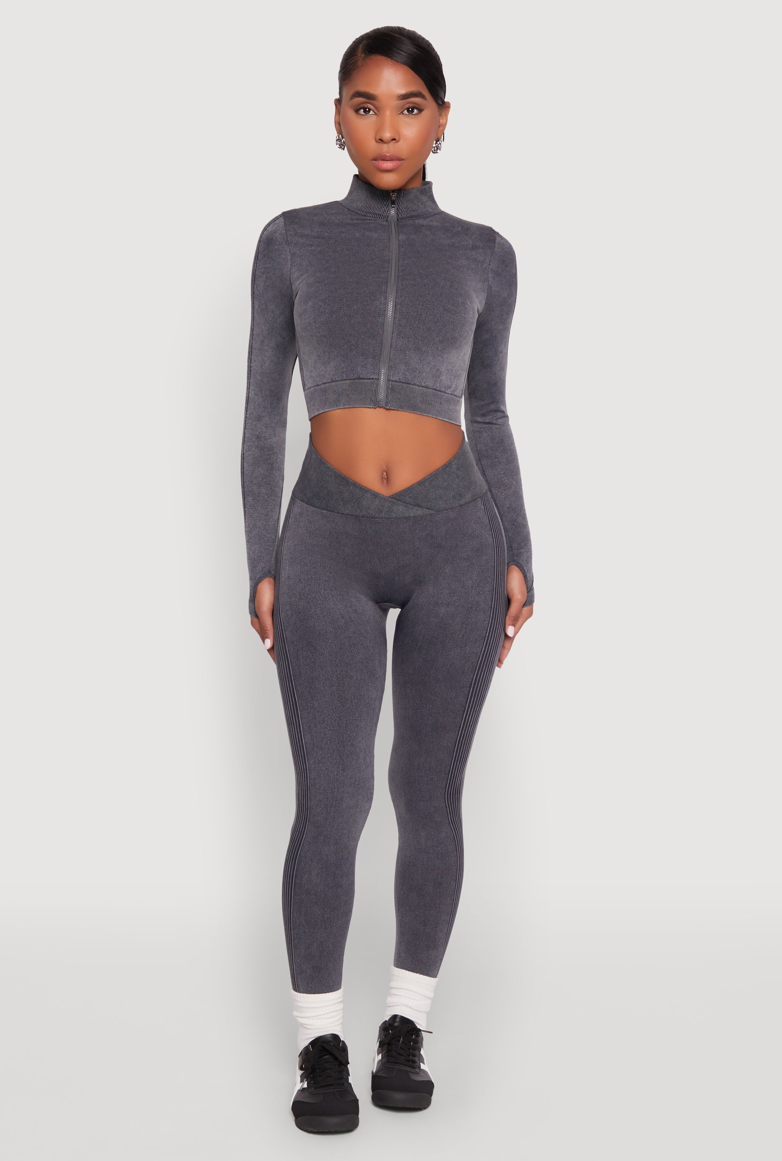 Upgrade your workout wardrobe with the Seamless Mineral Wash Crop Track Jacket. Designed for style and comfort, this jacket features a trendy mineral wash finish and a cropped hem that adds a fresh twist to your activewear collection. The long sleeves with thumb holes keep you cozy and give you that effortless cool vibe. Whether you're hitting the gym or running errands, this versatile piece is your new go-to for all-day comfort and style.