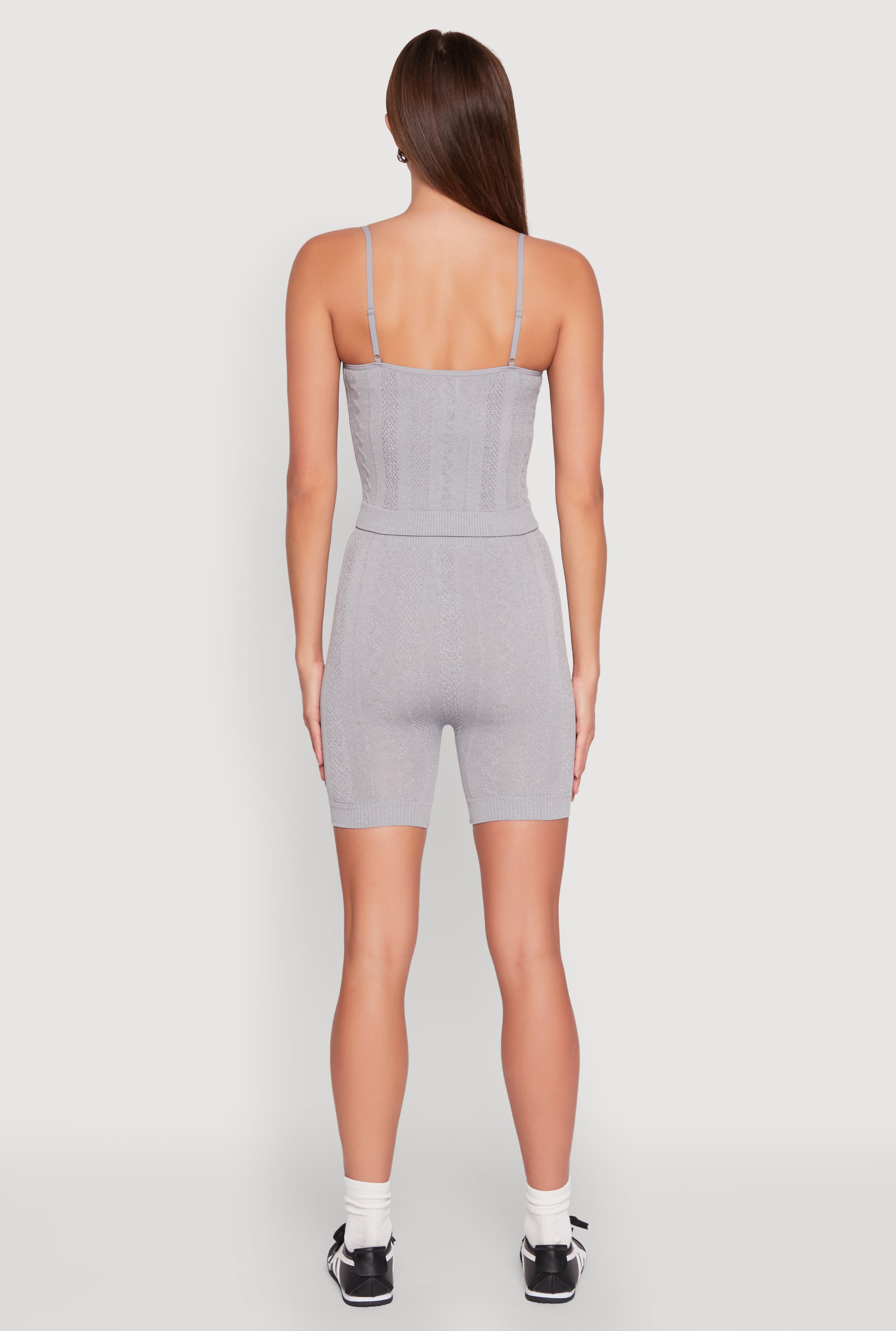 Seamless Textured Knit Cropped Cami and Bike Shorts