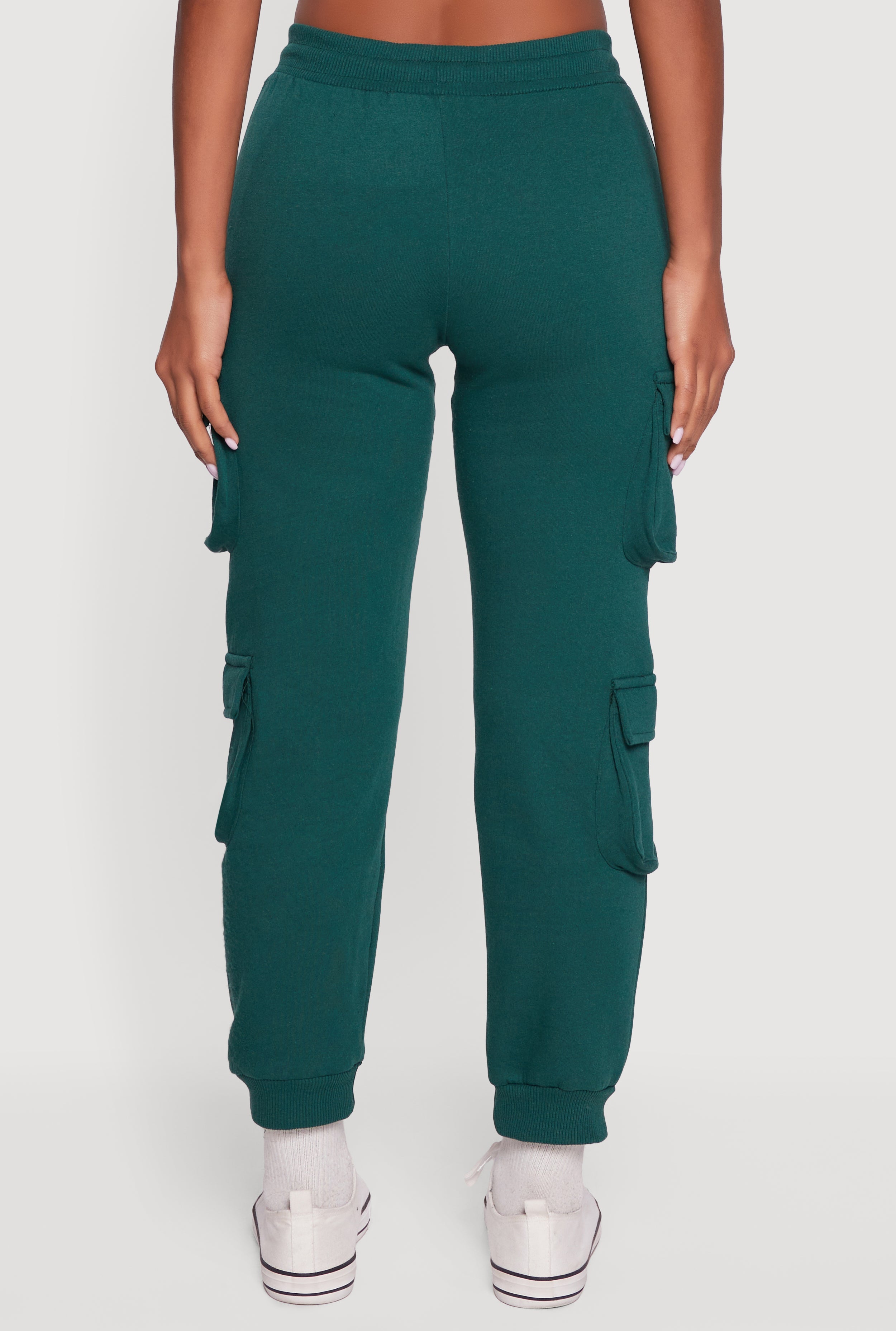 High Waisted Fleece Multi Cargo Pocket Joggers