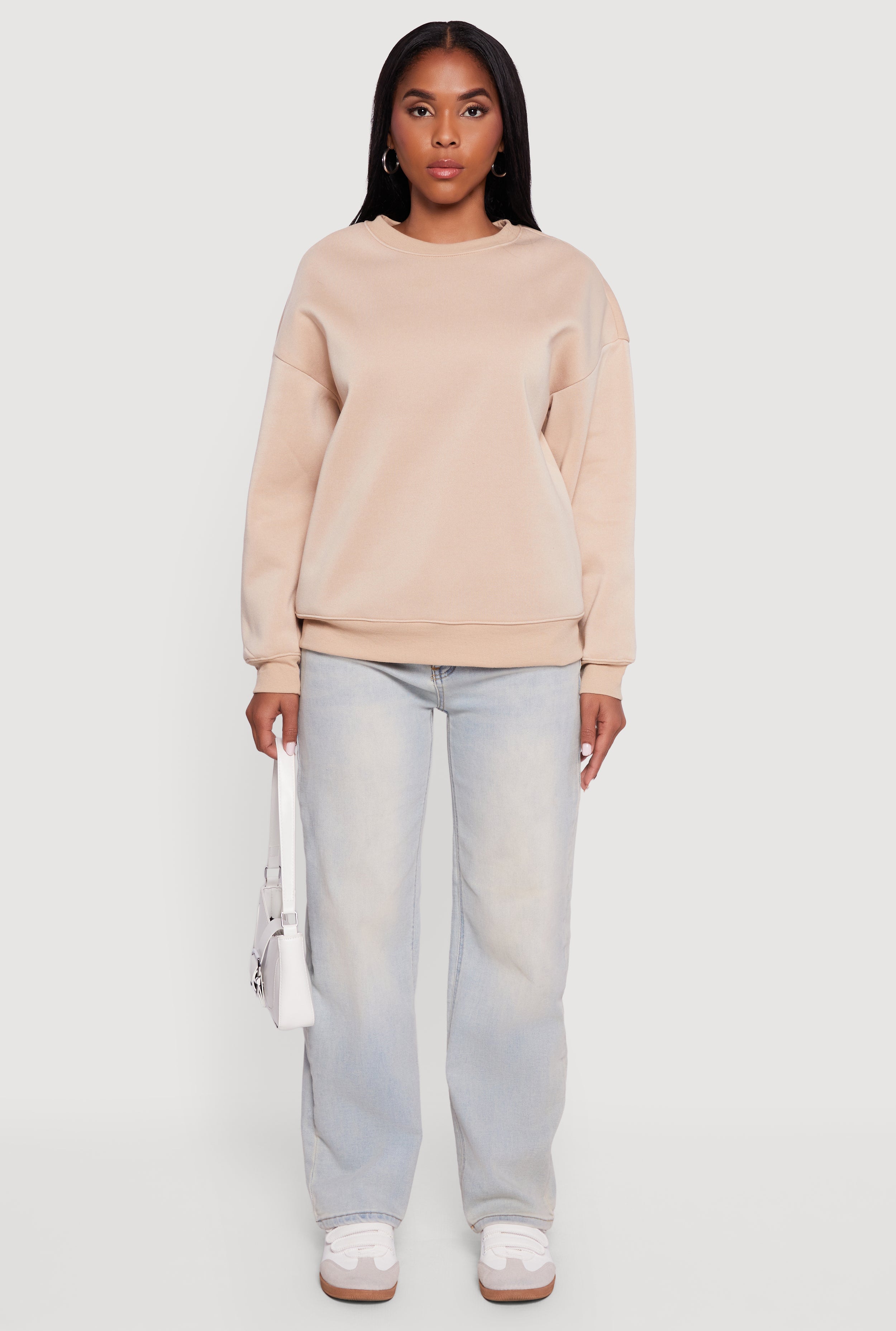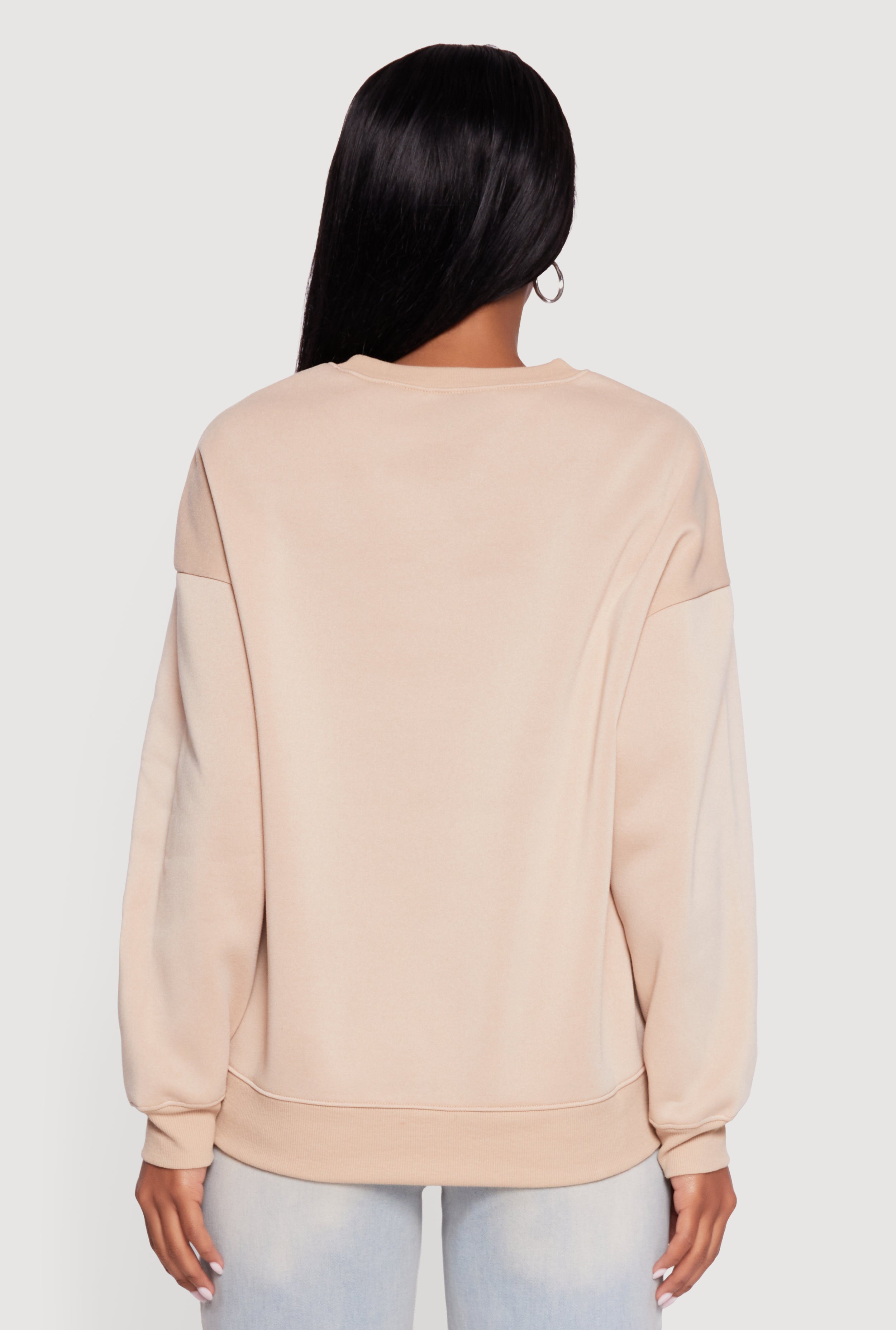 Cozy up in the Fleece Lined Drop Shoulder Crew Neck Sweatshirt, your new go-to for effortless style and warmth. Designed with a classic fit and drop shoulders, this sweatshirt blends laid-back vibes with a touch of trendy blouson sleeves. The soft fleece lining keeps you snug during chilly days while the solid crew neck design makes it easy to pair with your favorite jeans or leggings. Whether you're lounging at home or stepping out for a casual hangout, this sweatshirt has got you covered in comfort and cool.