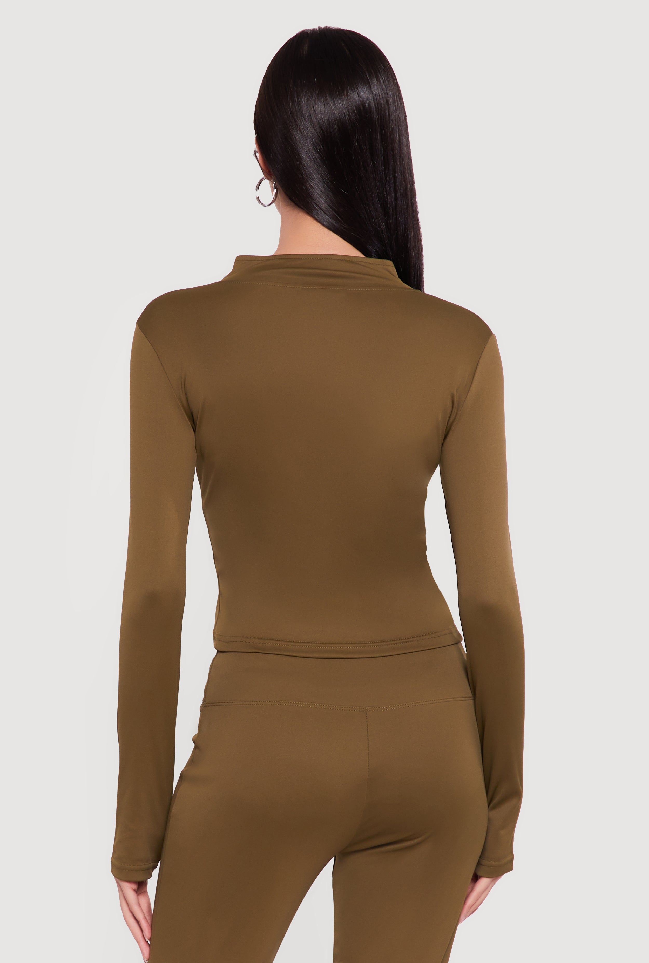 - Mock neck adds a modern, streamlined vibe