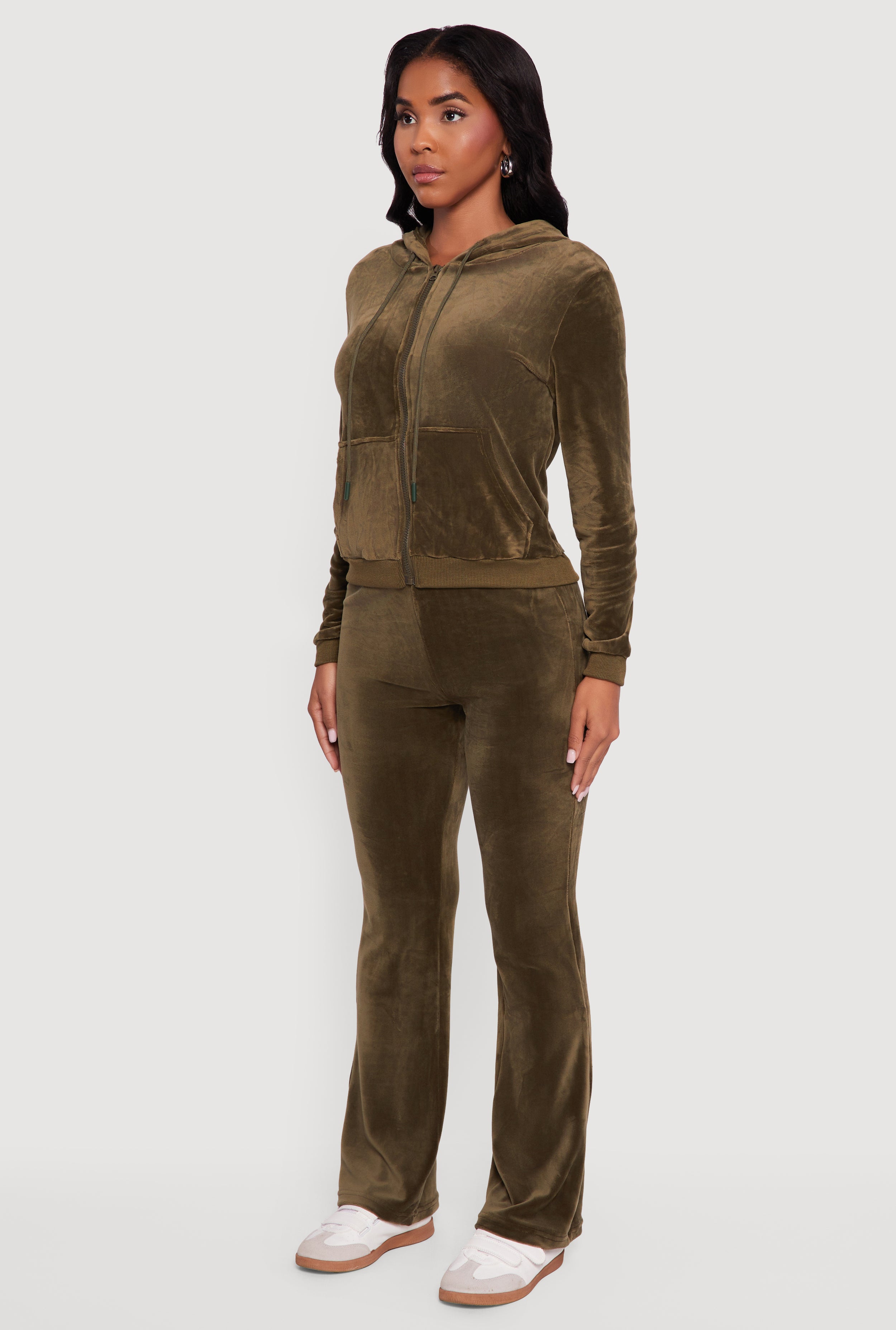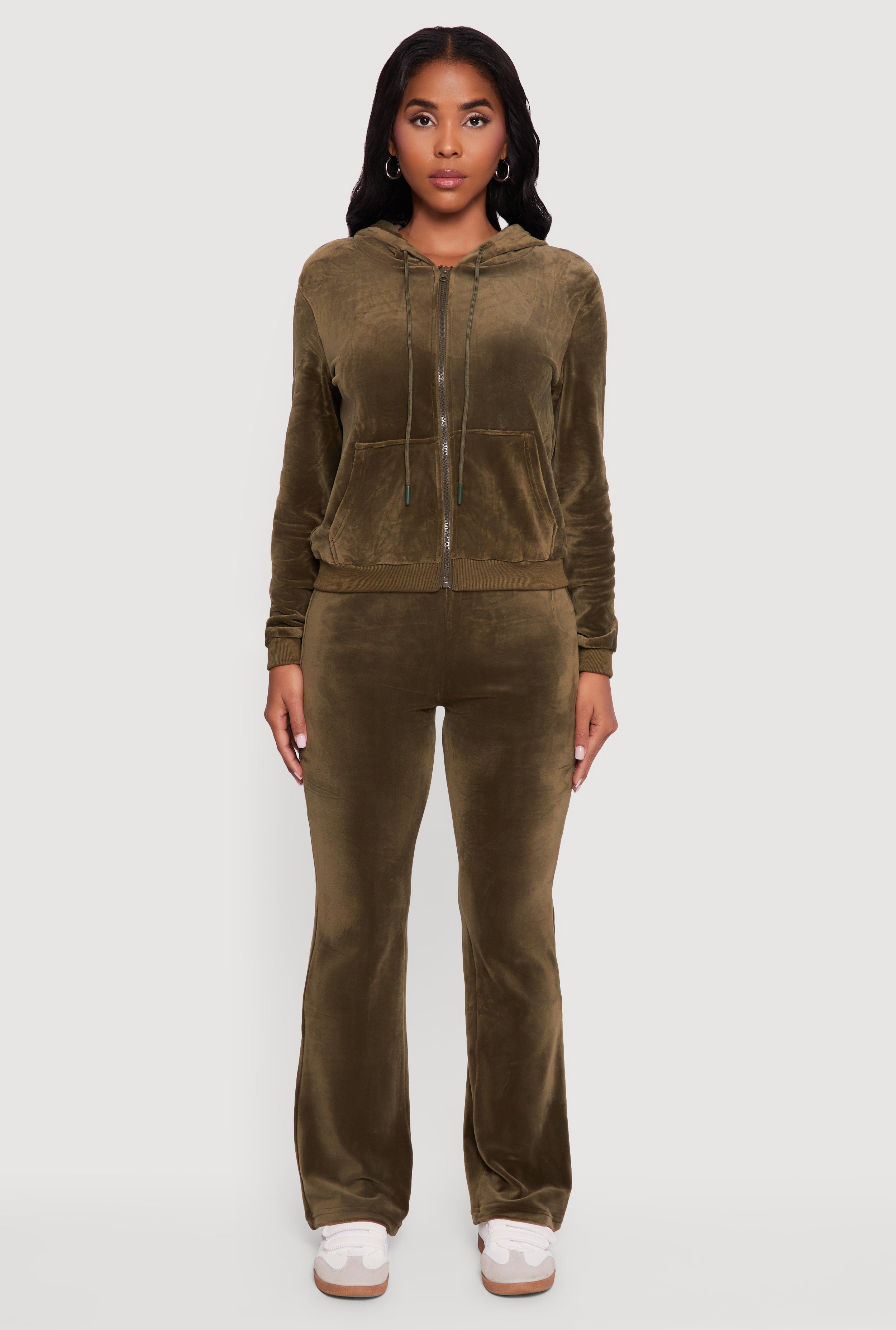 Velour Zip Front Drawstring Hoodie