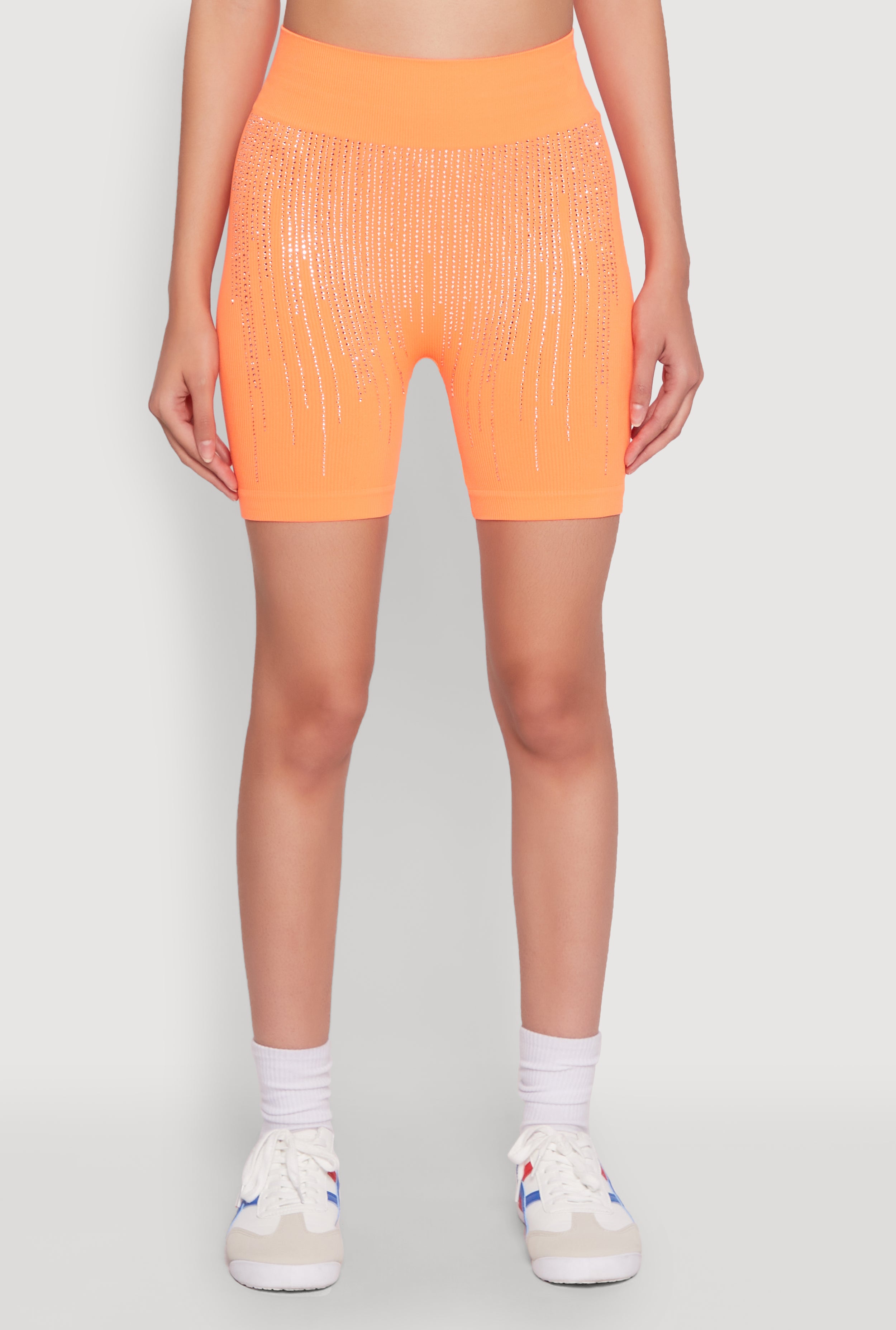 Seamless Rhinestone Ribbed Biker Shorts